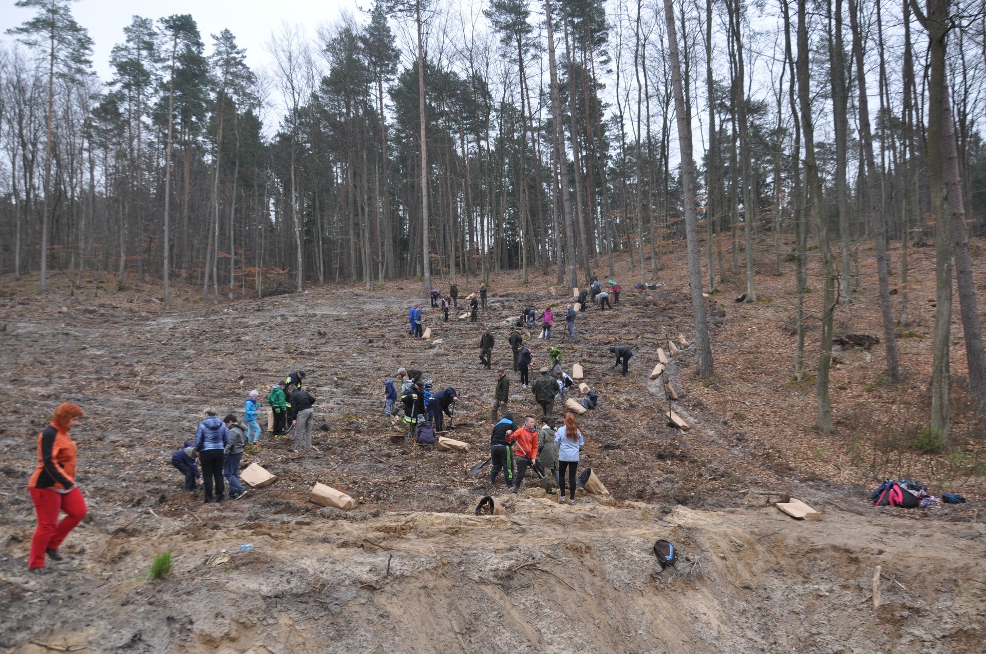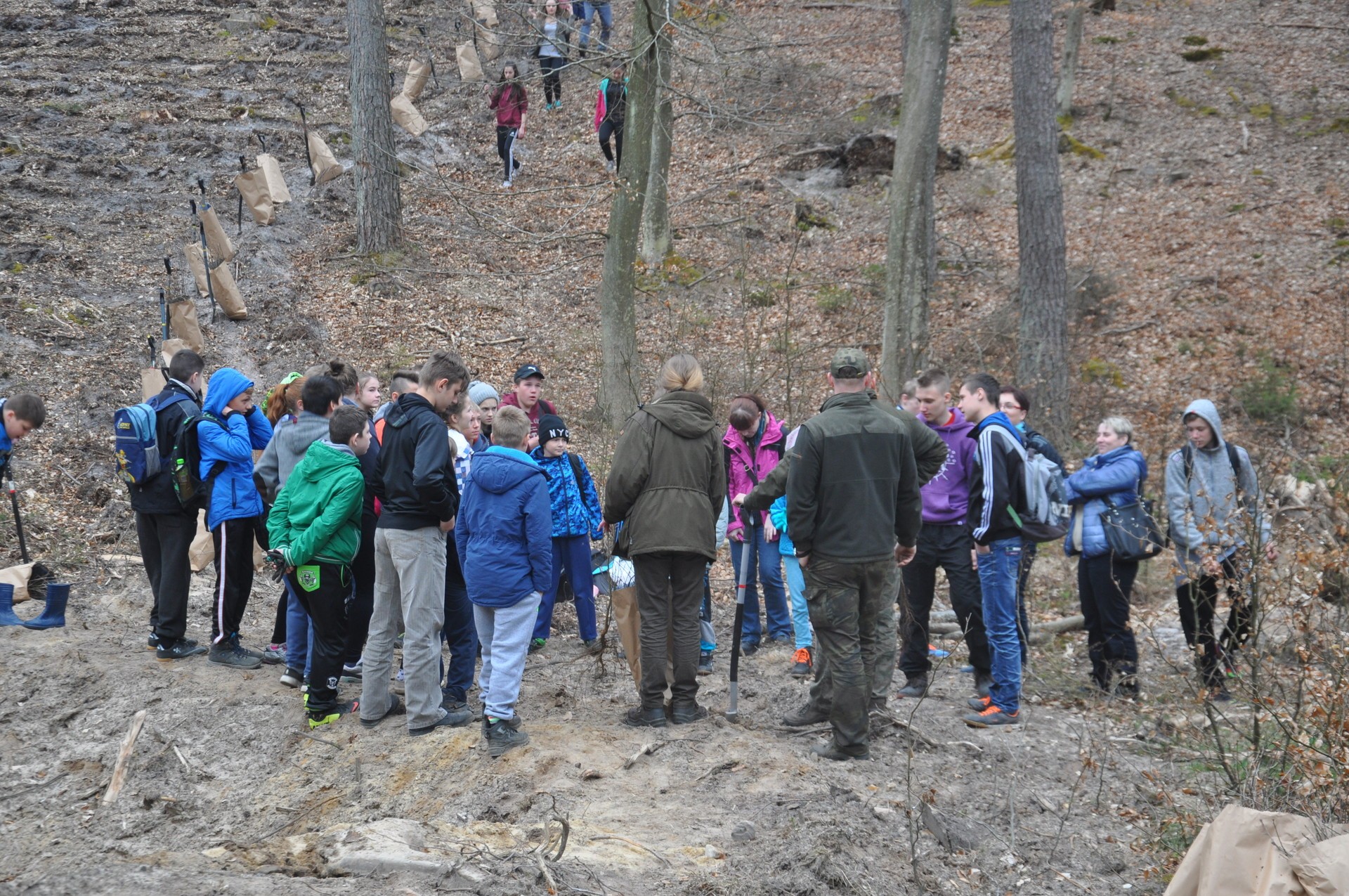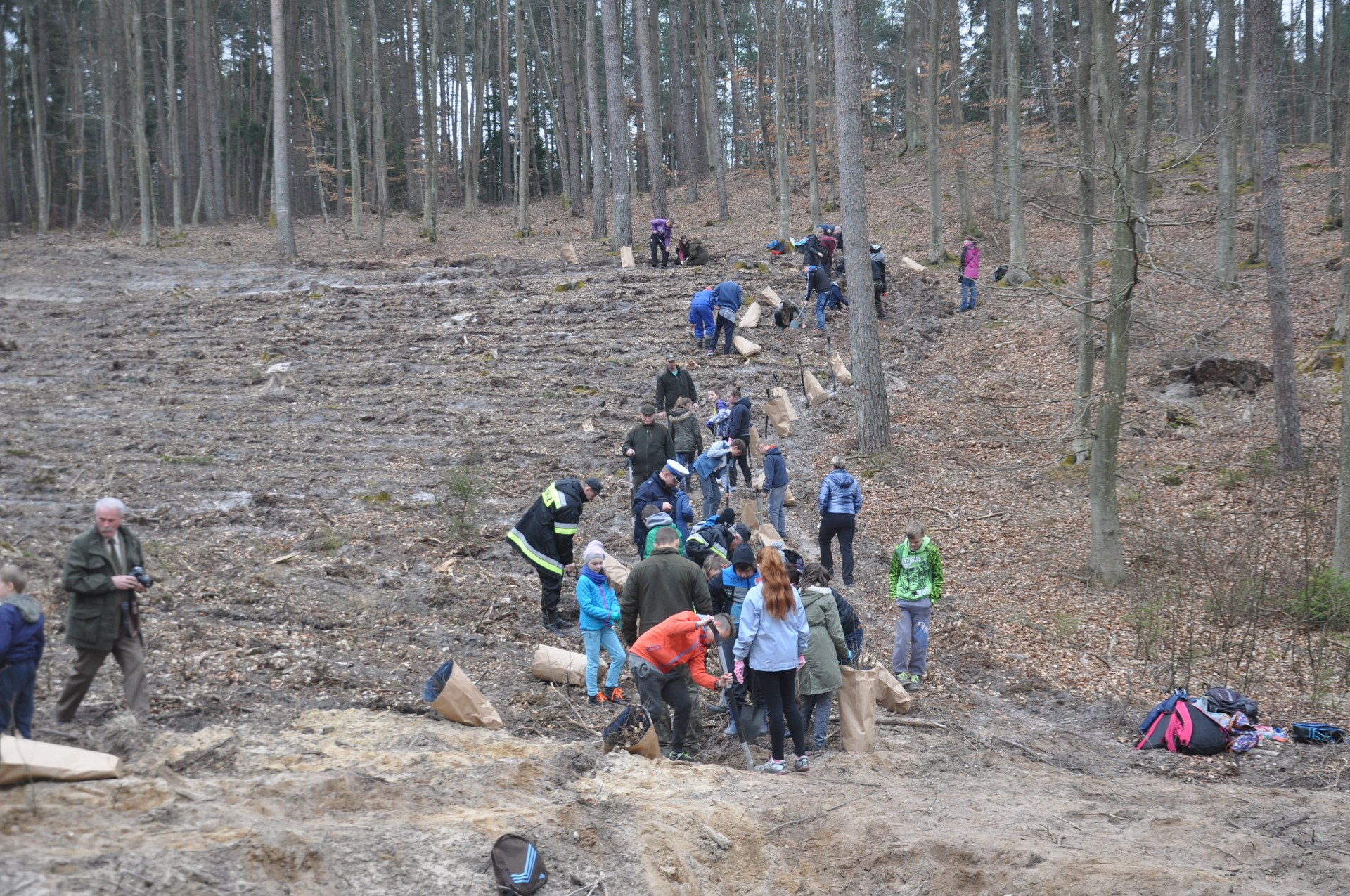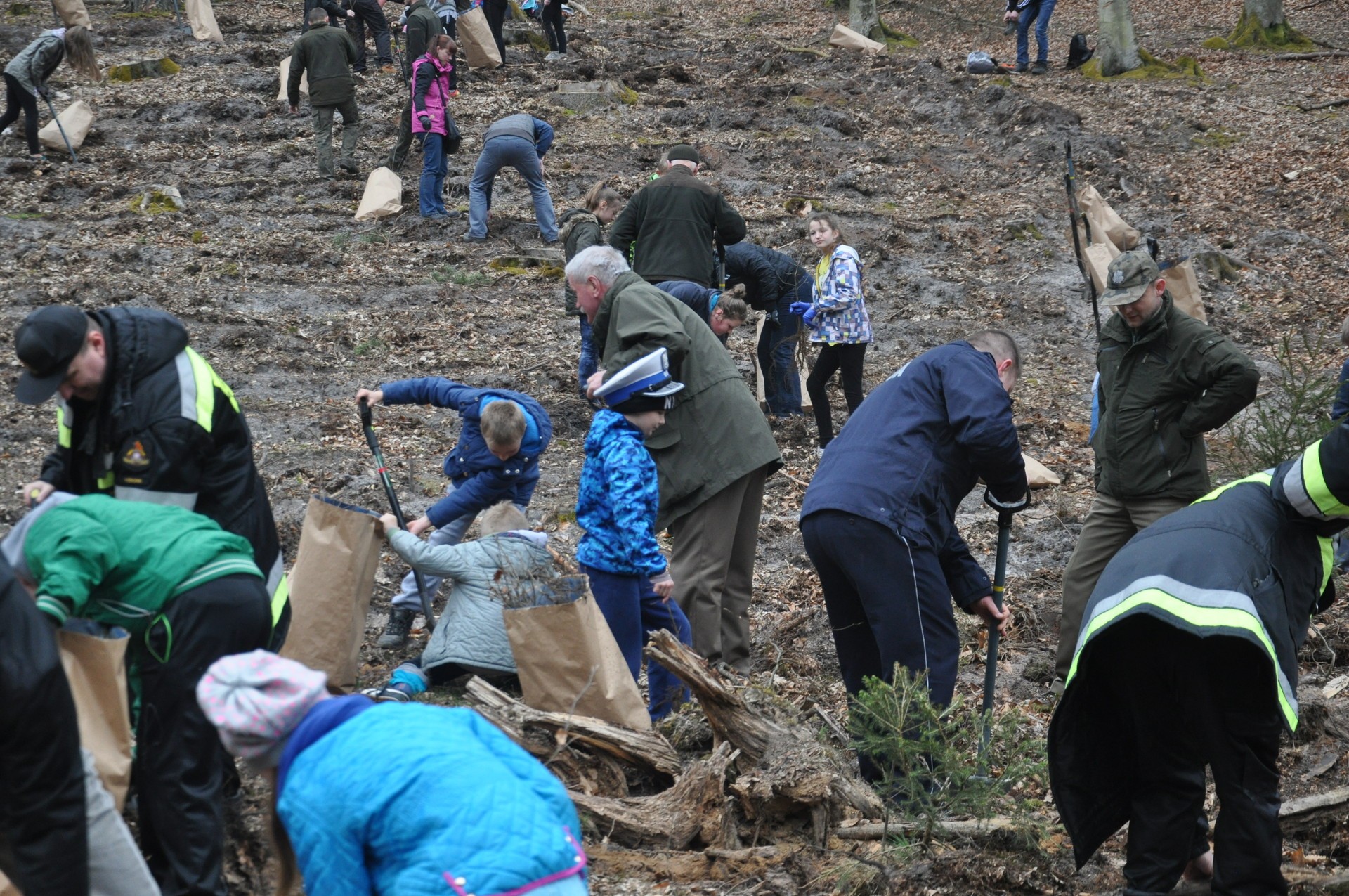 Nad prawidłowym przebiegiem prac czuwali leśnicy Nadleśnictwa Lębork, którzy wyjaśniali jak prawidłowo posadzić małe drzewka, by w przyszłości wyrósł z nich duży las.