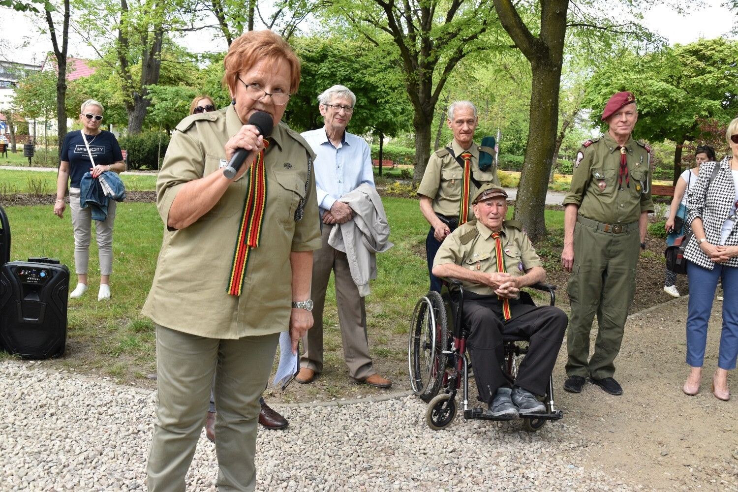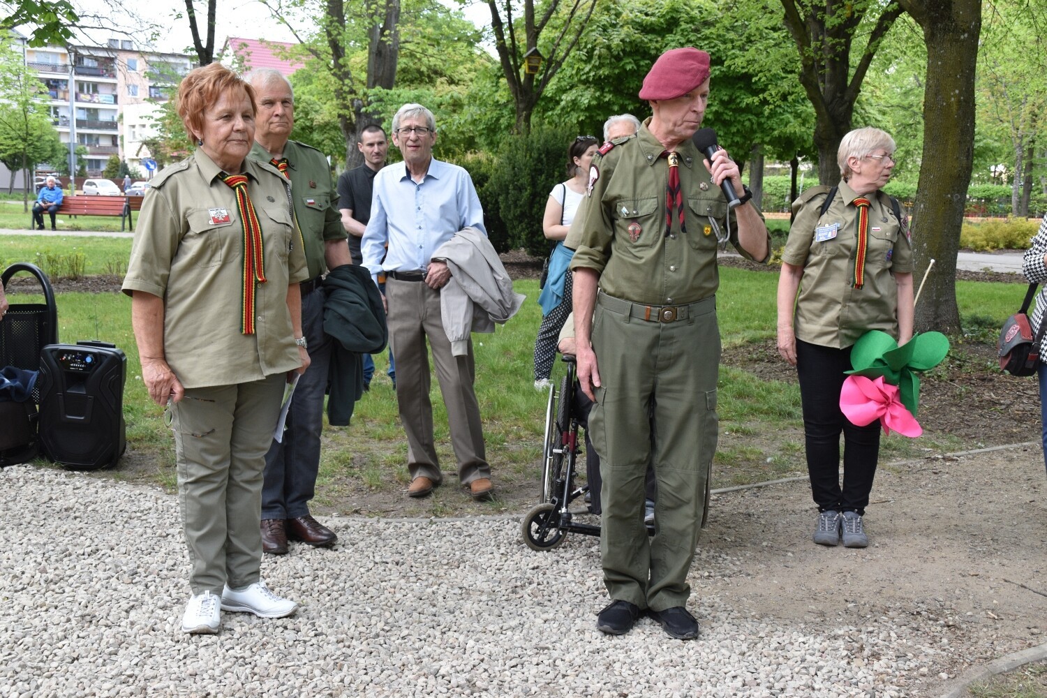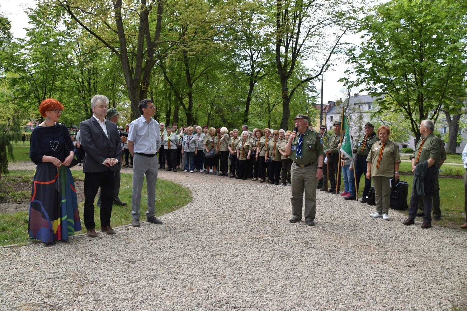 „Harcerzem być to cztery najważniejsze słowa głosić: Bóg, Honor, Miłość, Ojczyzna” – głosi inskrypcja autorstwa Wiesławy Kondrackiej – nauczycielki i harcerki z Lęborka - na rocznicowym kamieniu, przywołując drogowskazy moralne i harcerskie ideały. Tuż obok, na tym samym obelisku znalazła się tablica upamiętniająca rocznicowe spotkanie harcerzy „Dębów” sprzed 15 lat – w 10. rocznicę powstania kręgu z hasłem „Harcerstwo to nie jest coś, co się umie, ale to jest coś, czym się jest”. I to dosłownie definiuje postawę harcerskich seniorów z Lęborka. Zaczęło się bowiem od hm Jana Mrugasiewicza – pierwszego komendanta „Dębów”, który następnie przekazał honor dowodzenia hm Elżbiecie Wiktorowicz-Czapla, która rozwijała dzieło integracji seniorskiego kręgu zapoczątkowane przez dh Jana. Obecnie oboje w dalszym ciągu działają w kręgu, którym aktualnie dowodzi dh Małgorzata Bresler. Wszyscy dotychczasowi komendanci wzięli udział w uroczystości odsłonięcia obelisku. Towarzyszyli im: hm Łukasz Kochowski – komendant Chorągwi Gdańskiej, hm Bogdan Radys - kierownik Wydziału Seniorów Głównej Kwatery ZHP, jednocześnie komendant Kręgu Seniorów „Korzenie” z Gdańska. Wśród gości harcerskiego święta obecni byli: starosta Alicja Zajączkowska, członek Zarządu Powiatu Ryszard Wenta, a także przedstawiciele miasta – burmistrz Witold Namyślak z zastępcą Jerzym Pernalem. Okolicznościowe medale wręczała phm Agnieszka Kłosowska – komendantka Hufca ZHP Lębork.