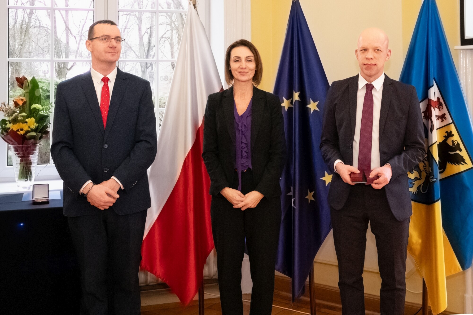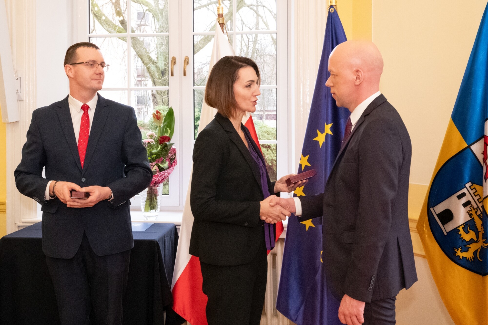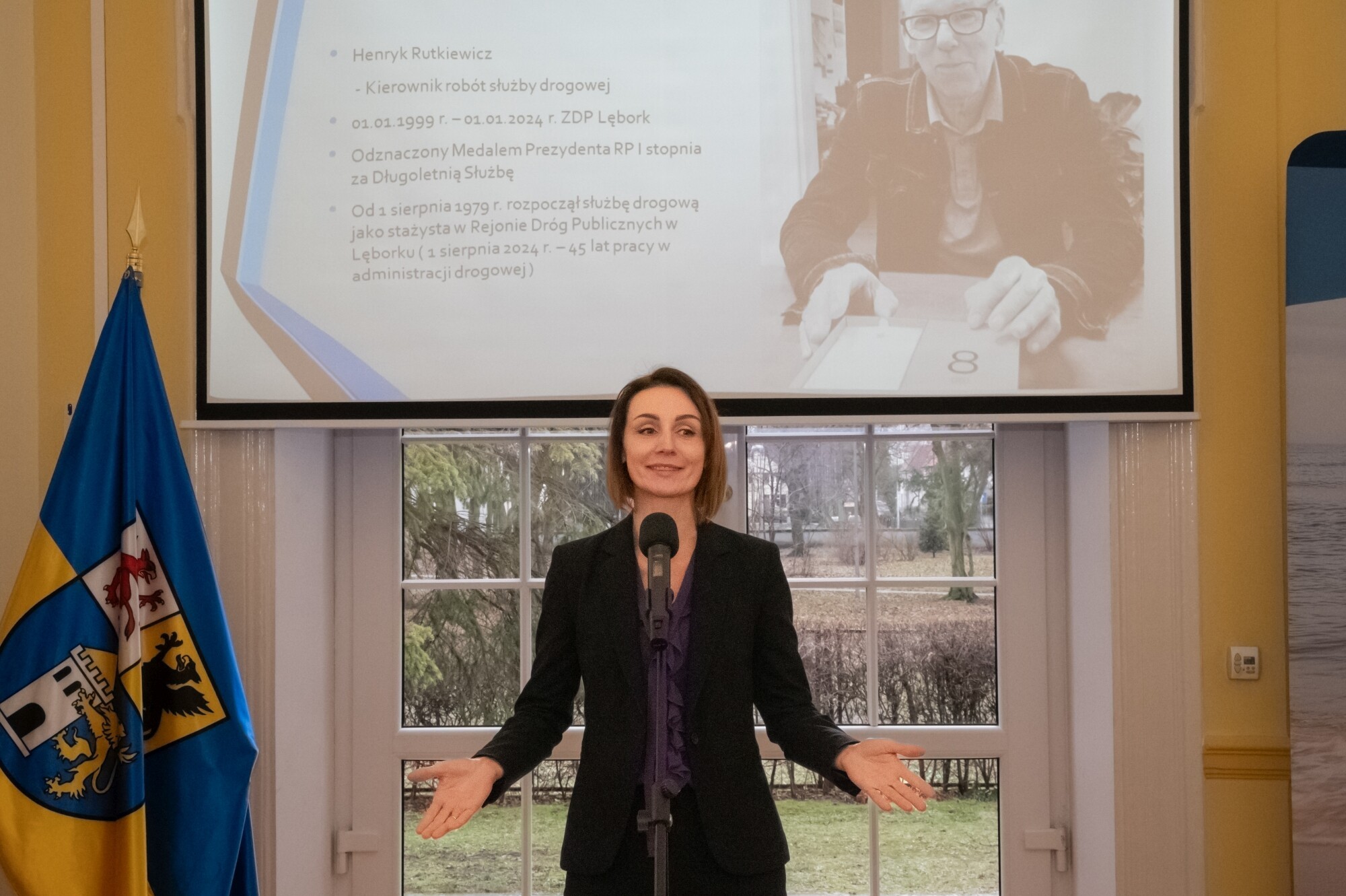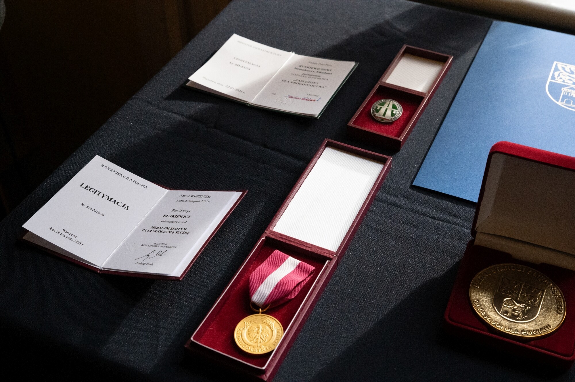 Uroczystości rozpoczęły się od minuty ciszy dla uczczenia pamięci przedwcześnie zmarłego Henryka Rutkiewicza – przez wiele lat kierownika robót służby drogowej, pracującego w drogownictwie nieprzerwanie od 1979 r. To jemu prezydent Andrzej Duda nadał Medal Złoty za Długoletnią Służbę. W imieniu odznaczonego, medal odebrał z rąk wojewody syn zmarłego. Pan Henryk otrzymał również pośmiertnie Odznakę Honorową „Zasłużony dla Drogownictwa”, nadaną przez ministra infrastruktury Dariusza Klimczaka. Po oficjalnej ceremonii wręczenia odznaczeń państwowych i resortowych, wojewoda B. Rutkiewicz przypomniała postać i dokonania odznaczonego, doceniając fakt, że praktycznie całe życie zawodowe poświęcił jednej firmie. – To dzisiaj jest rzecz prawie niespotykana – mówiła wojewoda Beata Rutkiewicz – Bardzo to szanuję. W uzasadnieniach do odznaczeń mowa była o rzetelności i zaangażowaniu odznaczonego, świadczących, jak myślę o tym, że po prostu kochał to, co robił. Takiej miłości do swojego zawodu życzę nam wszystkim, abyśmy robili to z wewnętrznego przekonania, a nie tylko dlatego, że musimy to robić.