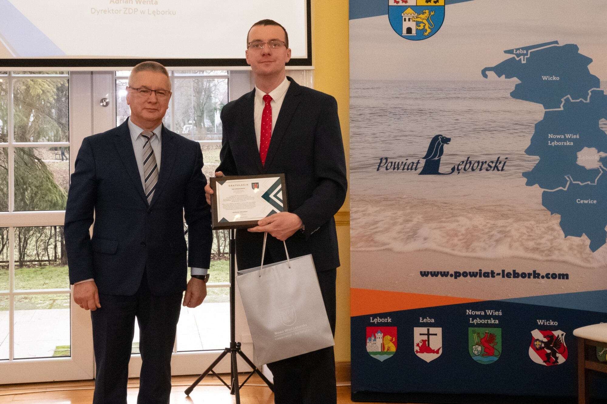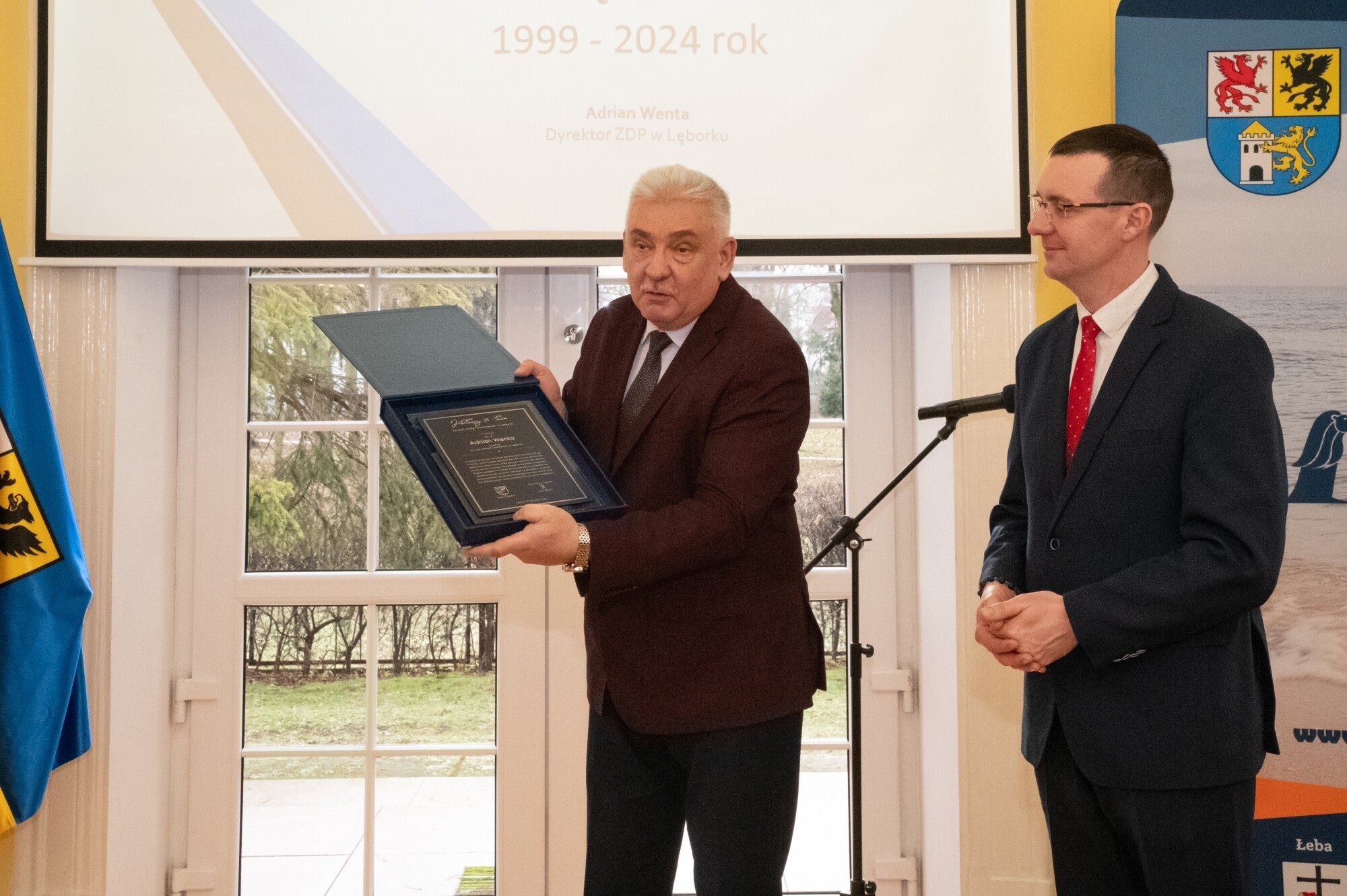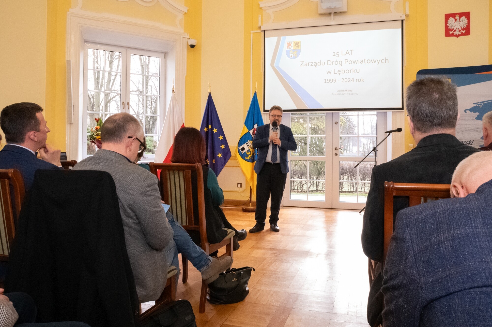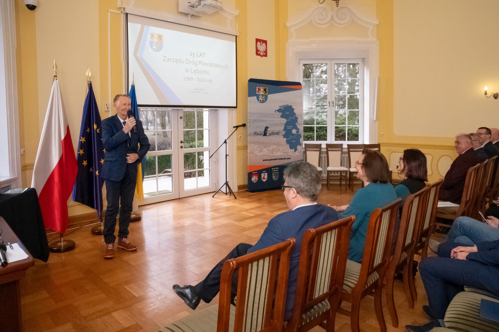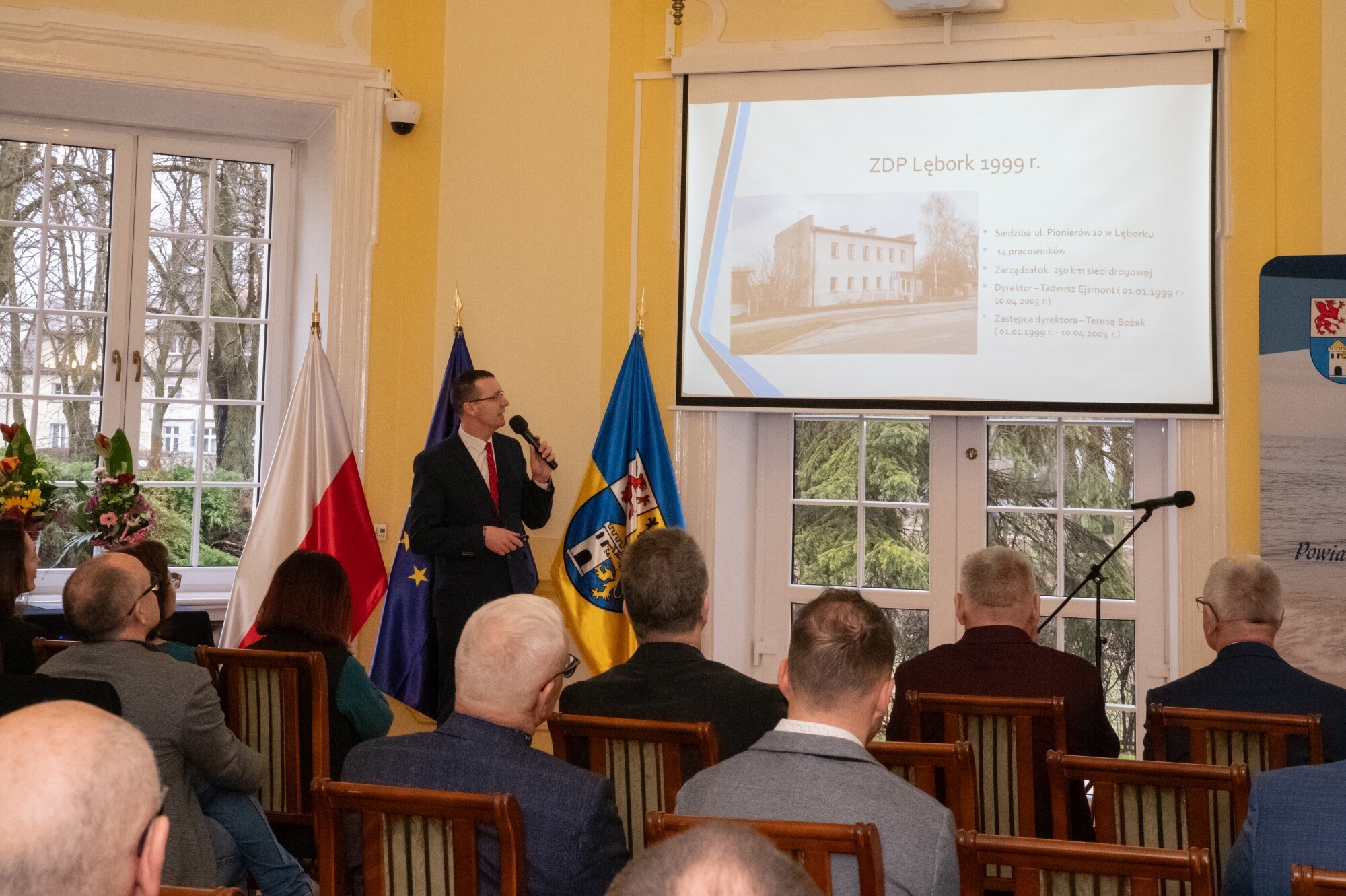 W obecnej formie organizacyjnej Zarząd Dróg Powiatowych rozpoczął działalność na podstawie uchwały Rady Powiatu Lęborskiego z dnia 29 stycznia 1999 r., działając na łącznie na 61 odcinkach drogowych, z czego 28 obejmowało obszary Lęborka i Łeby. O strukturze, ludziach, zakresie działalności, sprzęcie i historii sięgającej w głąb do czasów Rejonu Eksploatacji Dróg Publicznych i lat 50. ub. wieku mówił Adrian Wenta, obecny dyrektor ZDP. Wiele mówiono na tematy inwestycyjne i te związane z remontami sieci drogowej. W najlepszym pod względem dostępności środków okresie od 2019 r. do końca 2023, na inwestycje i remonty łącznie wydano blisko 50 mln zł. 63 procent stanowiły pozyskane środki zewnętrzne. Ogromny udział w sukcesie firmy mają jej pracownicy i skuteczne zarządzanie. Podkreślali to starosta Alicja Zajączkowska i wicestarosta Edmund Głombiewski wyróżniając Medalem Starosty Teresę Bożek – emerytowaną dyrektor ZDP oraz obecnego zastępcę dyrektora tej jednostki – Mariusza Barańskiego. Życzenia drogowcom składali także: Iwona Mielewwczyk – Radna Sejmiku Województwa Pomorskiego oraz lokalni samorządowcy: Jerzy Bańka – wójt Gminy Cewice i Zdzisław Chojnacki – wójt Gminy Nowa Wieś Lęborska, których jednostki samorządowe współuczestniczą aktywnie w realizacji przedsięwzięć drogowych poprzez ich współfinansowanie. Pamiątkowe grawertony i życzenia przekazali także przedstawiciele firm realizujących prace drogowe na terenie powiatu: Przedsiębiorstwa Drogowo-Mostowego „Dromos” i firmy „Pol-Dróg”. Okolicznościowe wystąpienia zaprezentowali przedstawiciele firm drogowych operujących na terenie powiatu. Wojciech Budkiewicz – Kierownik Działu Marketingu „Lehmann + Partner Polska” Sp. z o.o., omówił możliwe formy współpracy z firmami operującymi w branży drogownictwa oraz przedstawił korzyści z aplikacji LP-Portal, opracowanej i administrowanej przez firmę Lehmann, umożliwiającej dostęp on-line do bazy danych ewidencji dróg i obiektów mostowych. Wojciech Kołacki – reprezentujący „Budimex” S.A. – podmiot realizujący budowę drogi ekspresowej S6 na odcinku Słupsk – Bożepole Wielkie. Data zakończenia kontraktu określona została na 7 października 2025 r. i wtedy dwujezdniowa droga ekspresowa zyska swoją pełną funkcjonalność. Oprócz budowy samej ekspresówki, inwestycja obejmuje budowę prawie 19 km dróg lokalnych i zjazdów, węzłów drogowych, 32 obiektów inżynierskich, przebudowę istniejących oraz rozwiązania usprawniające migrację zwierząt w obrębie drogi ekspresowej. W najbliższych planach realizacyjnych jest realizacja wiaduktu nad drogą wojewódzką 214, co będzie się wiązało z przeniesieniem części na czas prowadzenia prac ruchu na drogi powiatowe.