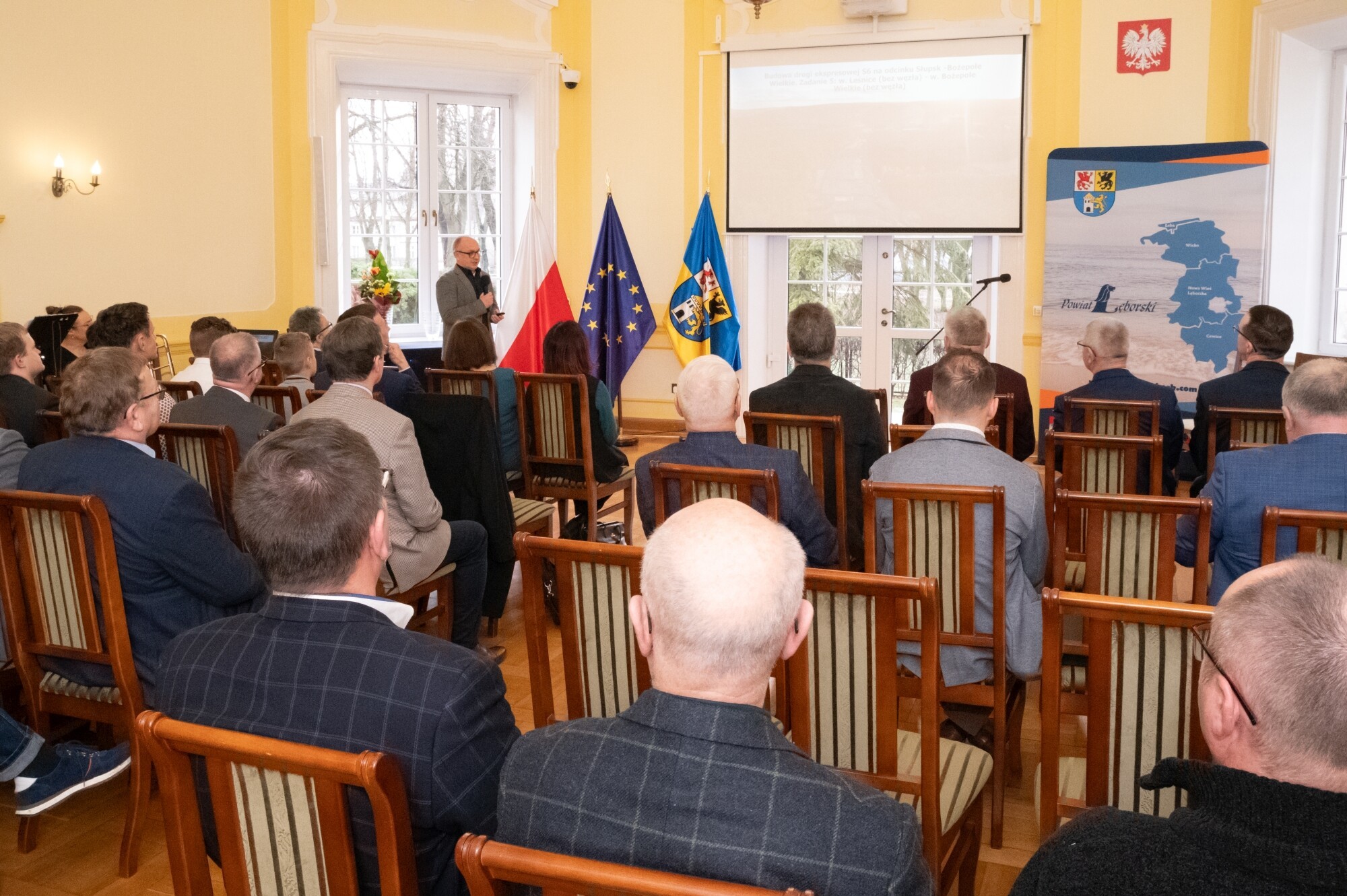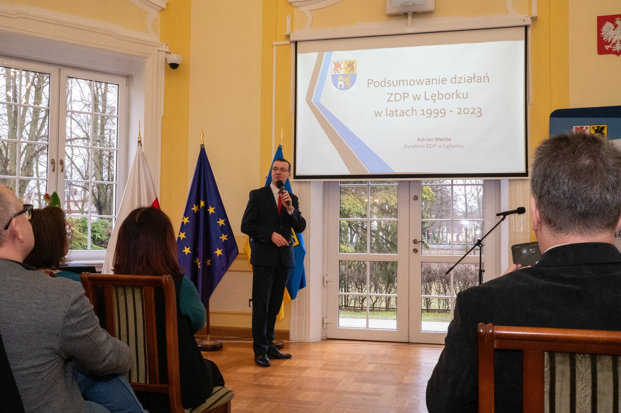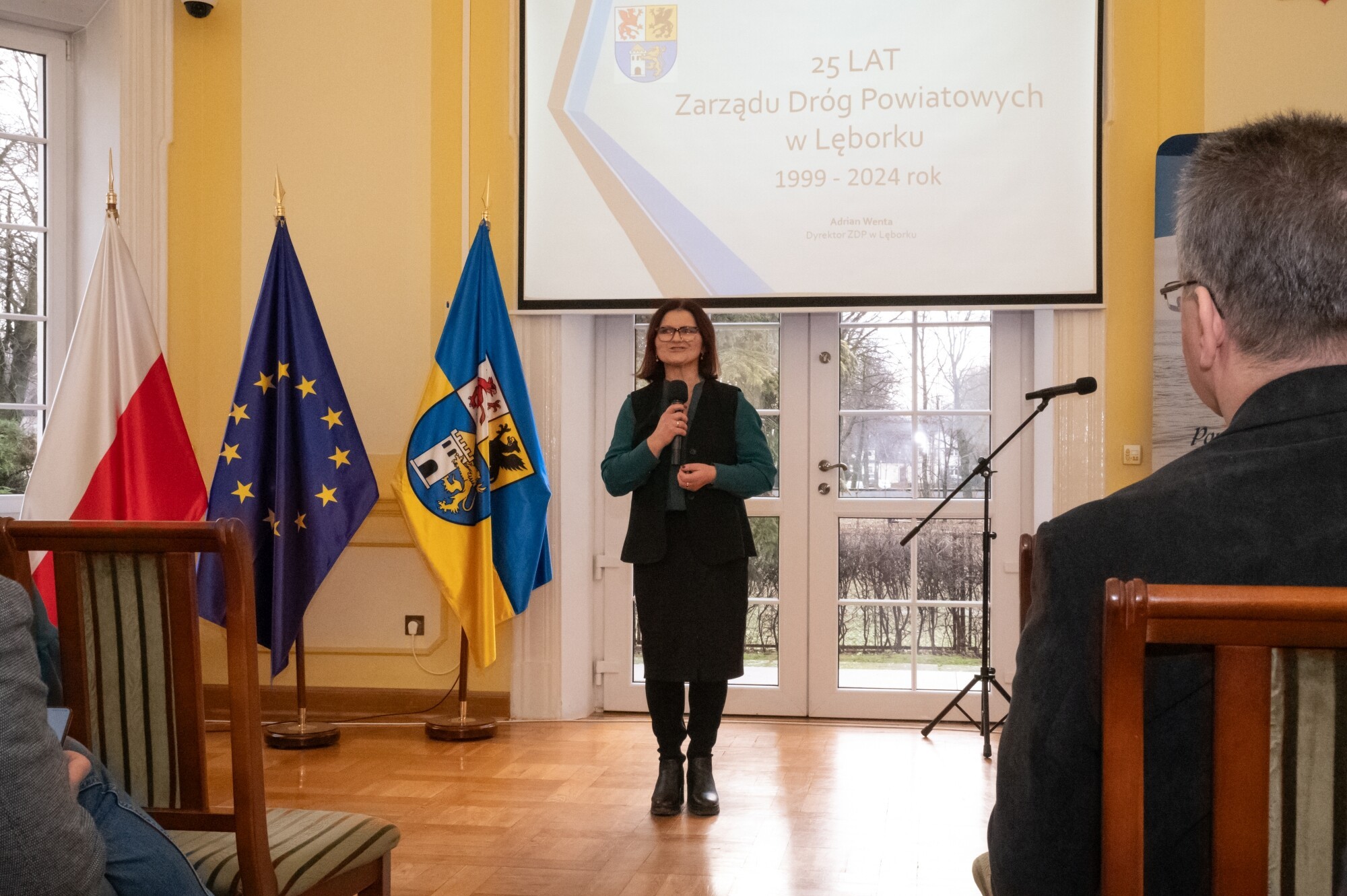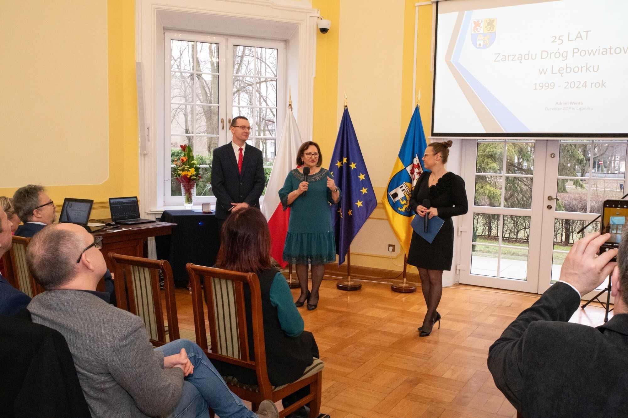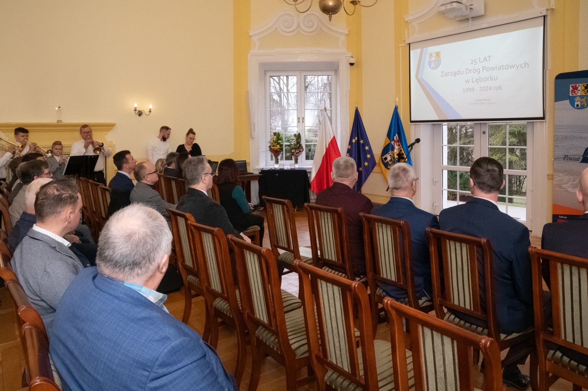 W obecnej formie organizacyjnej Zarząd Dróg Powiatowych rozpoczął działalność na podstawie uchwały Rady Powiatu Lęborskiego z dnia 29 stycznia 1999 r., działając na łącznie na 61 odcinkach drogowych, z czego 28 obejmowało obszary Lęborka i Łeby. O strukturze, ludziach, zakresie działalności, sprzęcie i historii sięgającej w głąb do czasów Rejonu Eksploatacji Dróg Publicznych i lat 50. ub. wieku mówił Adrian Wenta, obecny dyrektor ZDP. Wiele mówiono na tematy inwestycyjne i te związane z remontami sieci drogowej. W najlepszym pod względem dostępności środków okresie od 2019 r. do końca 2023, na inwestycje i remonty łącznie wydano blisko 50 mln zł. 63 procent stanowiły pozyskane środki zewnętrzne. Ogromny udział w sukcesie firmy mają jej pracownicy i skuteczne zarządzanie. Podkreślali to starosta Alicja Zajączkowska i wicestarosta Edmund Głombiewski wyróżniając Medalem Starosty Teresę Bożek – emerytowaną dyrektor ZDP oraz obecnego zastępcę dyrektora tej jednostki – Mariusza Barańskiego. Życzenia drogowcom składali także: Iwona Mielewwczyk – Radna Sejmiku Województwa Pomorskiego oraz lokalni samorządowcy: Jerzy Bańka – wójt Gminy Cewice i Zdzisław Chojnacki – wójt Gminy Nowa Wieś Lęborska, których jednostki samorządowe współuczestniczą aktywnie w realizacji przedsięwzięć drogowych poprzez ich współfinansowanie. Pamiątkowe grawertony i życzenia przekazali także przedstawiciele firm realizujących prace drogowe na terenie powiatu: Przedsiębiorstwa Drogowo-Mostowego „Dromos” i firmy „Pol-Dróg”. Okolicznościowe wystąpienia zaprezentowali przedstawiciele firm drogowych operujących na terenie powiatu. Wojciech Budkiewicz – Kierownik Działu Marketingu „Lehmann + Partner Polska” Sp. z o.o., omówił możliwe formy współpracy z firmami operującymi w branży drogownictwa oraz przedstawił korzyści z aplikacji LP-Portal, opracowanej i administrowanej przez firmę Lehmann, umożliwiającej dostęp on-line do bazy danych ewidencji dróg i obiektów mostowych. Wojciech Kołacki – reprezentujący „Budimex” S.A. – podmiot realizujący budowę drogi ekspresowej S6 na odcinku Słupsk – Bożepole Wielkie. Data zakończenia kontraktu określona została na 7 października 2025 r. i wtedy dwujezdniowa droga ekspresowa zyska swoją pełną funkcjonalność. Oprócz budowy samej ekspresówki, inwestycja obejmuje budowę prawie 19 km dróg lokalnych i zjazdów, węzłów drogowych, 32 obiektów inżynierskich, przebudowę istniejących oraz rozwiązania usprawniające migrację zwierząt w obrębie drogi ekspresowej. W najbliższych planach realizacyjnych jest realizacja wiaduktu nad drogą wojewódzką 214, co będzie się wiązało z przeniesieniem części na czas prowadzenia prac ruchu na drogi powiatowe.