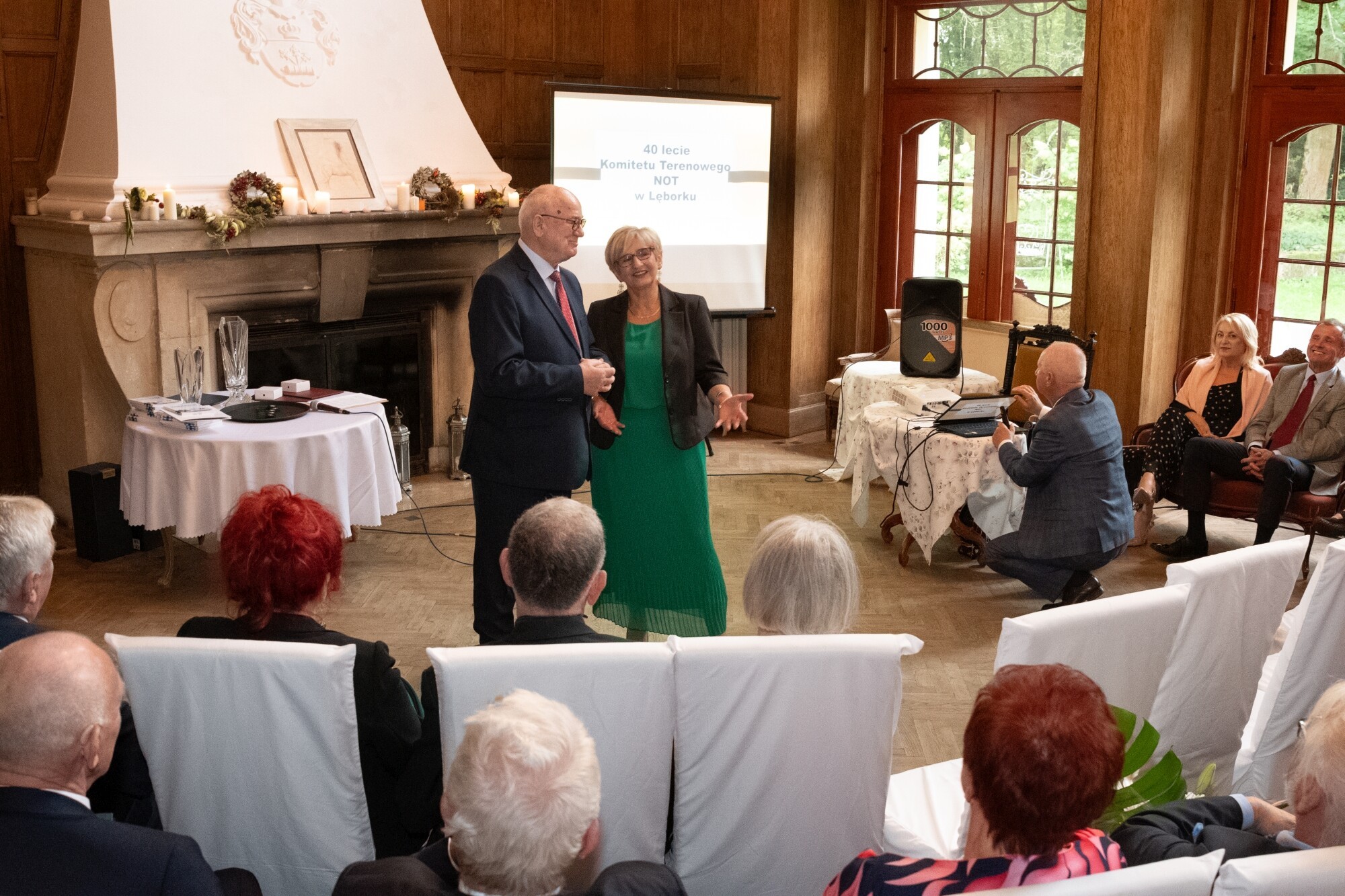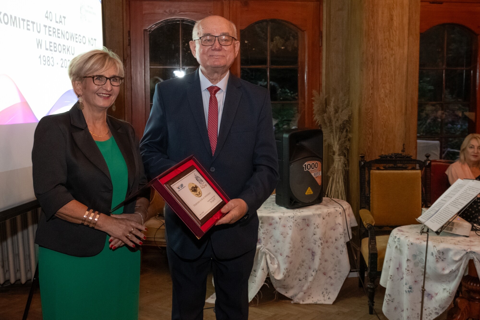 Były podziękowania za współpracę i wspieranie działalności NOT przez powiat, miasto, Lęborski Klub Przedsiębiorczości i wszystkich, którzy do inicjatyw NOT-owskich dołożyli przysłowiową swoją własną cegiełkę. Odznakami Partnera KT NOT wyróżniono: starostę Alicję Zajączkowska, Krystynę Popiel, burmistrza Witolda Namyślaka, Wiesława Wójcika i Waldemara Zielińskiego. Odznaczenia wręczył senior braci NOT-owskiej – Jan Przychoda, który prezesował KT NOT w latach 1990-1994, jako jedna z trzech osób, które na funkcji prezesa przeprowadziły organizację przez minione 40-lecie. Od początku, w 1983 roku do 1990 NOT-owi lęborskiemu prezesował Janusz Miklaszewski, który również dzisiaj pełni tę funkcję, ponownie, od 2007 roku. Jadwiga Wesołowska pełniła funkcję prezesa w latach 1984-2007. Wśród rocznicowych wspomnień pojawiły się kwestie związane z pozyskaniem i remontem siedziby lęborskiego NOT w zabytkowej baszcie stanowiącej niegdyś element fortyfikacji obronnych średniowiecznego Lęborka. Wspominano tematyczne wieczory europejskie, organizowane w „baszcie”, poświęcone zgłębianiu kultury i tradycji różnych narodów z udziałem osób tam mieszkających, ale również sztandarowe społeczne i cykliczne wydarzenie, wynikające ze statutowej działalności, polegającej na upowszechnianiu społecznym myśli technicznej – Lęborskie Dni Techniki, które w przestrzeni publicznej miasta i powiatu funkcjonują od 1984 r. To wtedy technicy i inżynierowie dosłownie opanowali miasto, wystawiając dokonania bardzo licznych wówczas lokalnych zakładów pracy na Placu Pokoju i we wszystkich witrynach wystawowych w mieście. W ramach dni techniki zaangażowane były wszystkie grupy wiekowe, a dla młodzieży, w związku z dużym zainteresowaniem, stworzono specjalnie jej dedykowaną imprezę towarzyszącą wydarzeniu. W miarę rozwoju wolnej przedsiębiorczości, NOT postanowił doceniać również wybitnych menadżerów, przyznając corocznie prestiżowe tytuły Menadżera Roku. Kolejnym przyznawanym wyróżnieniem, był Mister Budownictwa. W tym przypadku chodziło o zwrócenie uwagi na ponadprzeciętną architekturę obiektów budowlanych w mieście i powiecie. Od 2008 r. Lęborskie Dni Techniki odbywają się równolegle z powiatowym wydarzeniem – Certyfikatem Promocji Ziemi Lęborskiej. Jak mówiła J. Wesołowska, to był doskonały pomysł i trwająca do dzisiaj symbioza NOTu i Powiatu Lęborskiego. Artystyczne eventy towarzyszące dniom techniki od początku bardzo aktywnie wspierał Młodzieżowy Dom Kultury w Lęborku.