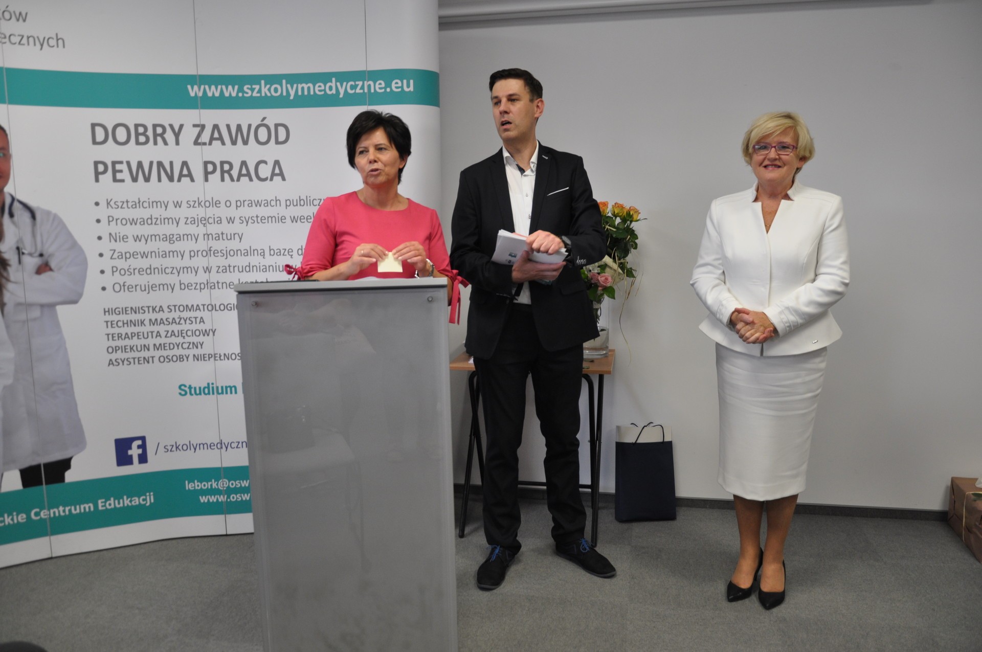 Z kadrą nauczycielską, uczniami, absolwentami i wszystkimi sympatykami szkoły, podczas rocznicowych obchodów spotkała się Teresa Ossowska - Szara, Starosta Lęborski. – Moja obecność tutaj wynika nie tylko z tego, że szkoła obchodzi swoje 5-lecie, to również wynik tego, że starostwo troszczy się o wszystkie szkoły szczebla ponadpodstawowego w Powiecie Lęborskim, zarówno publiczne, jak i niepubliczne – mówiła Teresa Ossowska – Szara, Starosta Lęborski, wręczając przedstawicielom szkoły okolicznościowe prezenty w postaci maszyny do szycia i głośników multimedialnych, czyli tego, co szkole realnie przyda się podczas jej codziennego funkcjonowania. Aktualnie szkoła kształci w 7 kierunkach: terapeuta zajęciowy, technik usług kosmetycznych, technik administracji, technik masażysta, opiekunka dziecięca, opiekun medyczny i opiekunka środowiskowa.