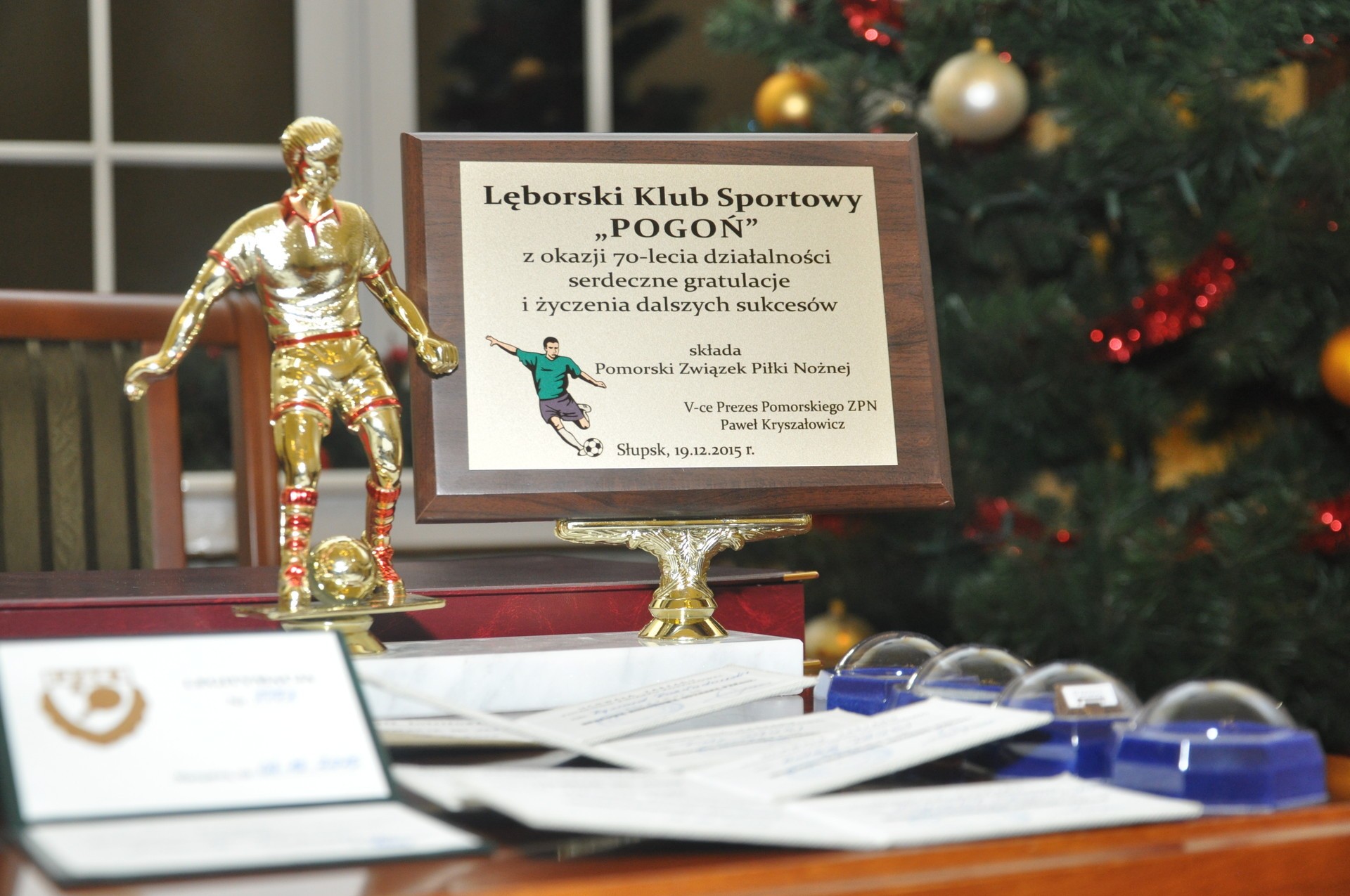 Uroczysty charakter miało sobotnie (19.12.2015) spotkanie z okazji Jubileuszu 70-lecia Lęborskiego Klubu Sportowego Pogoń Lębork. Okazją do spotkania wszystkich sekcji Klubu były odznaczenia i medale wręczone działaczom, trenerom, sponsorom przez przedstawicieli wojewódzkich związków sportowych.