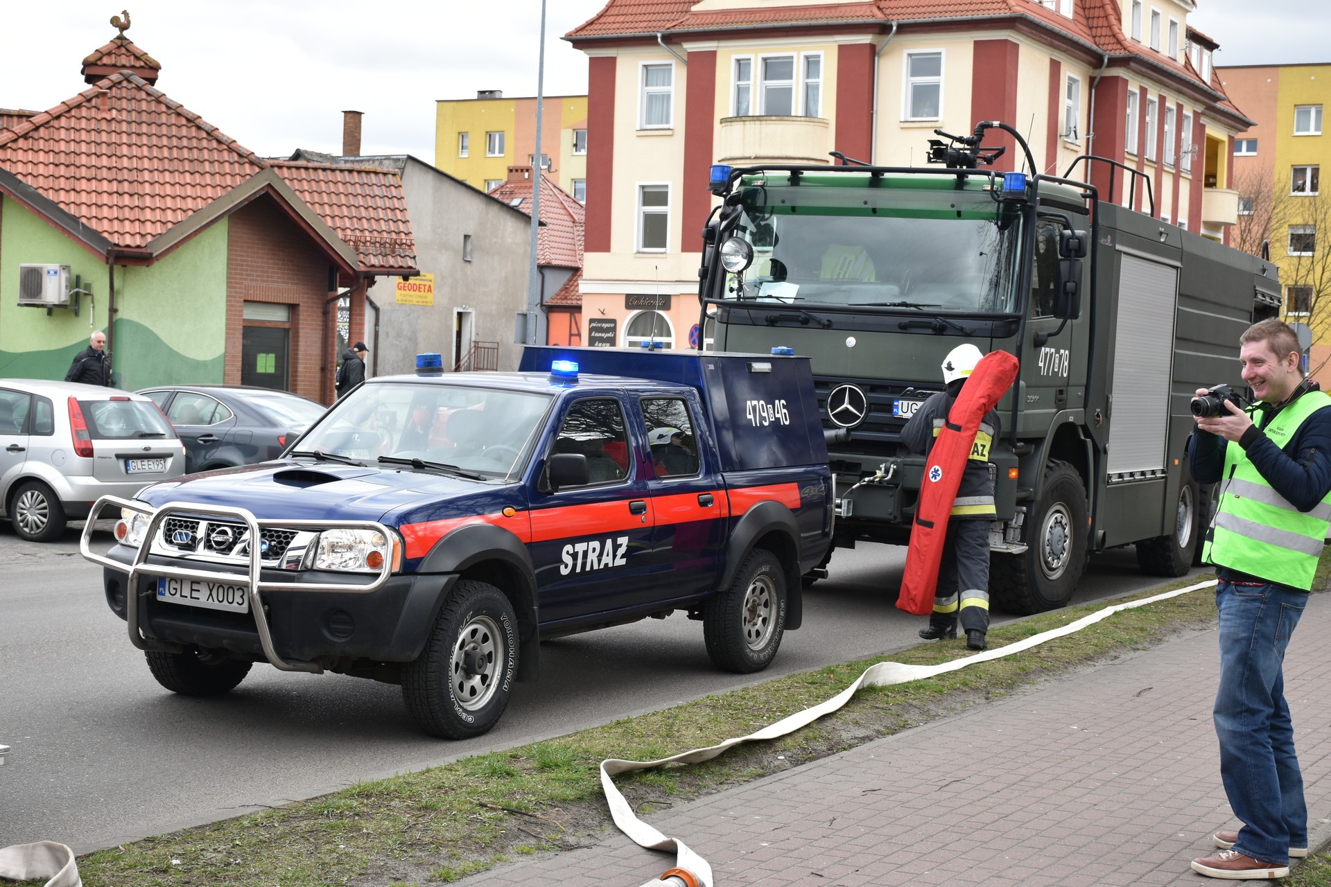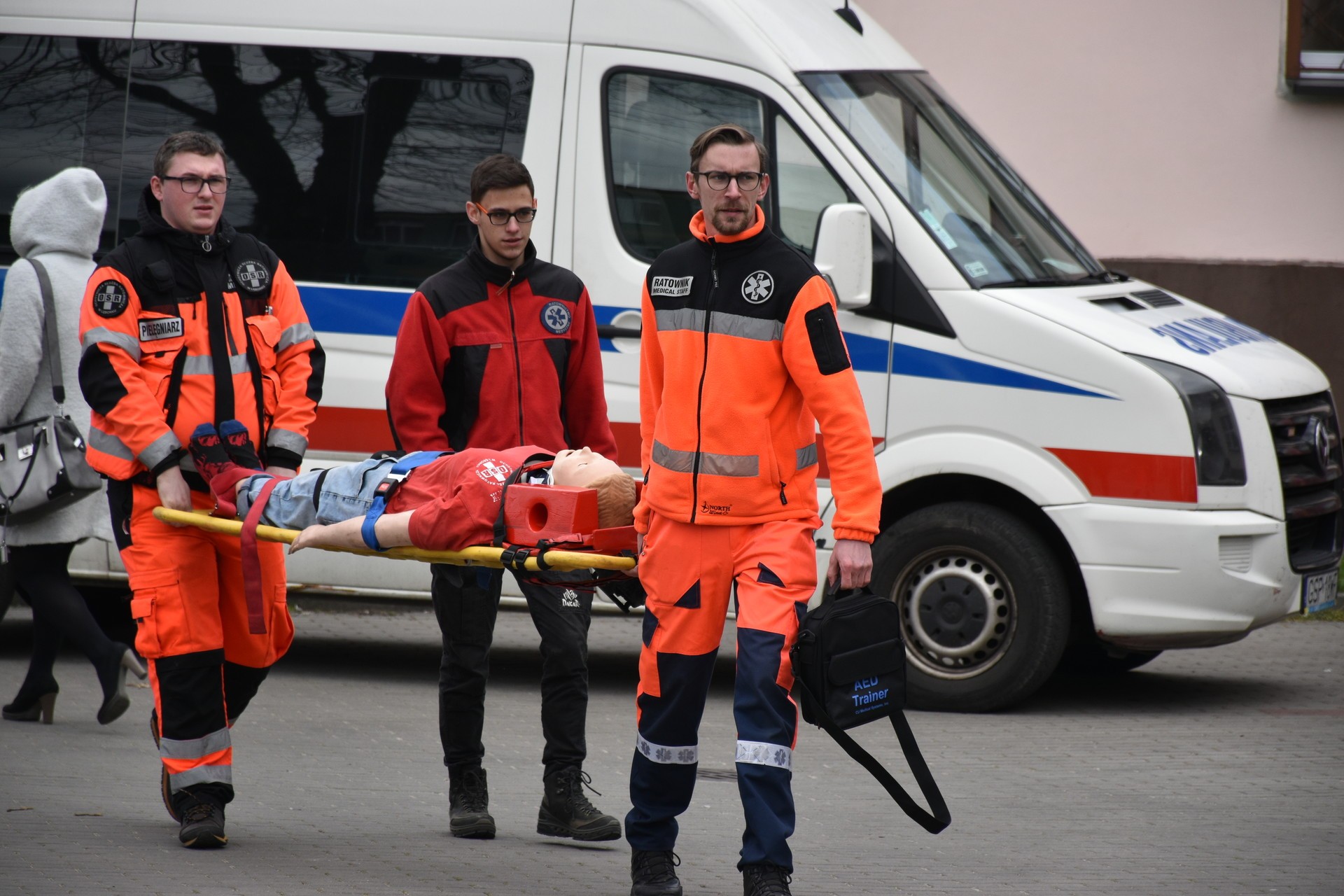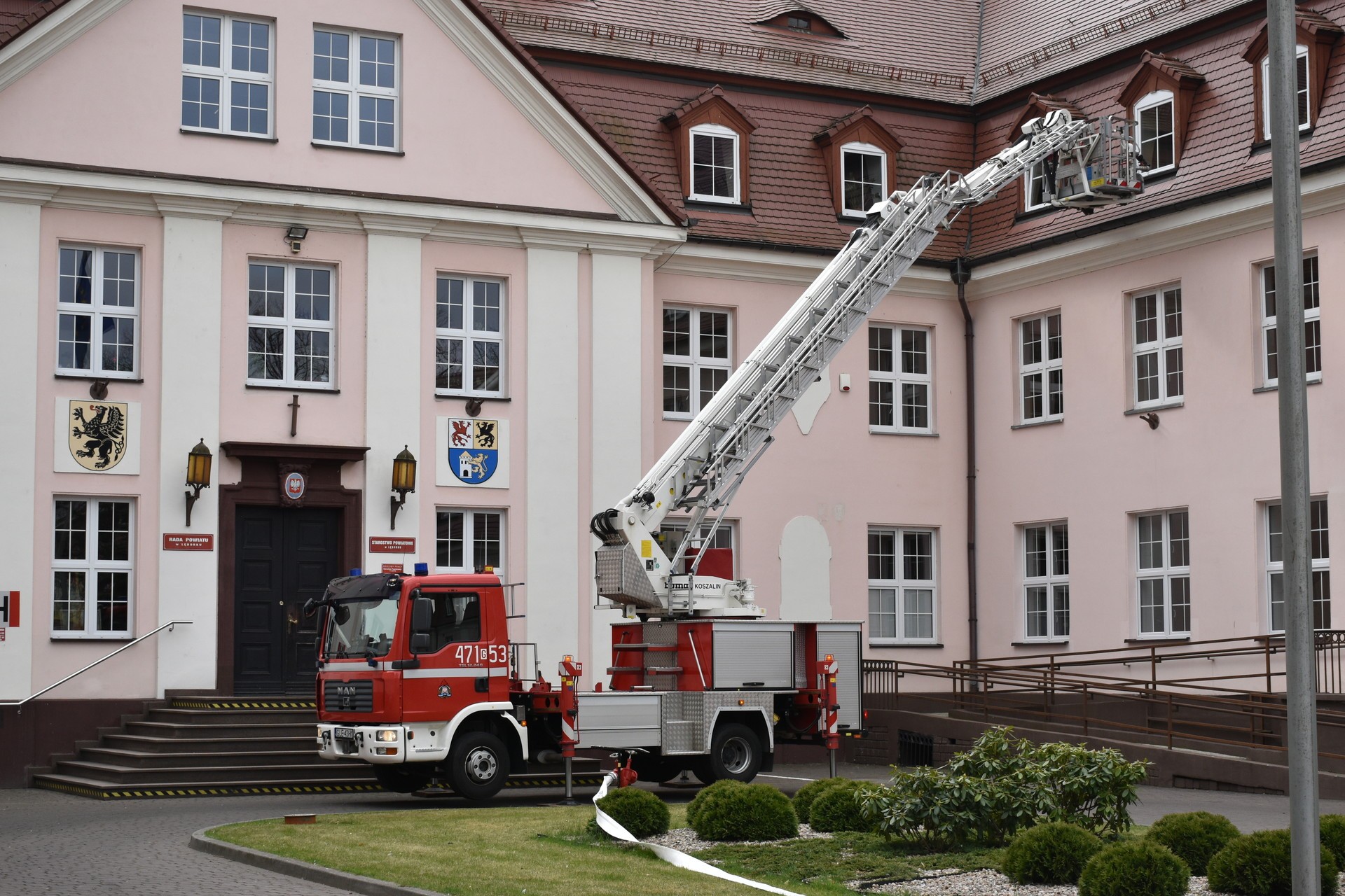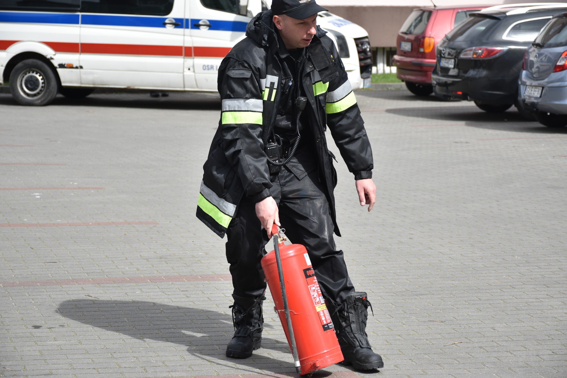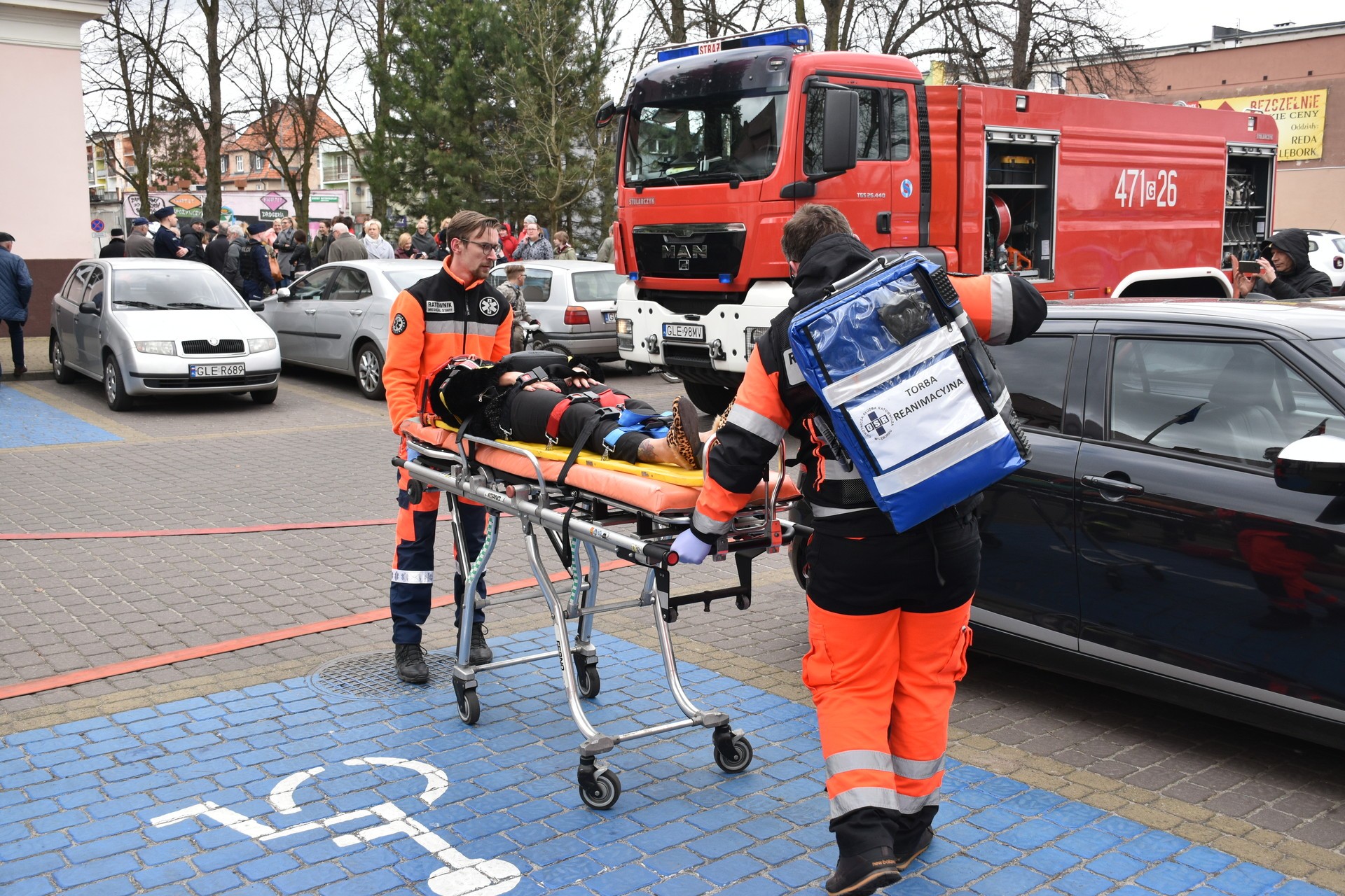 Akcja ewakuacji I stopnia ludności z rejonu zagrożenia życia i zdrowia rozpoczęła się od symulowanego pożaru na II kondygnacji budynku Starostwa. Ćwiczenia miały za zadanie zweryfikowanie znajomości Instrukcji Bezpieczeństwa Pożarowego przez pracowników Starostwa. Opracowana dla urzędu Instrukcja Bezpieczeństwa ma za zadanie w sytuacji zagrożenia, zastosowanie procedur służących ochronie zdrowia i życia klientów urzędu oraz pracowników. To również test koordynacji działań służb ratowniczych, od momentu skutecznego powiadomienia o zagrożeniu, do zakończenia czynności ratowniczych. Utrudniony dostęp do miejsca wystąpienia symulowanego zagrożenia wymusił zastosowanie specjalistycznego sprzętu ratowniczo-gaśniczego, w tym strażackiej drabiny, będącej na wyposażeniu Jednostki Ratowniczo – Gaśniczej Państwowej Straży Pożarnej w Lęborku. W ćwiczeniu uczestniczyli również strażacy z Ochotniczej Straży Pożarnej, zespół wyjazdowy Ochotniczej Służby Ratowniczej, Jednostka Ratowniczo Gaśnicza z Jednostki Wojskowej 4653 w Siemirowicach, policjanci z Komendy Powiatowej Policji w Lęborku i pracownicy firmy ochroniarskiej „Jantar”. W trakcie ćwiczenia odbył się również instruktaż z zastosowania środków gaśniczych i pokaz użycia przenośnego defibrylatora podczas udzielania pierwszej pomocy.