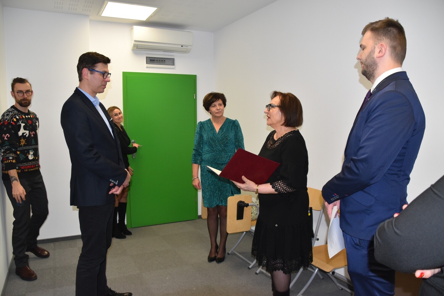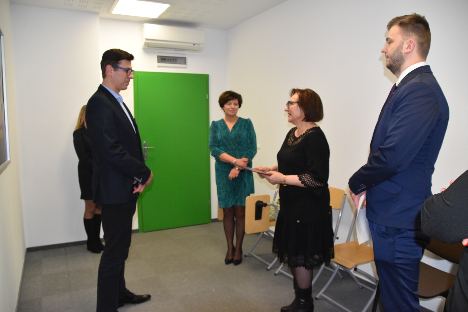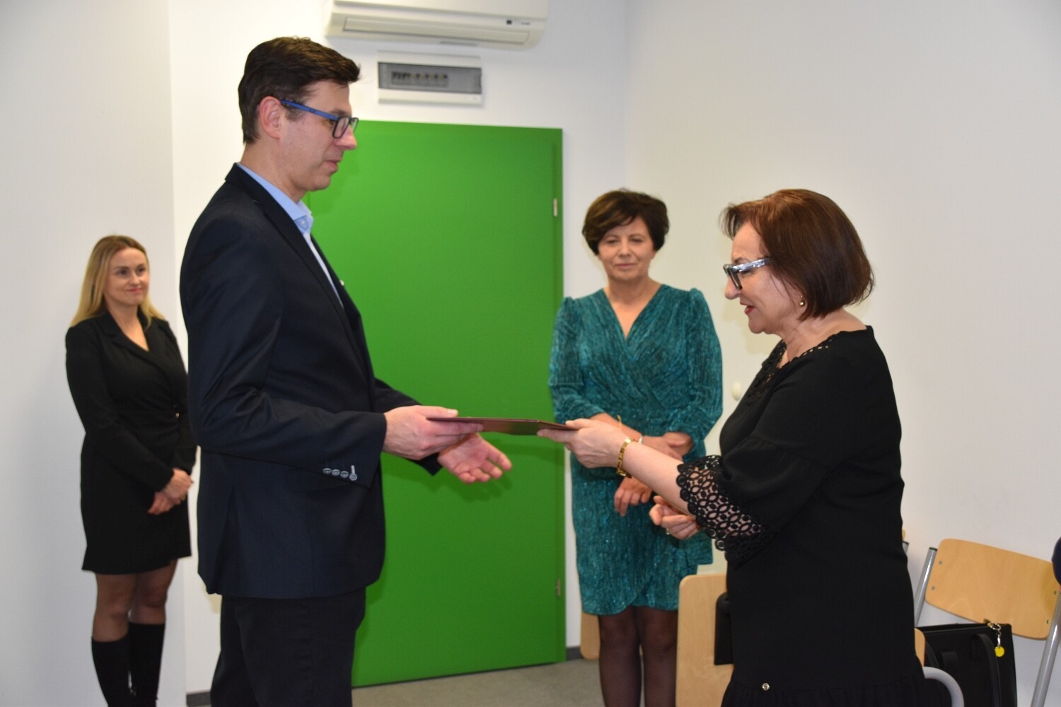 Uroczystość nadania awansu zawodowego odbyła się w siedzibie szkoły w miniony piątek (15.12). Awansowany Daniel Mihuniewicz złożył ślubowanie w obecności Starosty Lęborskiego Alicji Zajączkowskiej i dyrektor szkoły – Bożeny Miotk.