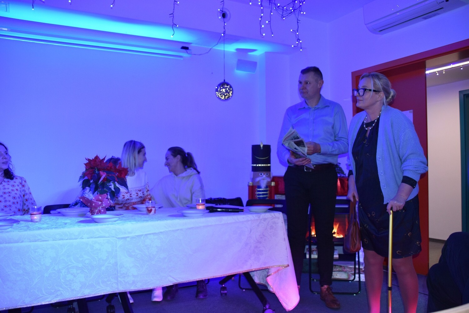 Podczas świątecznego spotkania w szkole, słuchacze kierunku terapia zajęciowa przygotowali i zaprezentowali przedświąteczne jasełka. - Chleba na stole, przyjaciół wokół, pokoju w sercu i na świecie – mówiła starosta Alicja Zajączkowska, składając życzenia uczestnikom spotkania – Życzę również realizacji marzeń i planów, zarówno tych osobistych, jak i związanych z rozwojem szkoły.