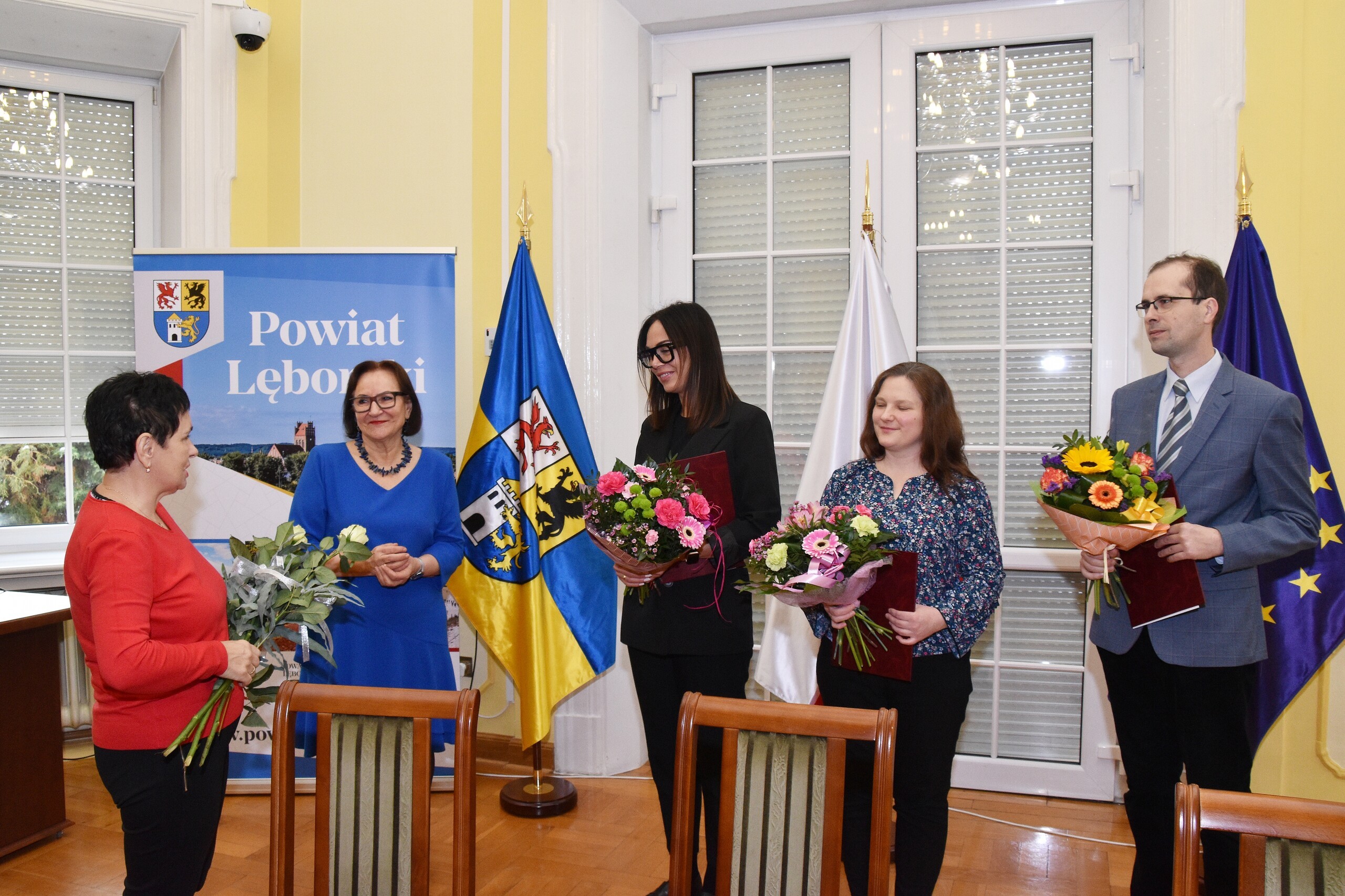 Starosta Lęborski Alicja Zajączkowska wręczyła w czwartek (15.12) awanse na stopień nauczyciela mianowanego trójce pedagogów ze szkół ponadpodstawowych.