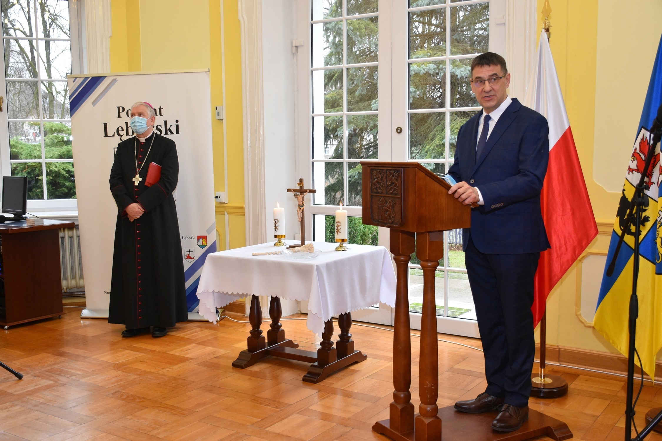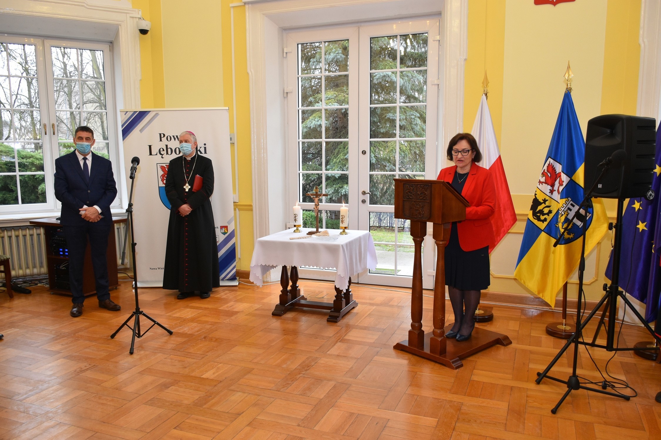 Okrojony skład uczestników spotkania w porównaniu do kolędowania sprzed choćby dwóch lat, wymusiły ograniczenia pandemiczne i dynamiczna sytuacja zachorowań z ostatnich dni. Nie zabrakło również odniesień do skutków życia w warunkach pandemii w roku ubiegłym zarówno w wystąpieniu starosty Alicji Zajączkowskiej, jak i bp. R Kasyny. – W minionym roku sytuacja epidemiczna wymusiła konieczność dostosowania się do warunków zapewniających bezpieczeństwo zarówno klientom urzędu, jak i pracownikom starostwa – mówiła starosta A. Zajączkowska – Dokładaliśmy wszelkich starań, by uciążliwości dla klientów urzędu wynikające z tego faktu jak najbardziej zminimalizować. Ogromną zasługę w tej kwestii miała profesjonalna kadra urzędnicza starostwa, za co bardzo dziękuję.