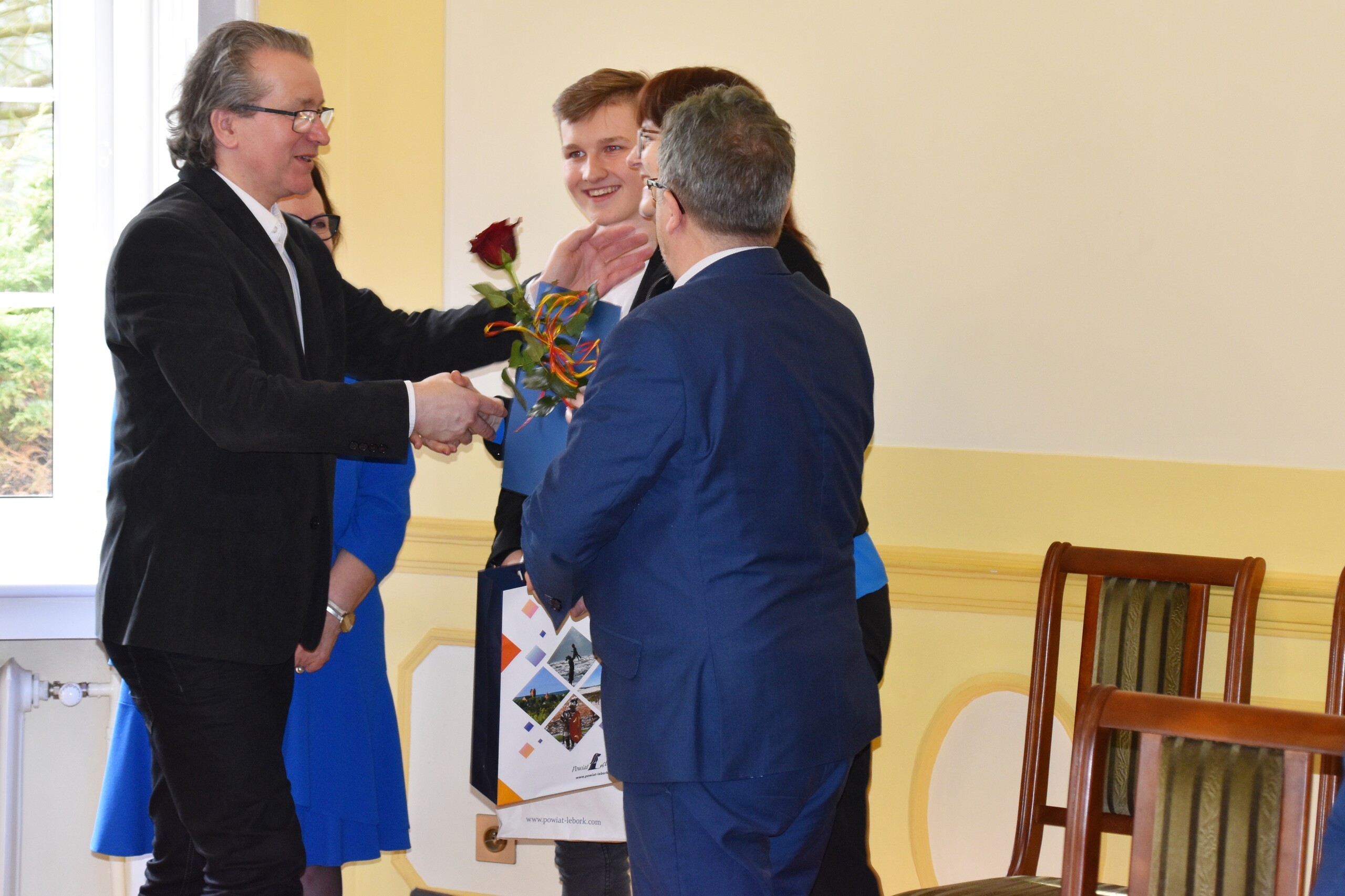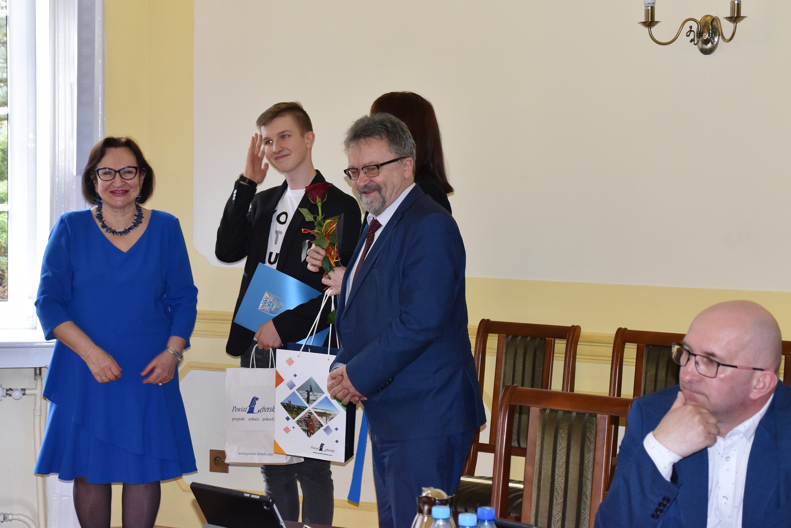 Mikołaj Guzek z Zespołu Szkół Ogólnokształcących nr 2 w Lęborku (opiekun: Joanna Schodzińska), Ksawery Drywa z Zespołu Szkół Ogólnokształcących nr 1 w Lęborku (opiekun: Aldona Korzeniewska) i Antoni Każuro również z ZSO nr 1 (opiekun: Adam Podlewski) zmierzą się z innymi laureatami powiatowych etapów Konkursu Wiedzy o Samorządzie Terytorialnym w II – wojewódzkim etapie tej imprezy. Wymienieni w I – powiatowym etapie okazali się najlepiej zaznajomieni z tematyką samorządności ze wszystkich 28 uczestników tego etapu konkursu. Oficjalne wyniki ogłosiła Ewa Burak – przewodnicząca komisji konkursowej i jednocześnie Naczelnik Wydziału Edukacji i Spraw Społecznych, którą w ocenie prac wspierały członkinie komisji: Katarzyna Czechowska i Anetta Gburczyk. Laureaci etapu powiatowego konkursu otrzymali gratulacje od starosty, wicestarosty i radnych, ponieważ wręczenie wyróżnień odbyło się podczas sesji Rady Powiatu Lęborskiego.