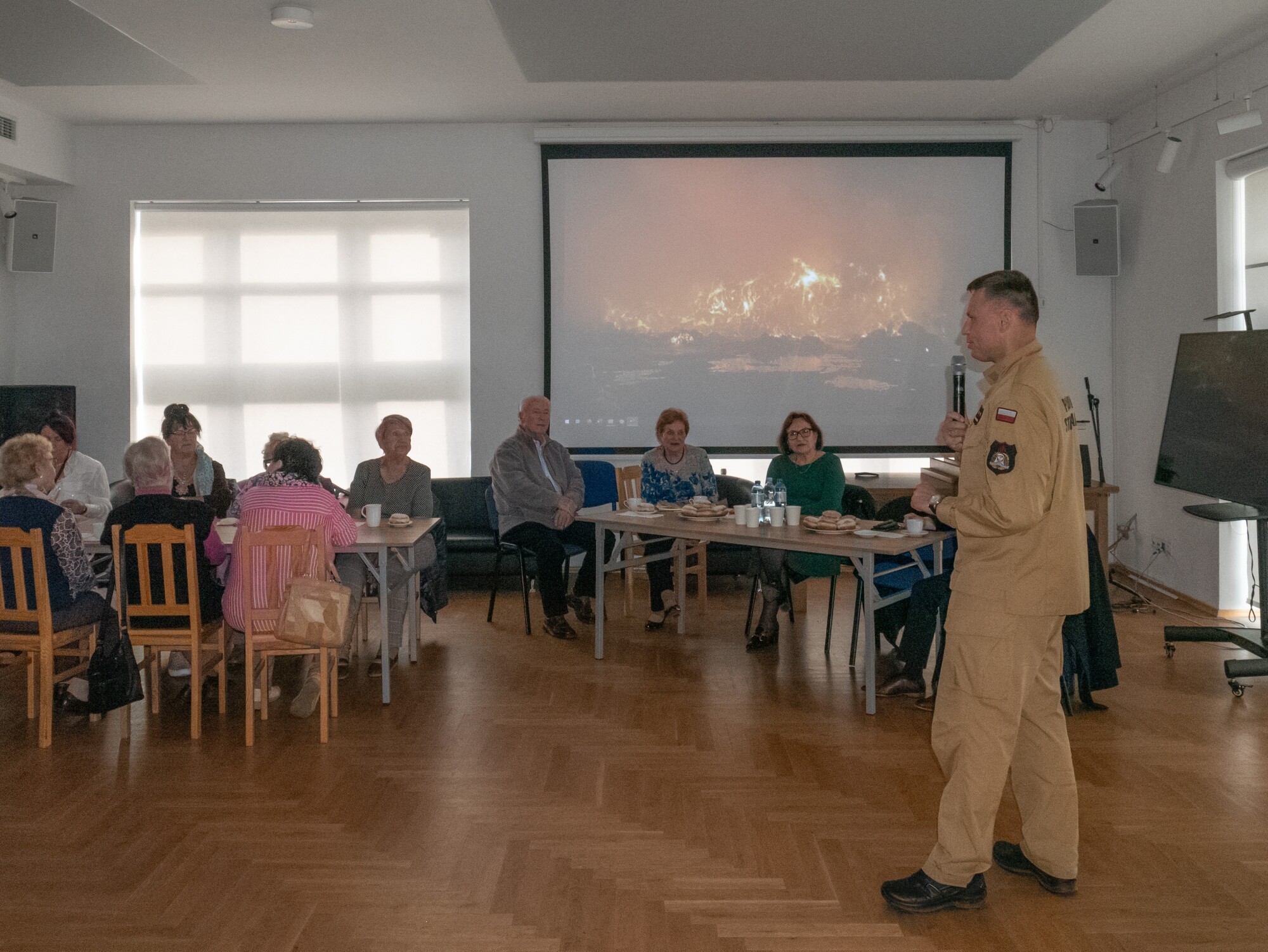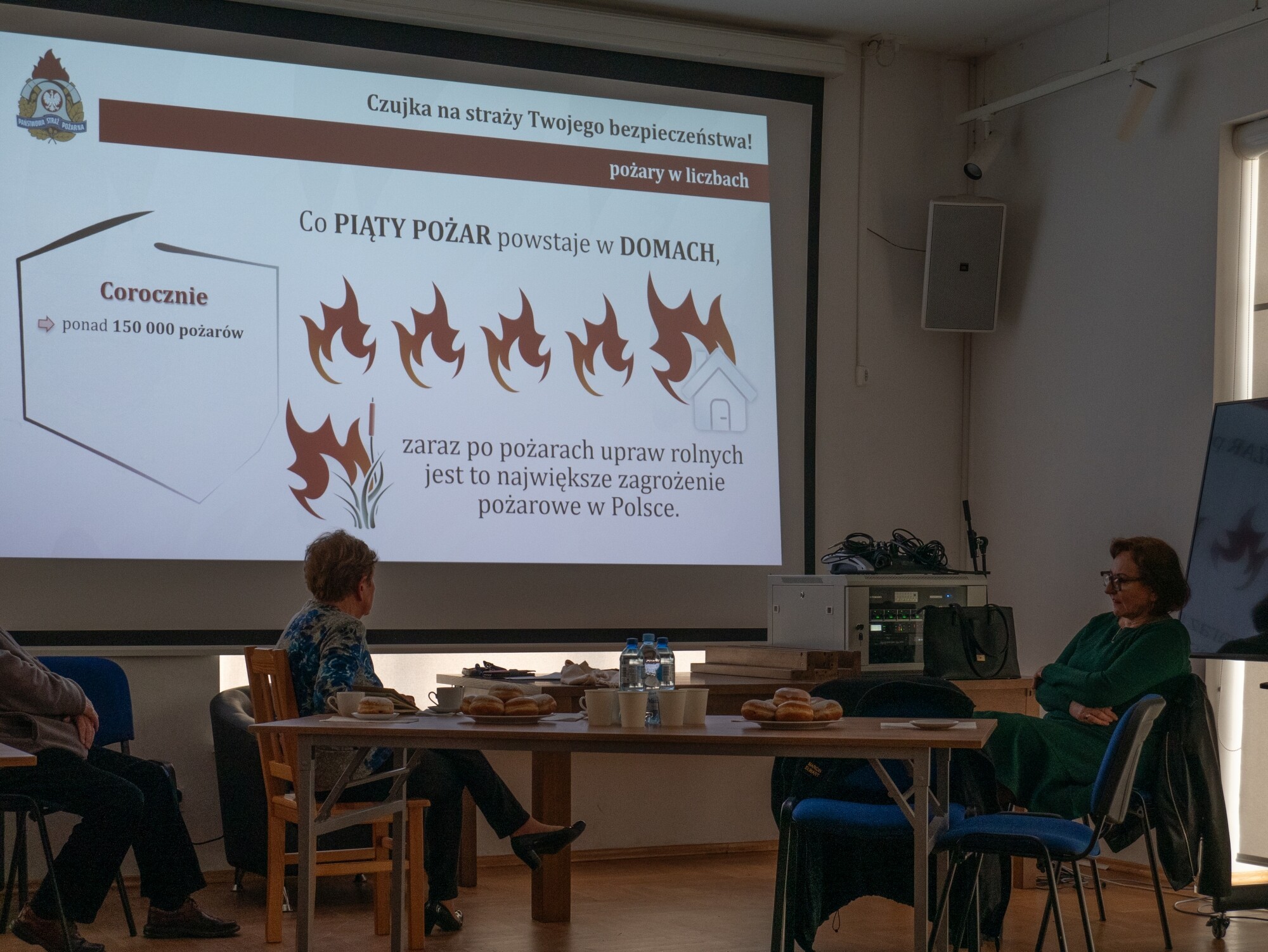 Szkoleniowe spotkanie zostało zorganizowane w ramach cyklicznych spotkań grupy seniorów skupionej wokół Klubu Ligi Kobiet Polskich, któremu przewodniczy Wanda Konieczna. Cyklicznym spotkaniom, oprócz spełnianej przez nie funkcji integrującej środowisko, towarzyszy aspekt tematyczny, najczęściej związany z praktycznymi radami służącymi poprawie jakości życia, a w tym przypadku bezpieczeństwa. – To temat bardzo ważny szczególnie w okresie jesienno-zimowym, kiedy wszyscy zaczynamy korzystać z urządzeń grzewczych – mówiła Wanda Konieczna, wprowadzając w tematykę spotkania – Mam świadomość, że wiele z omawianych dzisiaj spraw jest wszystkim świetnie znanych i zdawałoby się oczywistych, ale tym bardziej trzeba je przypomnieć, żeby nie ulec pewnej rutynie i nie zatracić czujności.