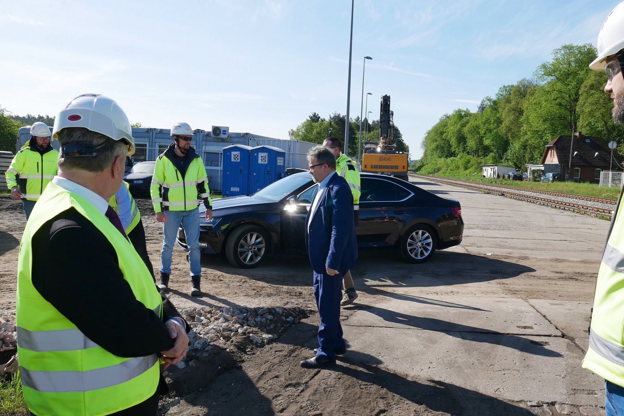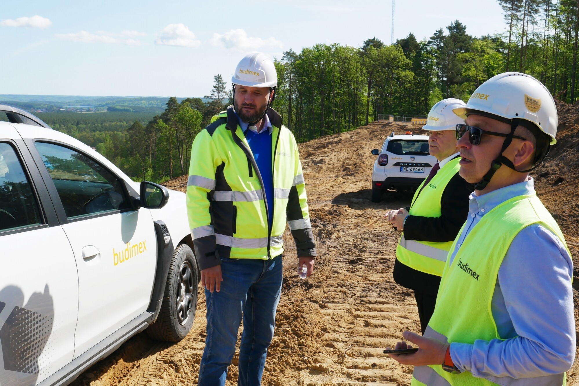 W spotkaniu w ramach „Tygodnia Bezpieczeństwa” uczestniczyli również samorządowcy: Edmund Głombiewski – Wicestarosta Lęborski, Witold Namyślak – burmistrz Lęborka, Jerzy Pernal – z-ca burmistrza Lęborka i Zdzisław Chojnacki – wójt Gminy Nowa Wieś Lęborska, na której terenie zlokalizowane będą oba węzły. Gości po terenie budowy oprowadzali” Wojciech Kołacki – dyrektor kontraktu i Norbert Krzemiński, zastępca dyrektora kontraktu ds. drogowych.