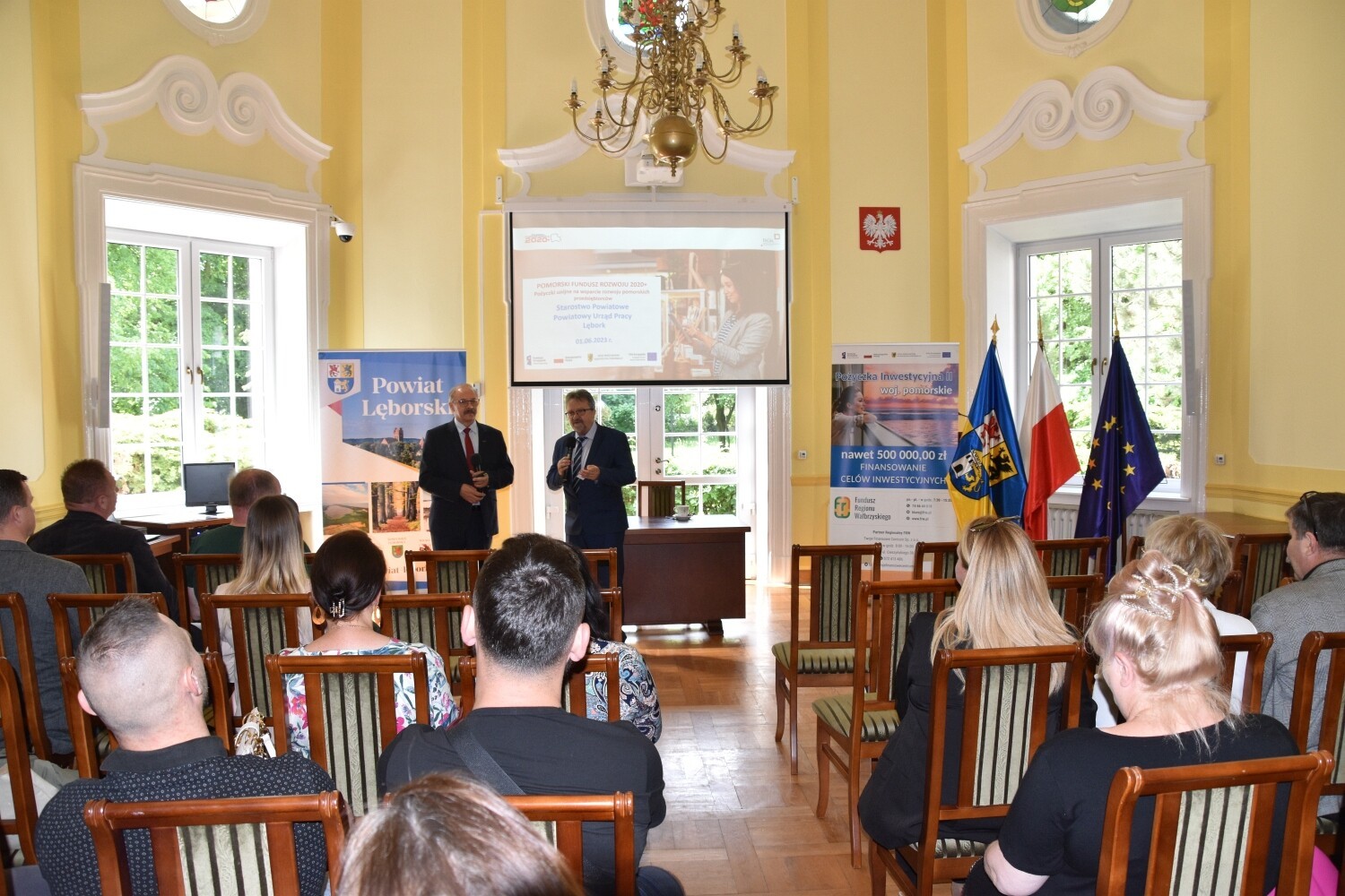 Starosta Lęborski wspólnie z dyrektorem Powiatowego Urzędu Pracy w Lęborku zorganizowali spotkanie szkoleniowe dla wszystkich zainteresowanych rozwojem prowadzonej działalności gospodarczej w oparciu o możliwe instrumenty finansowe Banku Gospodarstwa Krajowego. Warsztaty szkoleniowe poprowadził Andrzej Hlawacik – dyrektor Departamentu Instrumentów Finansowych BGK.