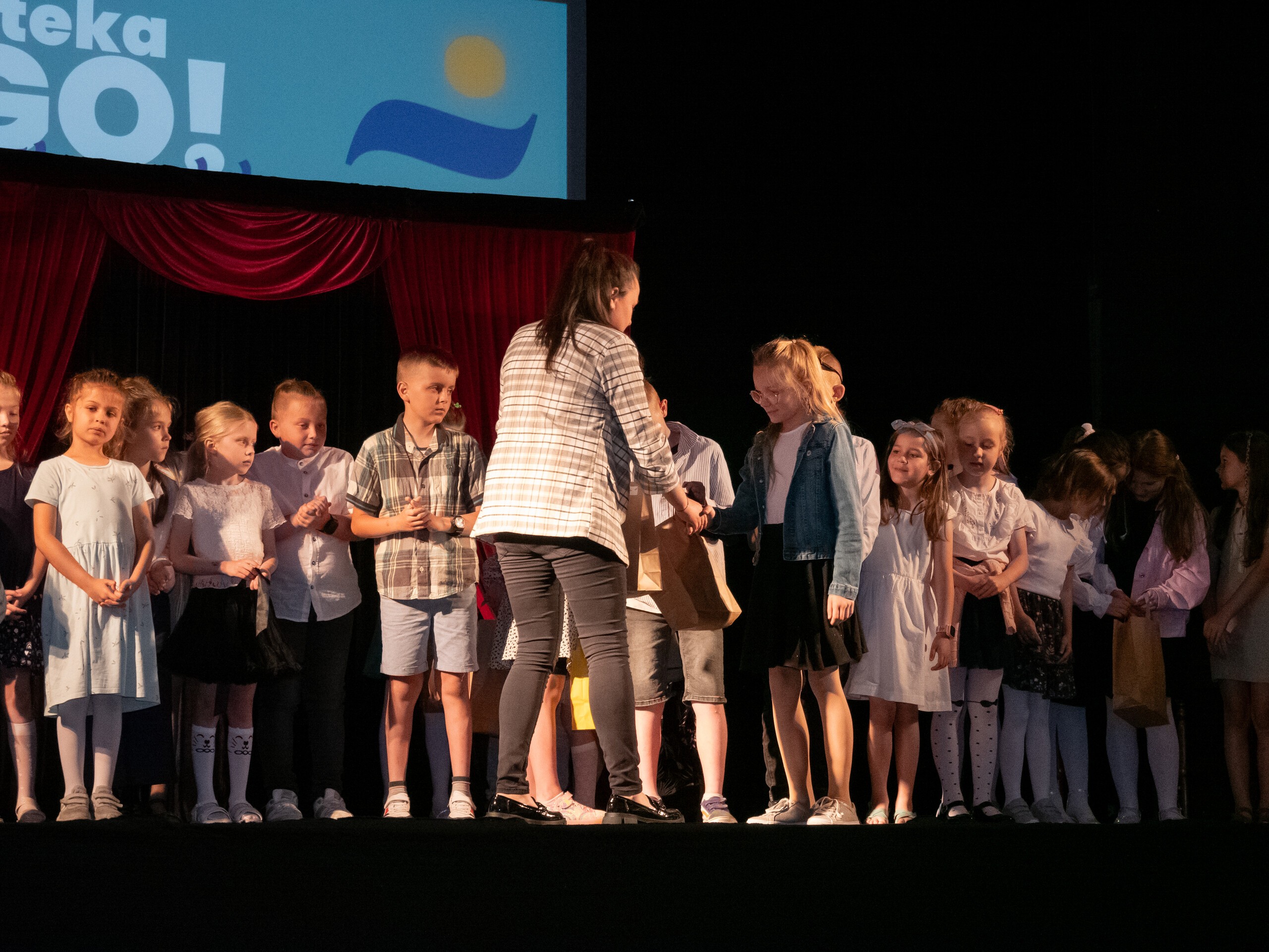 Na finałowe spotkanie organizatorzy akcji zaprosili do kina „Fregata” dzieci klas 1-3 z terenu powiatu lęborskiego. Najaktywniejsi w konkursie mali czytelnicy otrzymali nagrody i upominki oraz mieli okazję obejrzeć spektakl „Mruczek” w wykonaniu Teatru Kurtyna, poruszający ważne tematy strachu przed nieznanym, wartości przyjaźni, a także coraz bardziej istotny społeczny problem uzależnienia od urządzeń cyfrowych.