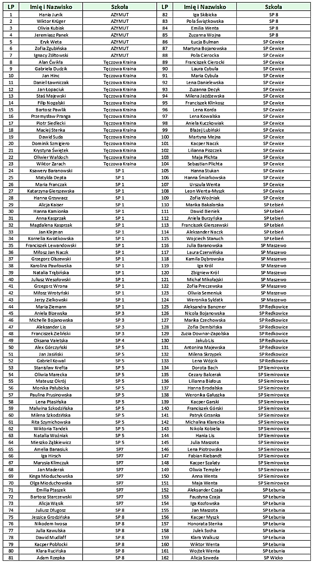 Nagrodę Burmistrza Miasta Lęborka otrzymał Bartosz Chmielecki z Niepublicznej Szkoły Podstawowej w Mostach, Nagrodę Starosty Lęborskiego - Jan Kulisz z Zespołu Szkół w Cewicach. Listę finalistów dołączany w galerii zdjęciowej.