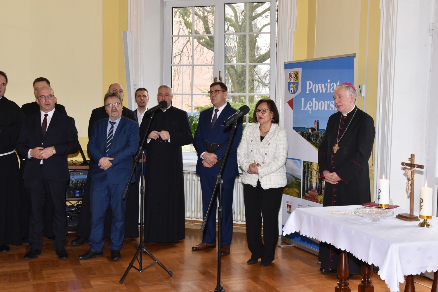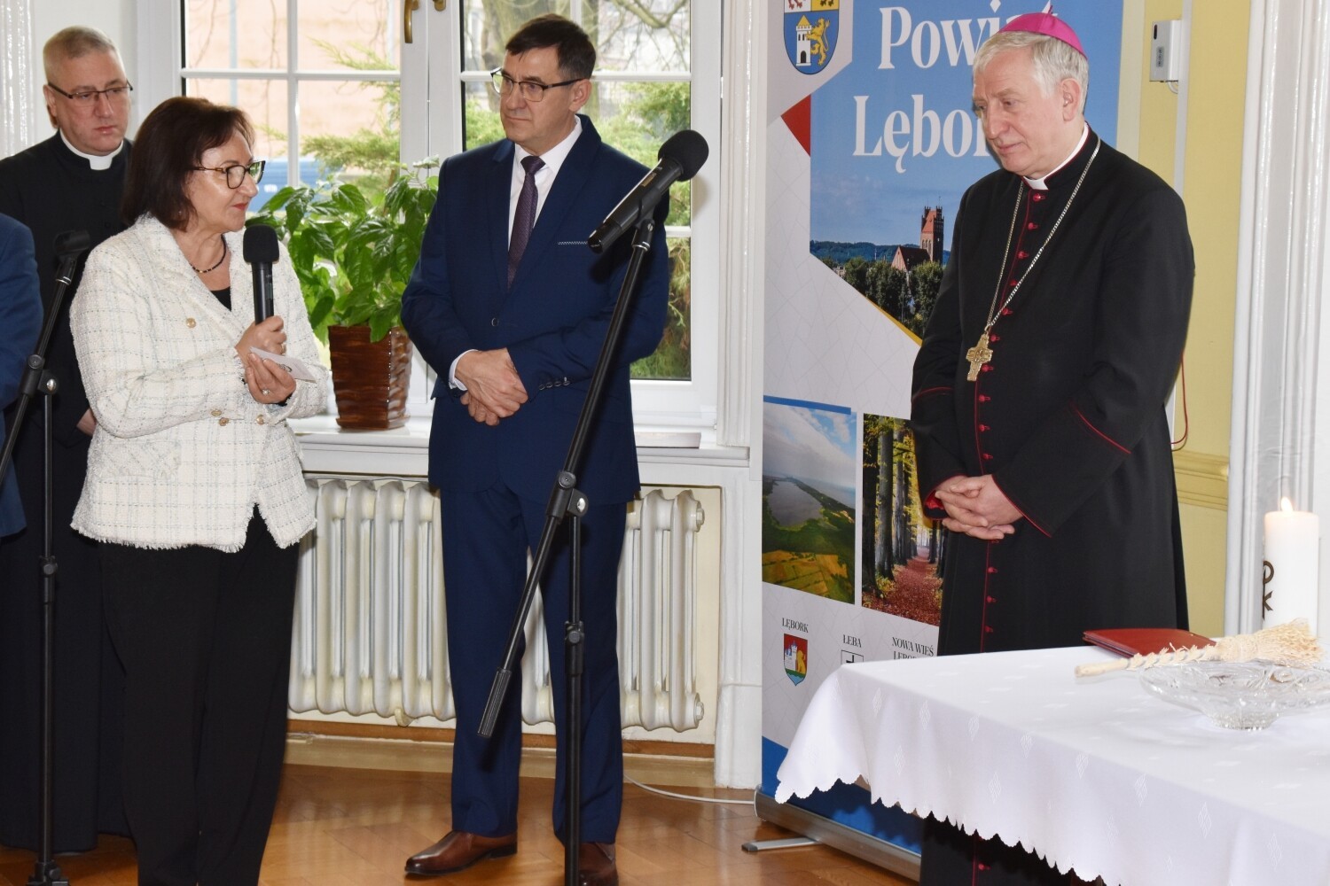 O błogosławieństwo dla mieszkańców powiatu poprosił ks. biskupa Mirosław Tandek – przewodniczący Rady Powiatu Lęborskiego. – Na co dzień widzimy, że obecny czas jest czasem trudnym, nacechowanym niepokojami i widmem wojny tuż za naszymi granicami. Dlatego tak ważne jest tworzenie dobra, które łączy nas wszystkich - mówił Mirosław Tandek – Jako samorządowcy skupiamy się na służbie wspólnocie mieszkańców powiatu, by zabezpieczyć jej potrzeby wewnętrzne i zewnętrzne. Ufamy, że obecność ks. biskupa wśród nas przyczyni się na drodze do budowania wśród nas żywego kościoła. Aby sprostać niełatwym wyzwaniom, potrzebujemy duchowej siły, która wesprze nas we współpracy na rzecz dobra człowieka, rodziny i narodu.
