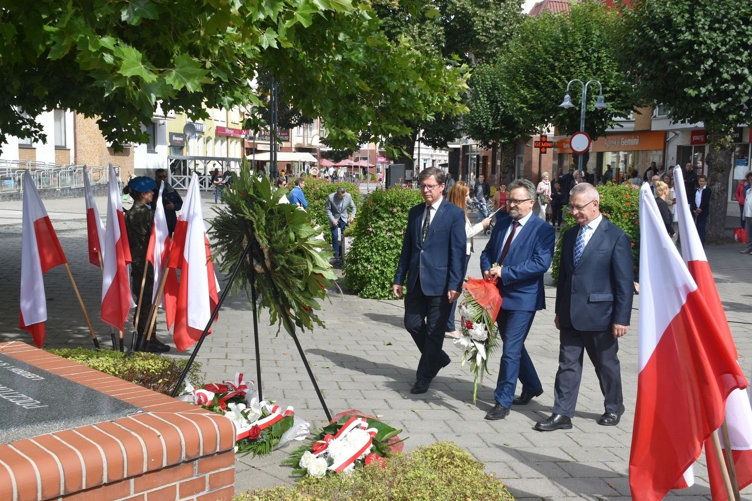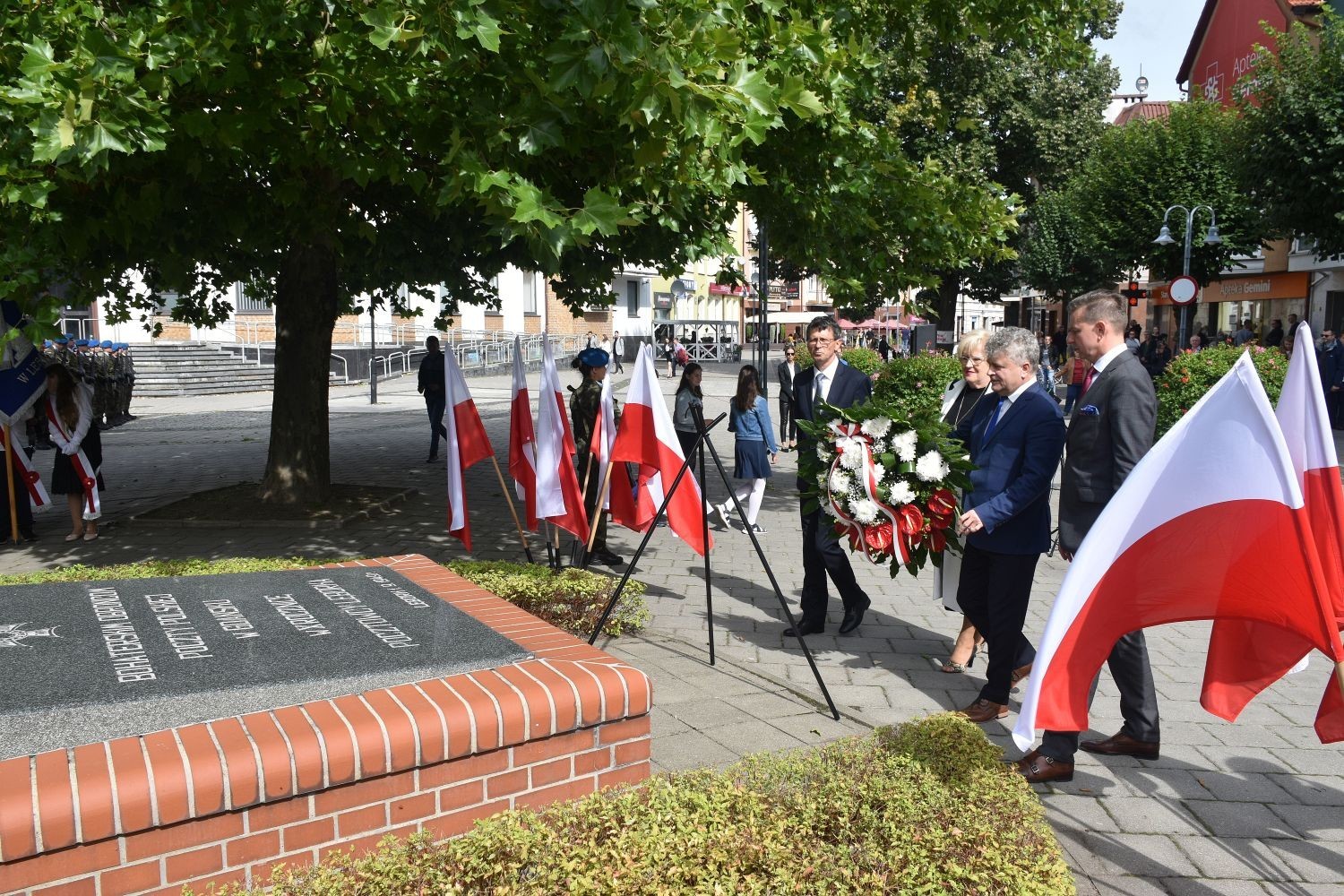 Przy płycie upamiętniającej Pocztowców Gdańskich, wspólnie z przedstawicielami władz miejskich, służb mundurowych, organizacji społecznych i politycznych, kwiaty złożyli reprezentujący Powiat Lęborski: Edmund Głombiewski – Wicestarosta Lęborski, Zdzisław Chojnacki – Przewodniczący Rady Powiatu Lęborskiego i Ryszard Wenta – członek Zarządu Powiatu. Okolicznościowe przemówienie, przypominające tragiczne wydarzenia czasów wojny wygłosił Witold Namyślak, Burmistrz Miasta Lęborka. Rocznicowym obchodom towarzyszył Apel Pamięci i salwa honorowa Kompanii Reprezentacyjnej 1. Lęborskiego Batalionu Zmechanizowanego im. gen. Jerzego Jastrzębskiego.