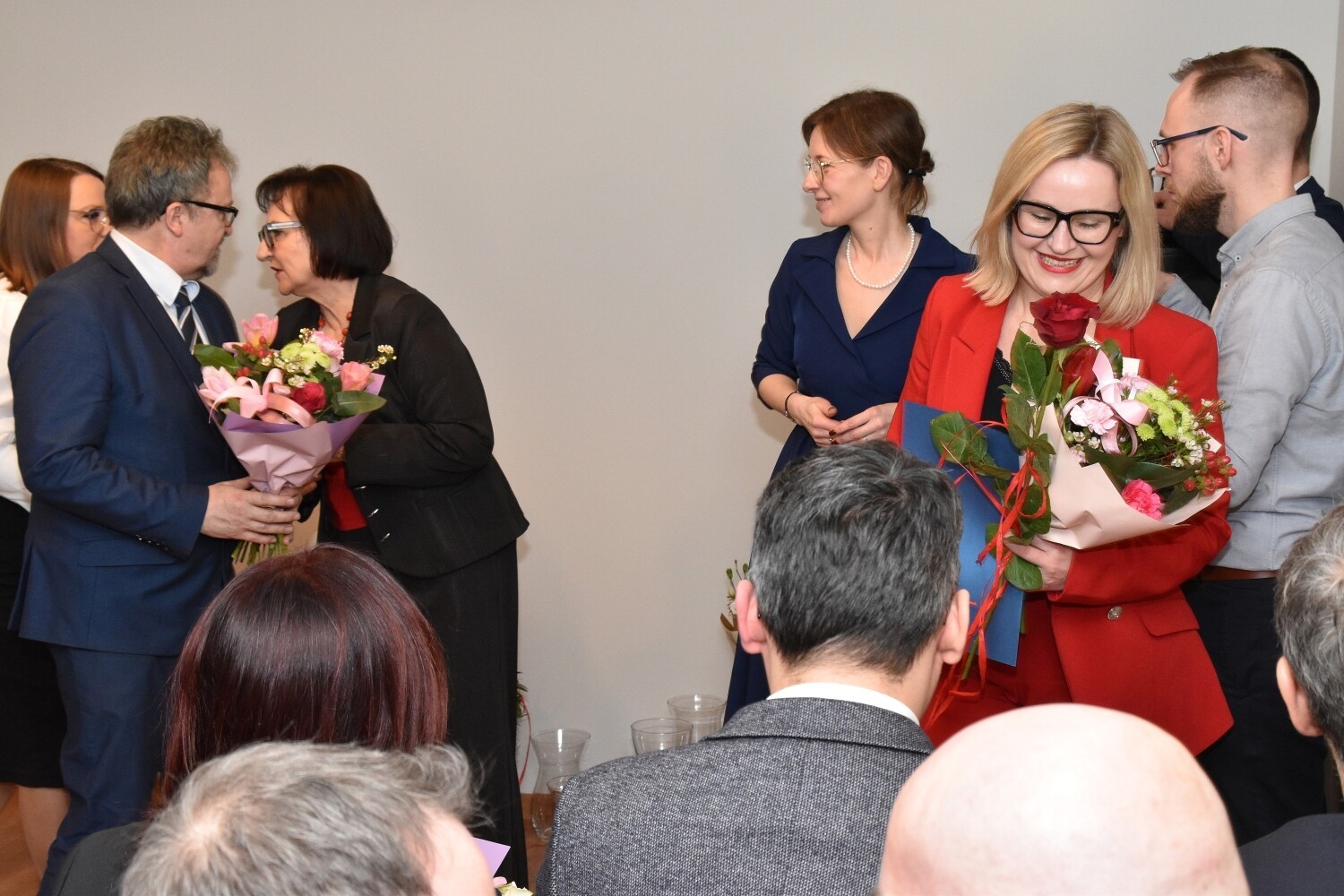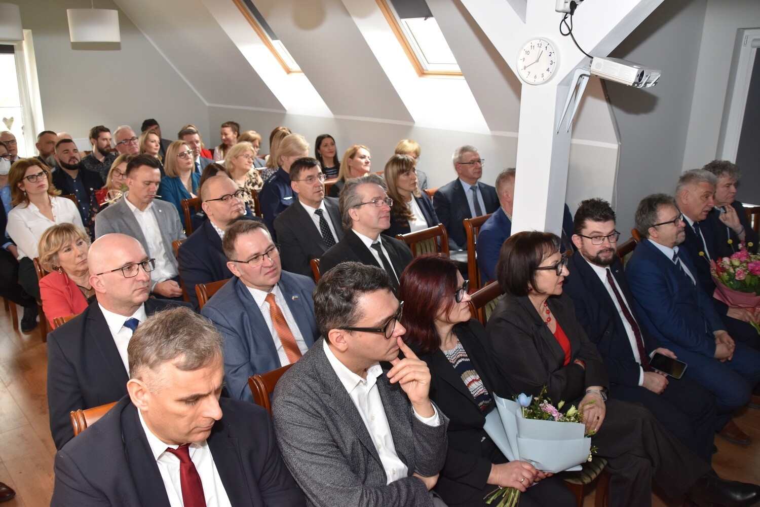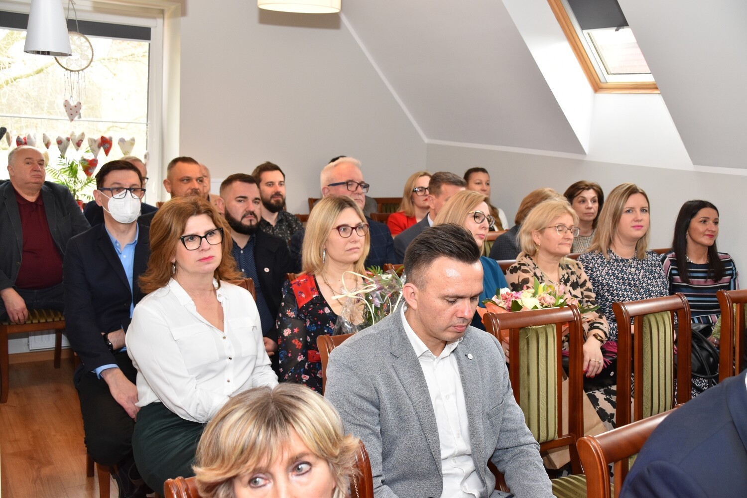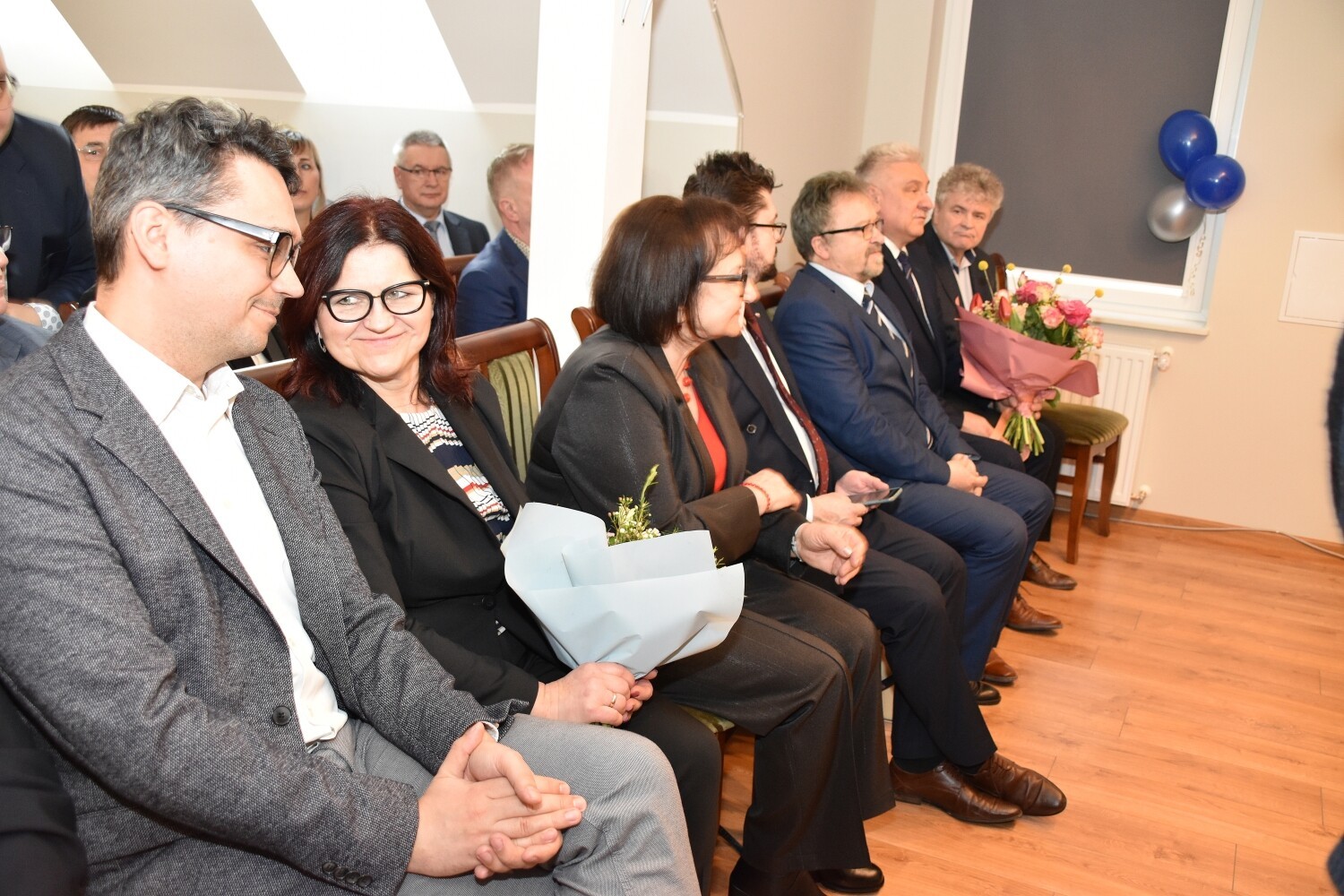 Na ręce dyrektor PCPR, Bogusławy Lis-Zielińskiej życzenia i gratulacje składali reprezentanci jednostek pomocy społecznej z terenu powiatu, ale również wójtowie: Gminy Cewice – Jerzy Bańka i Nowej Wsi Lęborskiej – Zdzisław Chojnacki. Samorządowcy wsparli swoje życzenia bonami towarowymi na zakupy tego, co mogłoby w nowej siedzibie jeszcze się przydać. Życzenia złożył także burmistrz Lęborka Witold Namyślak.
