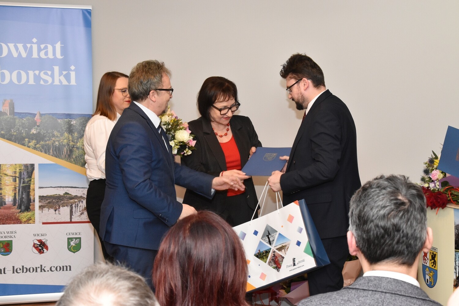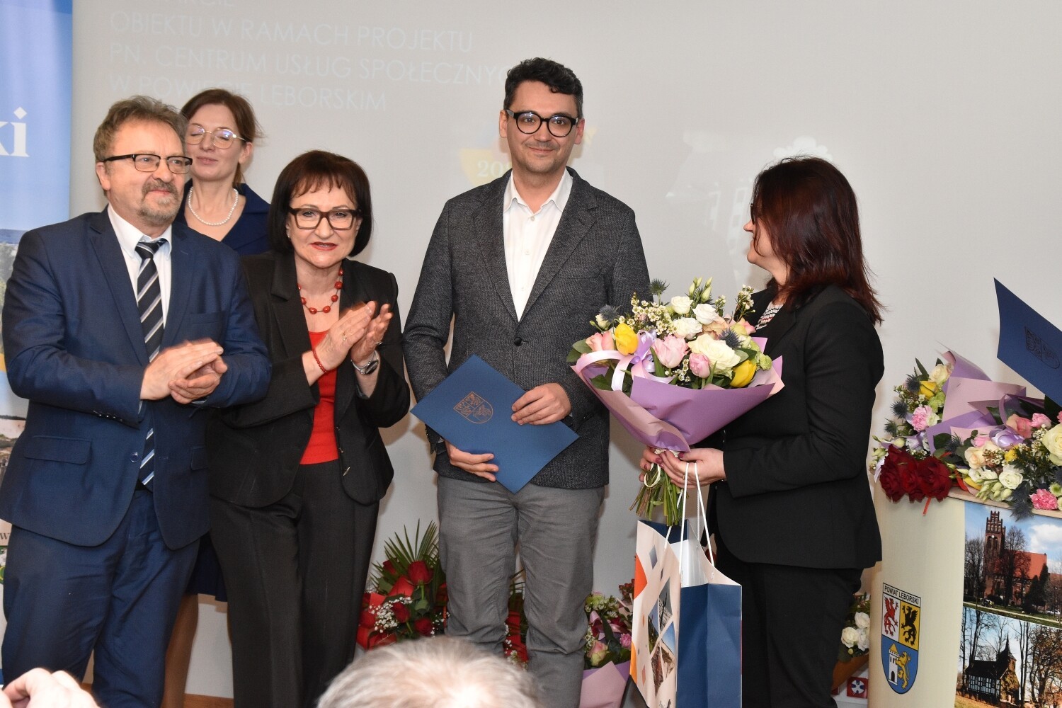 Podziękowania otrzymali również ci, którzy pracowali bezpośrednio przy realizacji projektu i samej budowy, w tym Hanna Kowalska – kier. Referatu Programów Pomocowych, Michalina Makurat – Koordynator projektu „Centrum Usług Społecznych w powiecie lęborskim” oraz Adam Etmański – kier. Referatu Realizacji Inwestycji (RRI) i Joanna Malek – inspektor w RRI, za wkład pracy, kreatywność, umiejętność skutecznego działania pod presją czasu i efektywność, której skutkiem jest finalne zakończenie inwestycji.