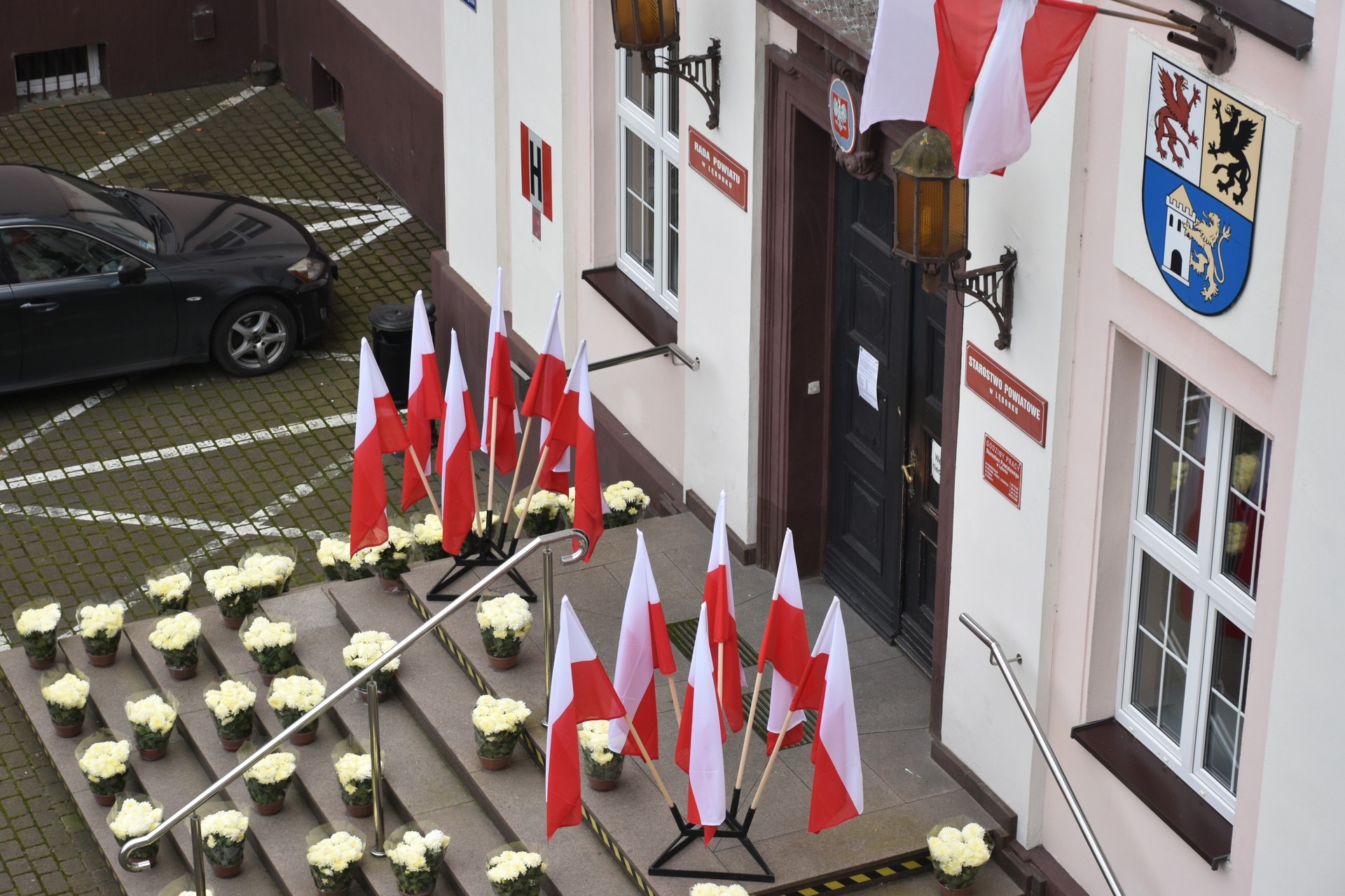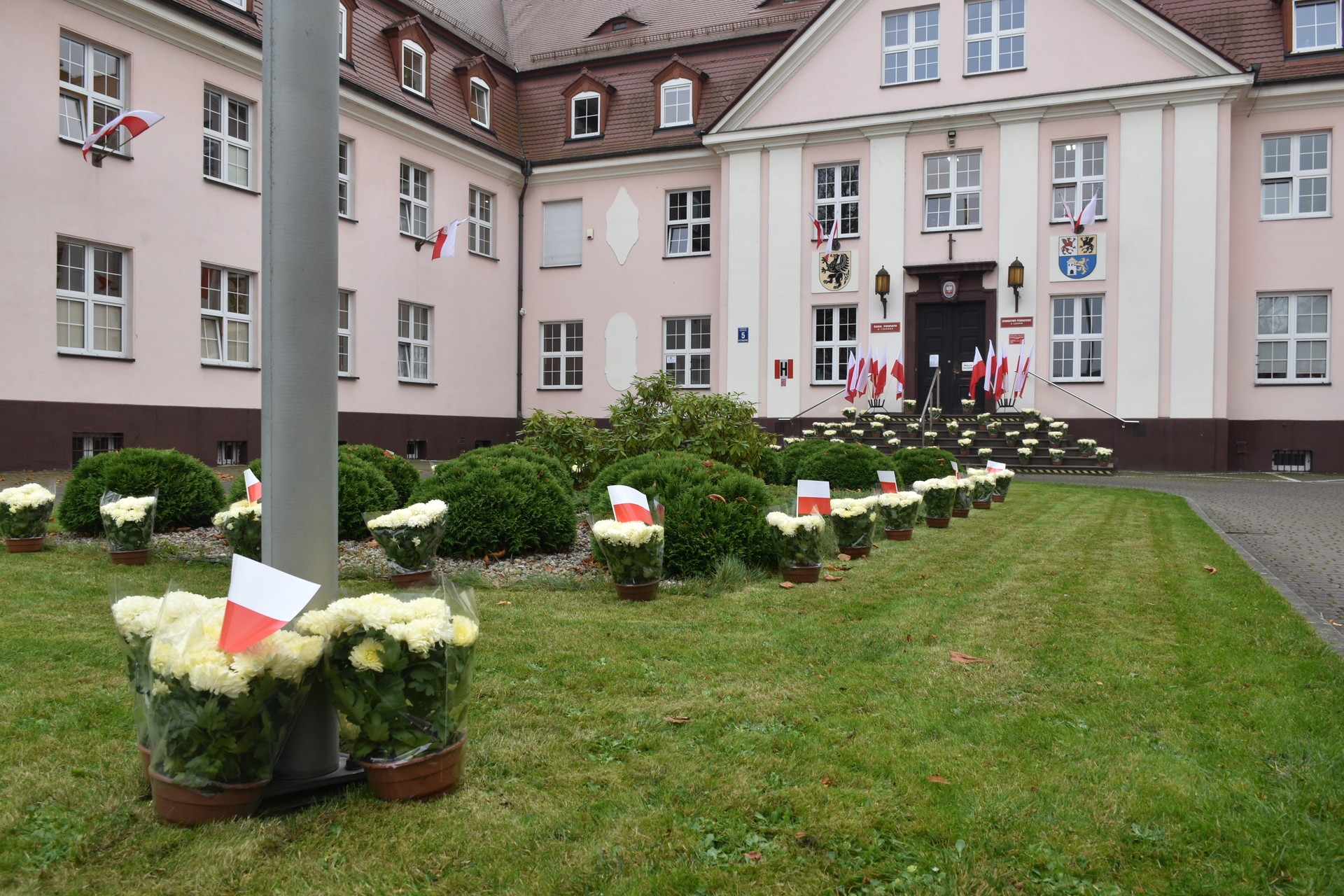 11 listopada w Dzień Niepodległości, lęborskie starostwo zyska niezwykle kwiatowe przybranie. To efekt współpracy powiatu z Biurem Powiatowym Agencji Restrukturyzacji i Modernizacji Rolnictwa w Lęborku. Początkowy pomysł ułożenia biało czerwonej z chryzantem, które lokalni przedsiębiorcy przygotowali do sprzedaży na Wszystkich Świętych niestety nie doszedł do końcowej realizacji, ponieważ urząd nabył kwiaty, które najzwyczajniej pozostały na stanach i nie zostały wyprzedane przy cmentarzach 1 i 2 listopada.