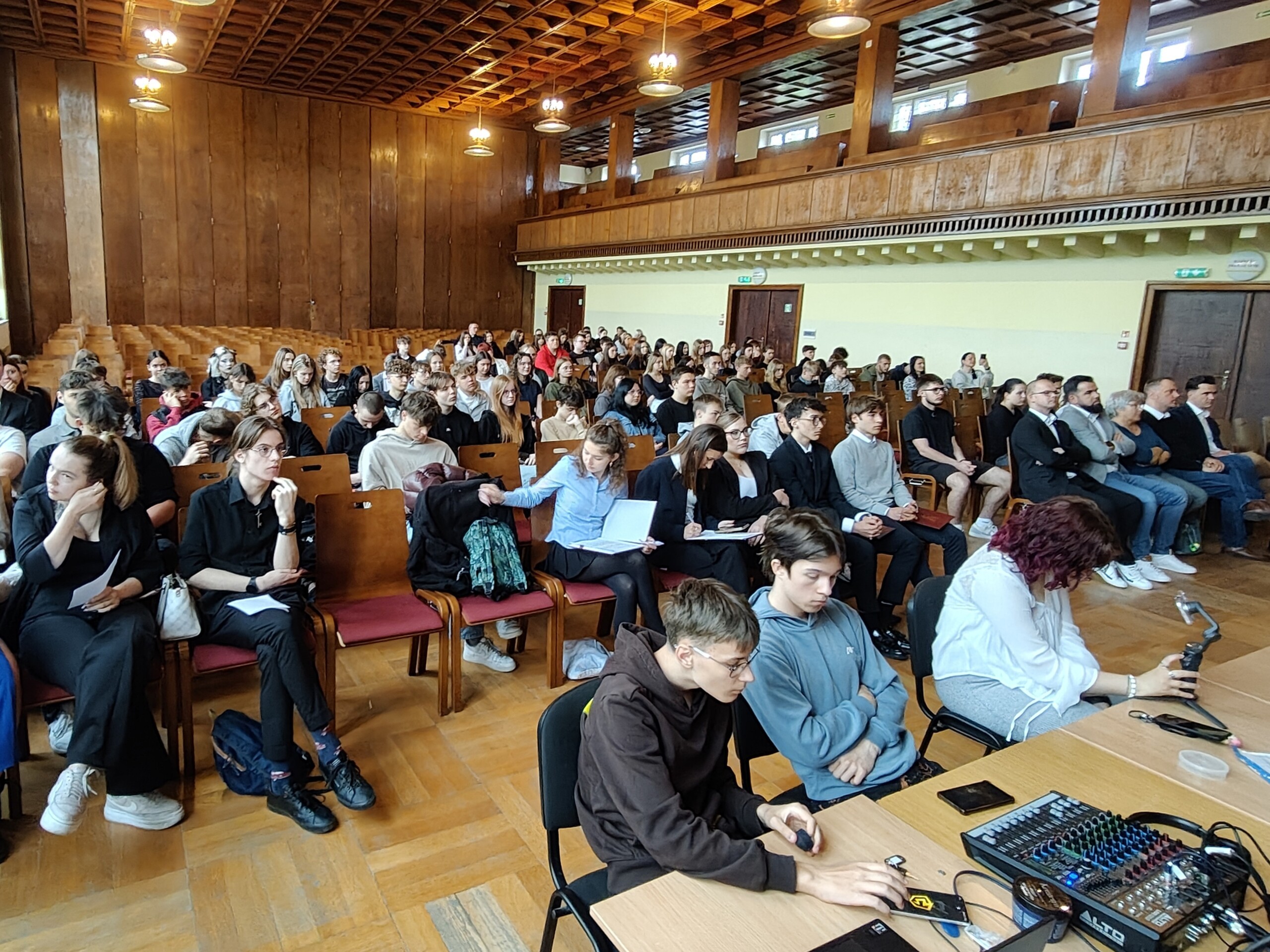 Tym razem w dyskusyjne szranki stanęli uczniowie szkół ponadpodstawowych. Tematy, podobnie jak dzień wcześniej, w wykonaniu reprezentacji szkół podstawowych, oscylowały wokół życia w cyfrowym świecie oraz korzyści i zagrożeń, jakie technologia wprowadza do codzienności.