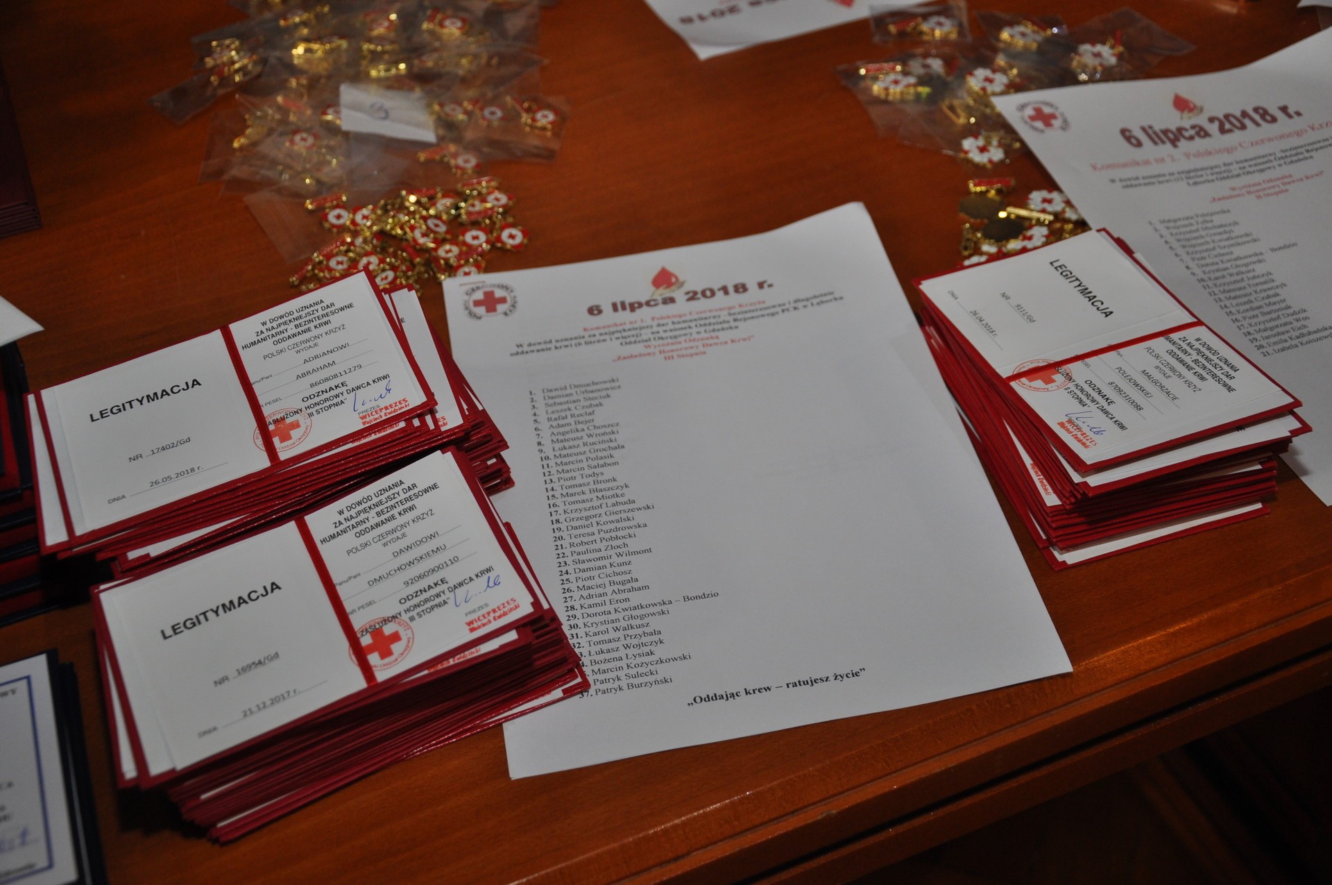 Co najmniej 18 litrów krwi oddali wyróżnieni odznakami I stopnia „Zasłużony Honorowy Dawca Krwi”: Marek Nickiewicz, Marek Konkol, Dorota Sysik, Michał Szymikowski, Rafał Godula, Krzysztof Jóźwiak, Sylwester Odrowąż – Piramowicz, Piotr Filcek, Marcin Kocół, Kamil Czarkowski, Beata Popławska i Janusz Puzdrowski.