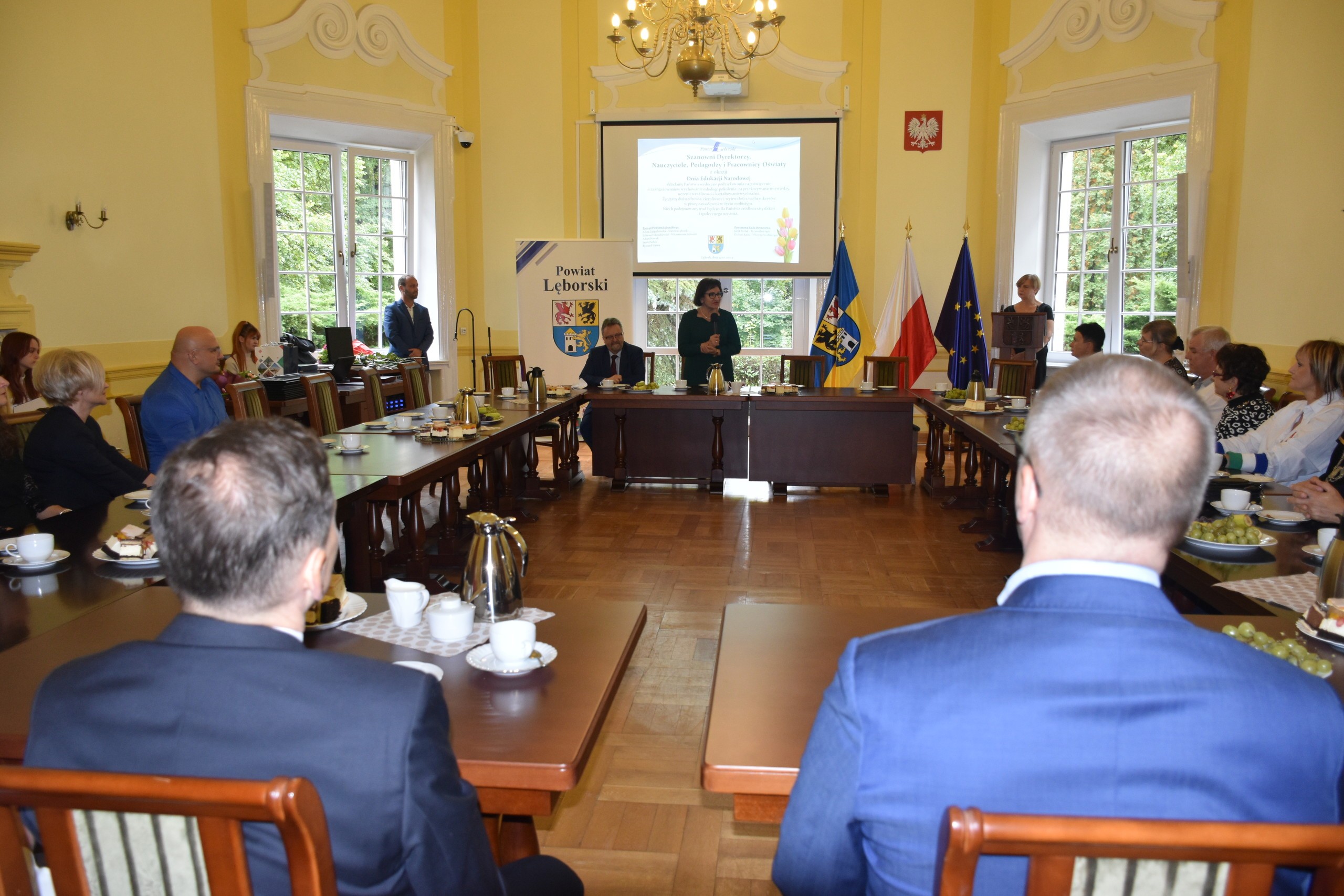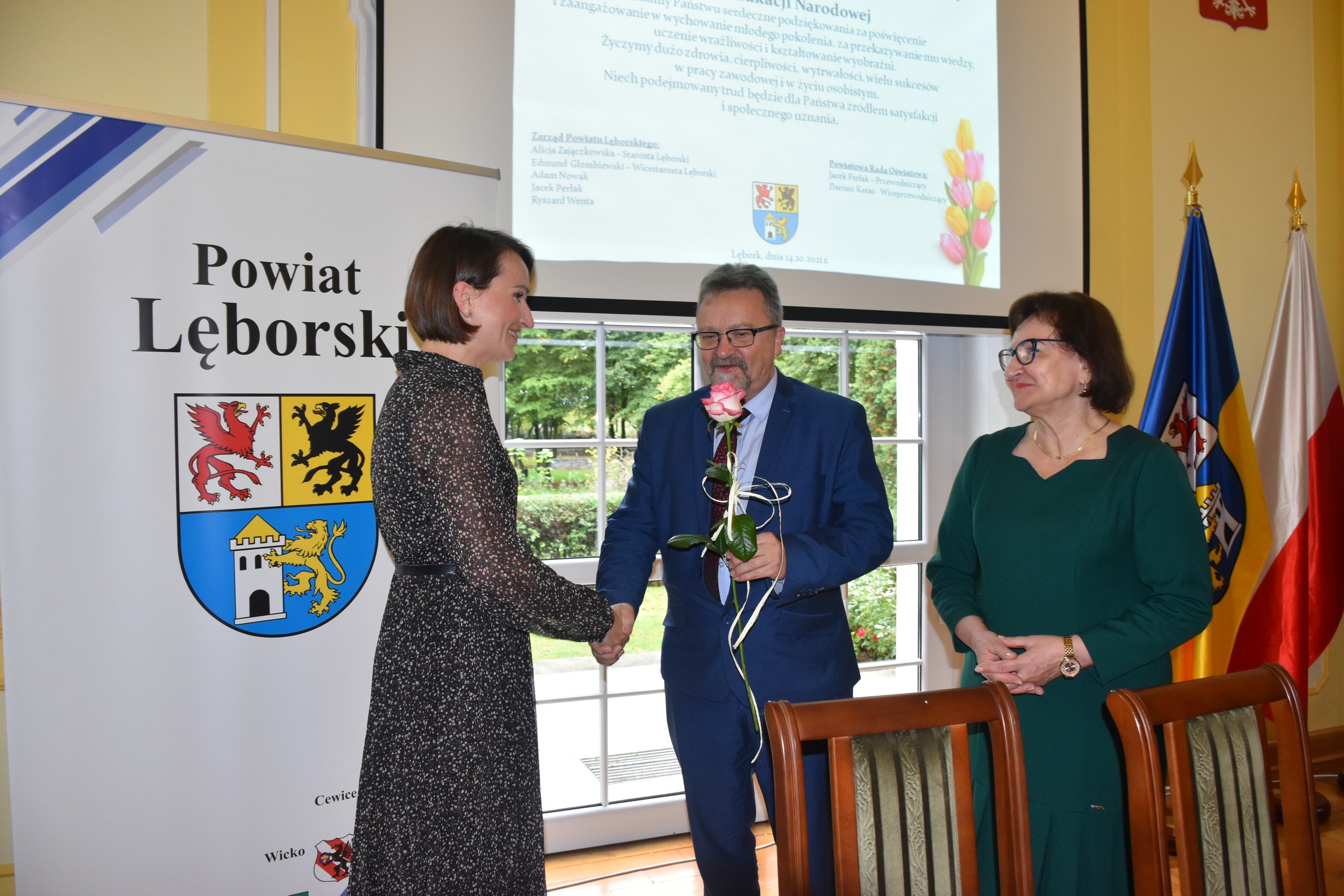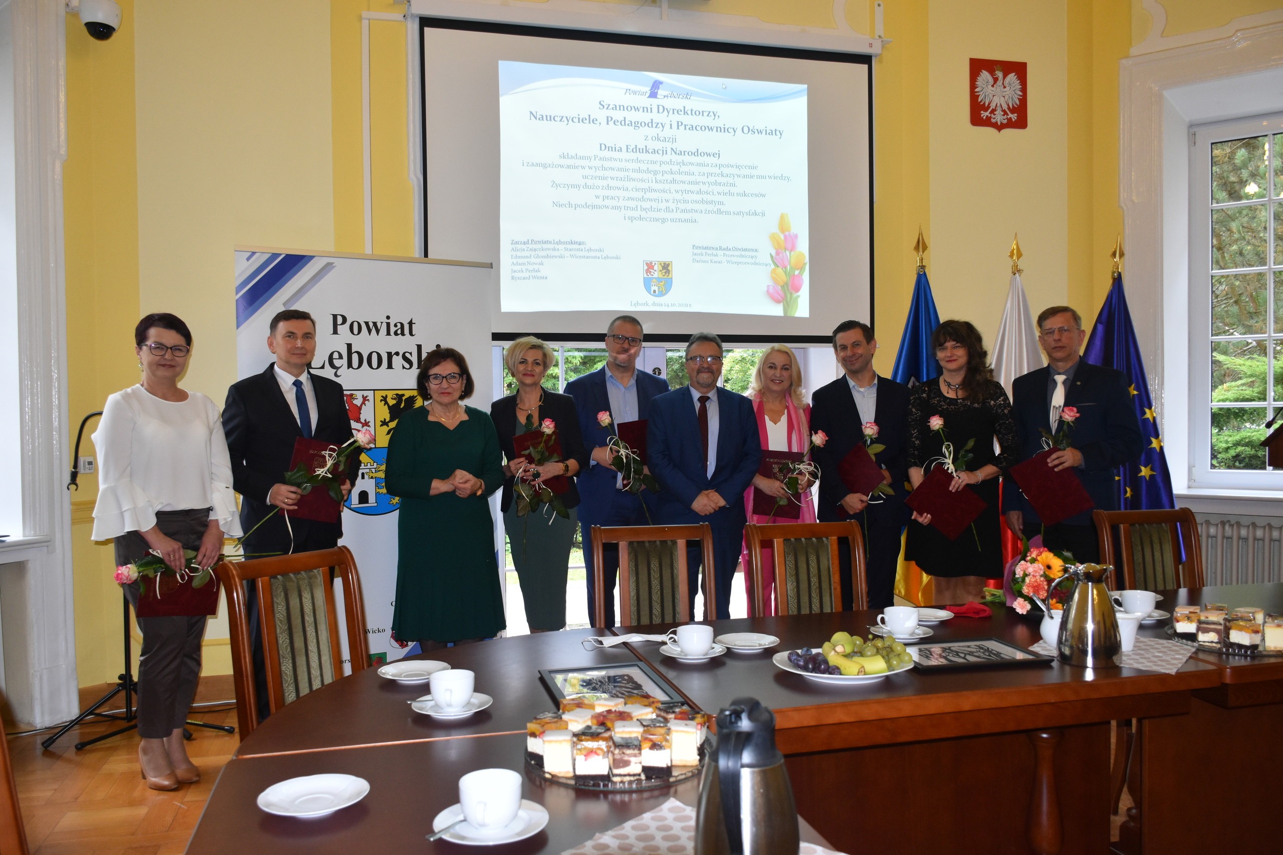 Wręczeniem 8 nagród Starosty Lęborskiego dla dyrektorów i nauczycieli podległych placówek oświatowych, rozpoczęły się powiatowe obchody Dnia Edukacji Narodowej, zorganizowane w budynku starostwa, w dniu 14 października br. W spotkaniu, prócz nagrodzonych uczestniczyli także : dyrektorzy szkół ponadpodstawowych i placówek oświatowych, nauczyciele, przedstawiciele Powiatowego Cechu Rzemiosła i Przedsiębiorczości w Lęborku, przedsiębiorcy oraz przedstawiciel Powiatowej Rady Oświatowej.