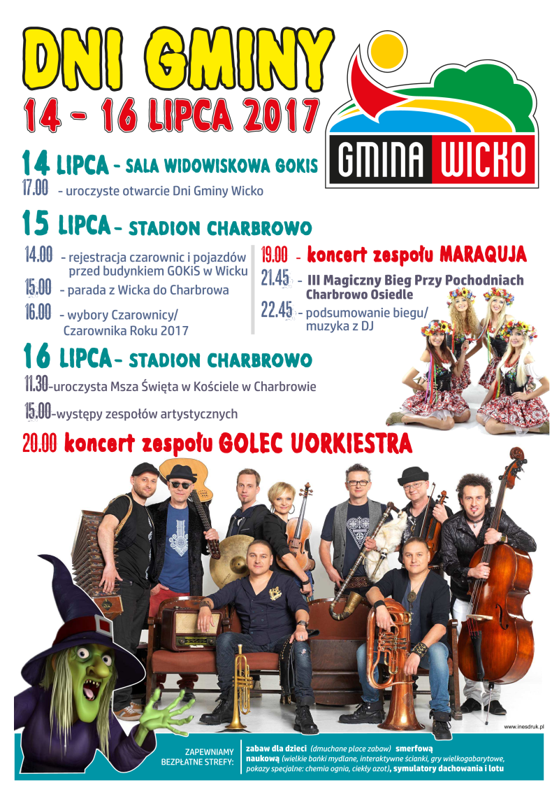 Dużymi krokami zbliżamy sie do kolejnej edycji Dni Gminy Wicko, króre zaplanowane zostały w terminie 14-16 lipca 2017 r.