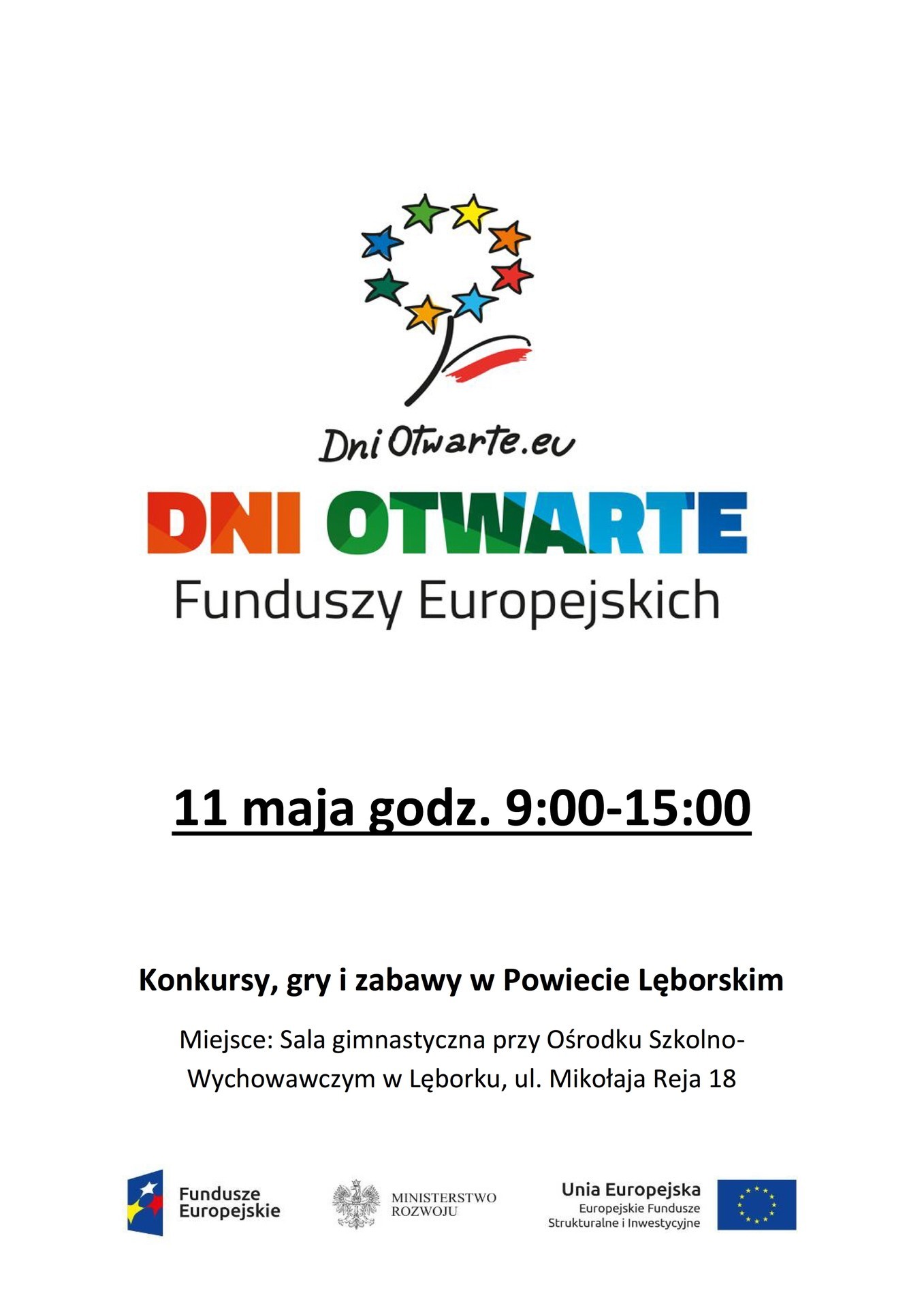 Każde dziecko otrzyma upominek! Więcej informacji znajdą Państwo na stronie internetowej: https://dniotwarte.eu/wydarzenia/wydarzenie/dni-otwarte-funduszy-europejskich-w-powiecie-leborskim