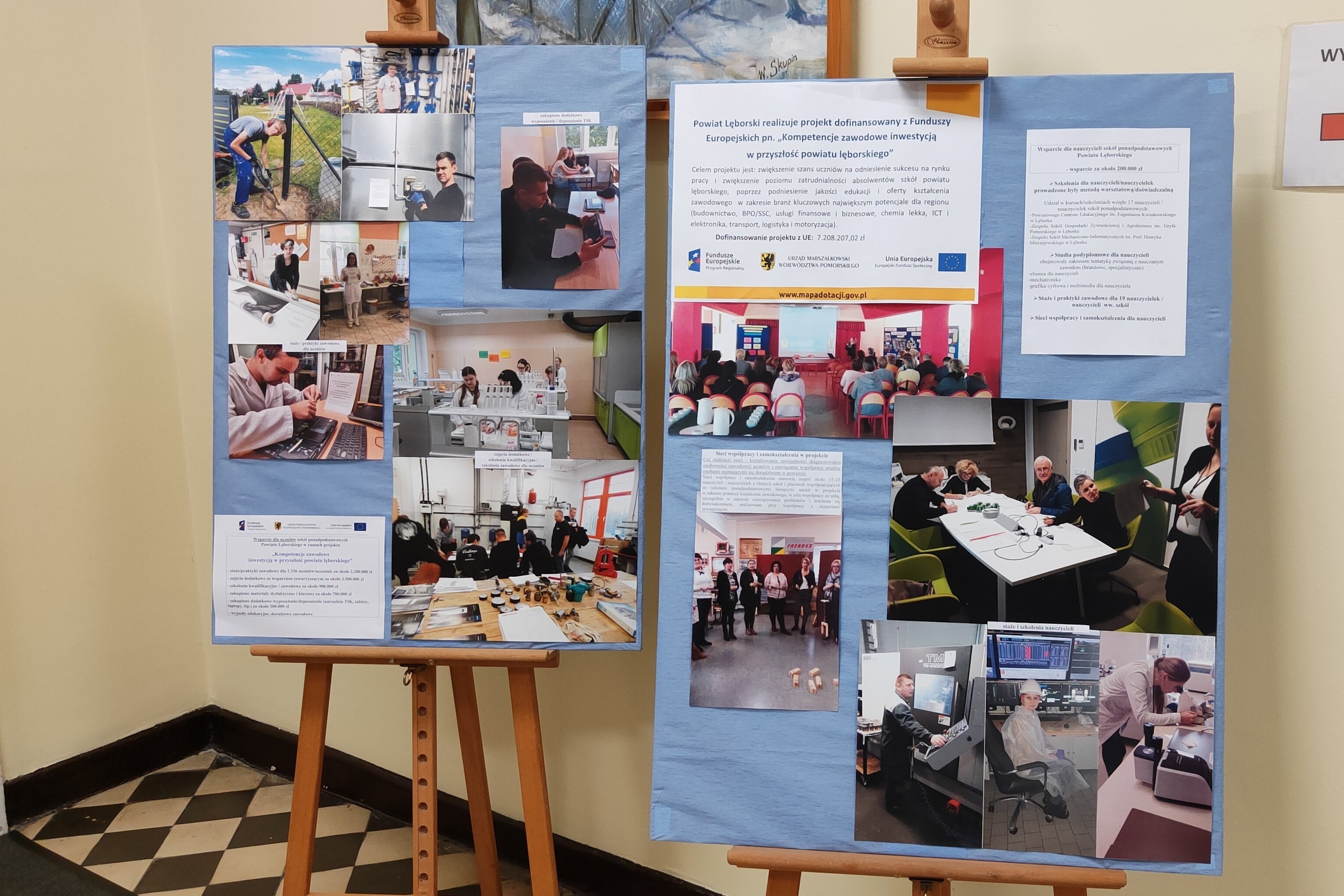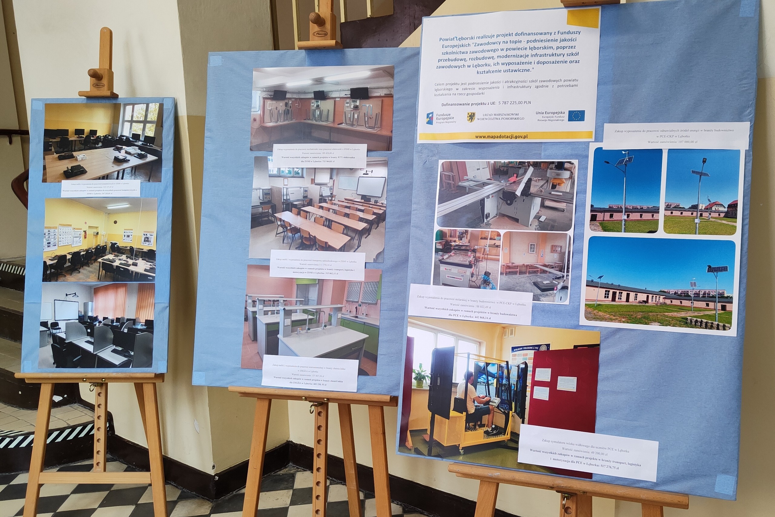 Referat Programów Pomocowych lęborskiego starostwa postanowił w formie wystawy pokazać efekty najbardziej spektakularnych działań odbywających się przy wsparciu funduszy unijnych i ich trwałych efekty. Wśród przedstawionych realizacji znalazł się m.in. dofinansowany kwotą blisko 6 mln zł projekt „Zawodowcy na topie – podniesienie jakości szkolnictwa zawodowego w powiecie lęborskim poprzez budowę, rozbudowę, modernizację infrastruktury szkół zawodowych w Lęborku, ich wyposażenie i doposażenie oraz kształcenie ustawiczne”. W tym przypadku działania poprawiające jakość i atrakcyjność szkół mają odpowiadać potrzebom edukacyjnym zgodnym z kierunkami rozwoju gospodarki. Dostosowaniu szkolnictwa do potrzeb zmieniających się realiów służy również dofinansowany kwotą ponad 7,2 mln zł projekt „Kompetencje zawodowe inwestycją w przyszłość powiatu lęborskiego”. W tym przypadku chodzi również o zwiększenie szans uczniów na odniesienie sukcesu na rynku pracy i zwiększenie poziomu zatrudnialności absolwentów szkół powiatu lęborskiego z uwzględnieniem branż kluczowych o największym potencjale dla regionu (szczególnie w zakresie budownictwa, BPO/SSC, usług finansowych i biznesowych, chemii lekkiej, ICT i elektroniki oraz transportu, logistyki i motoryzacji).