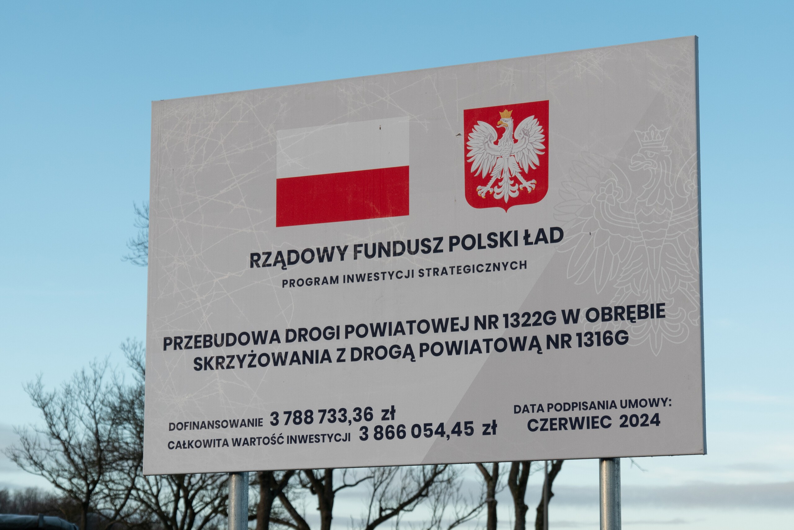 Również najbardziej kosztowne zadanie „Przebudowa DP nr 1322G w obrębie skrzyżowania z DP nr 1316G” zrealizowane zostało wspólnie z gminą. Tym razem Powiat Lęborski i Gmina Nowa Wieś Lęborska partycypowały w kosztach po 1 proc. z kwoty 3.866.054,45 zł. Na 98 proc. wartości zadania pozyskano wsparcie środków państwowych w Rządowego Funduszu Polski Ład.