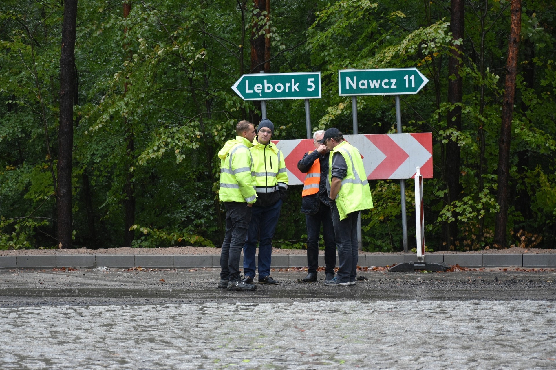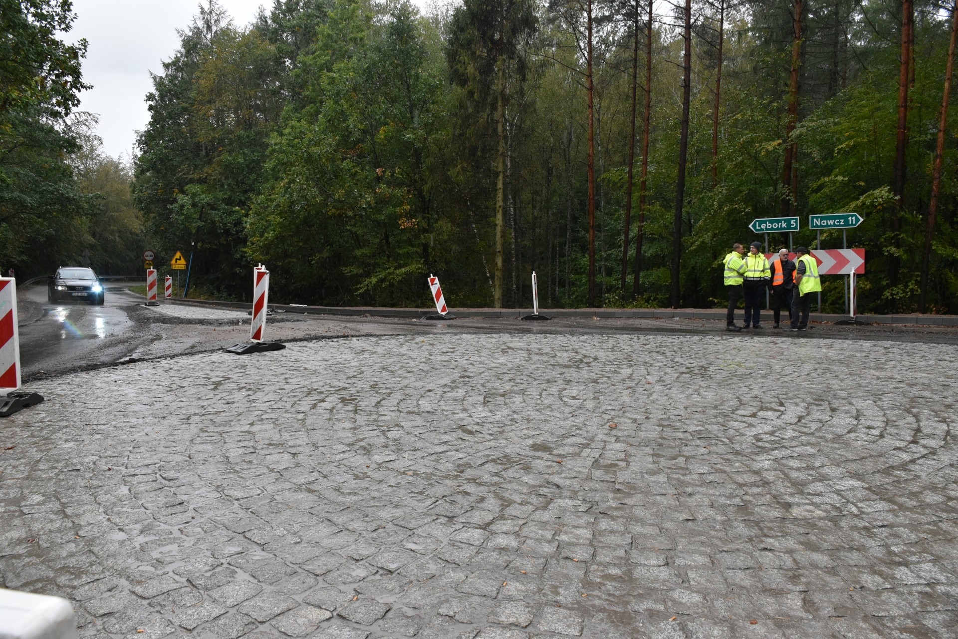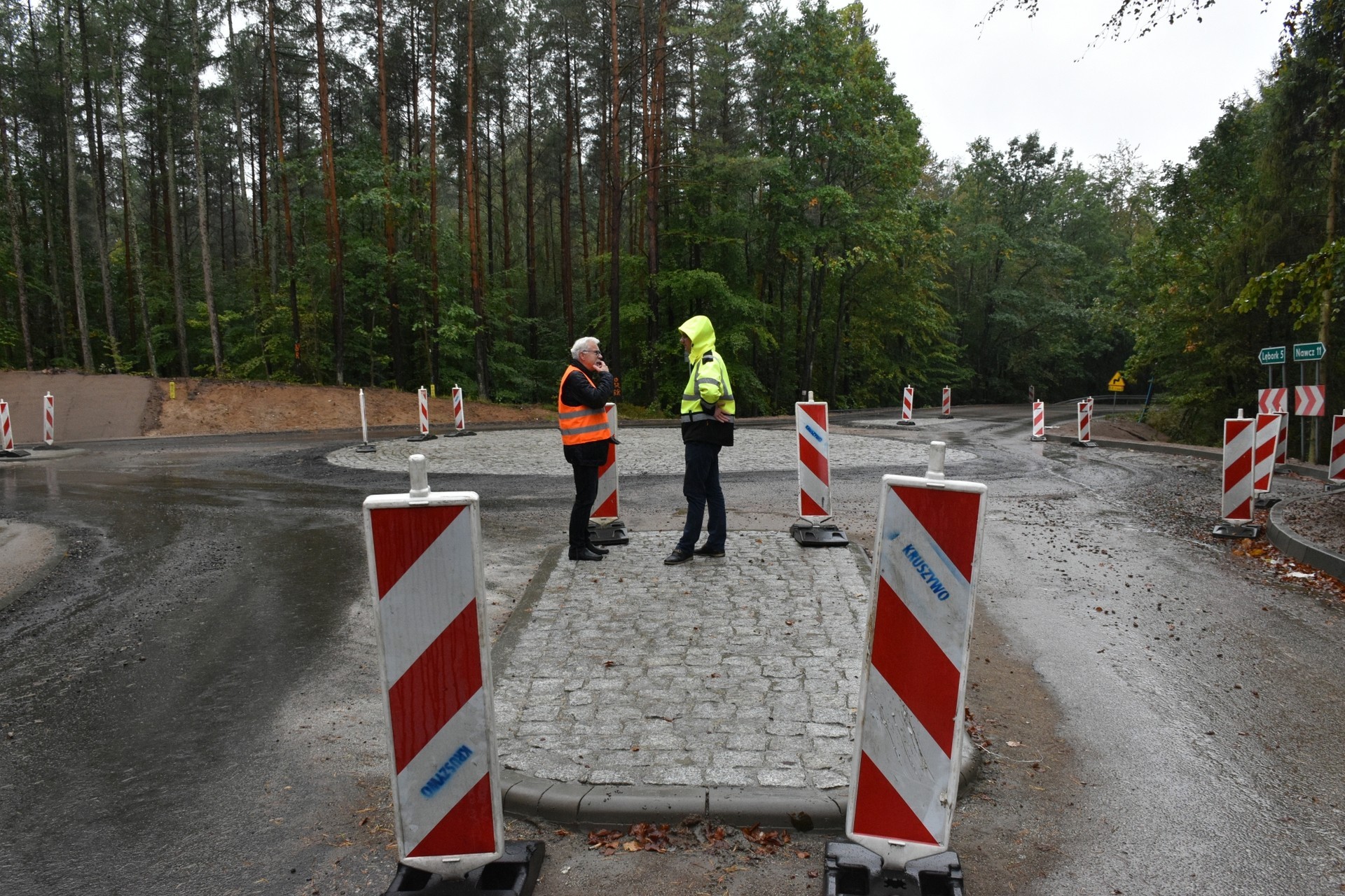 Skrzyżowanie Lębork – Popowo – Nawcz zyskało aktualnie formę ronda, co w znacznym stopniu usprawni ruch i poprawi bezpieczeństwo w tej części drogi. - Rondo ma wewnętrzny promień 7 metrów, na zewnątrz okręgu – 13 m, a więc 6 m pasa drogowego przedzielonego wysepką – mówi Adrian Wenta, dyrektor Zarządu Dróg Powiatowych w Lęborku – Dopuścimy tu warunkowe poruszanie się dużych aut ciężarowych przez centralną wyspę ronda. Chodzi o te samochody, które mogłyby mieć problem z promieniem skrętu na tym rondzie. Słowo „warunkowo” oznacza, że dotyczyć to będzie wyjątkowych sytuacji. We wszystkich innych przypadkach, będzie obowiązywał w tym miejscu oczywiście ruch okrężny.