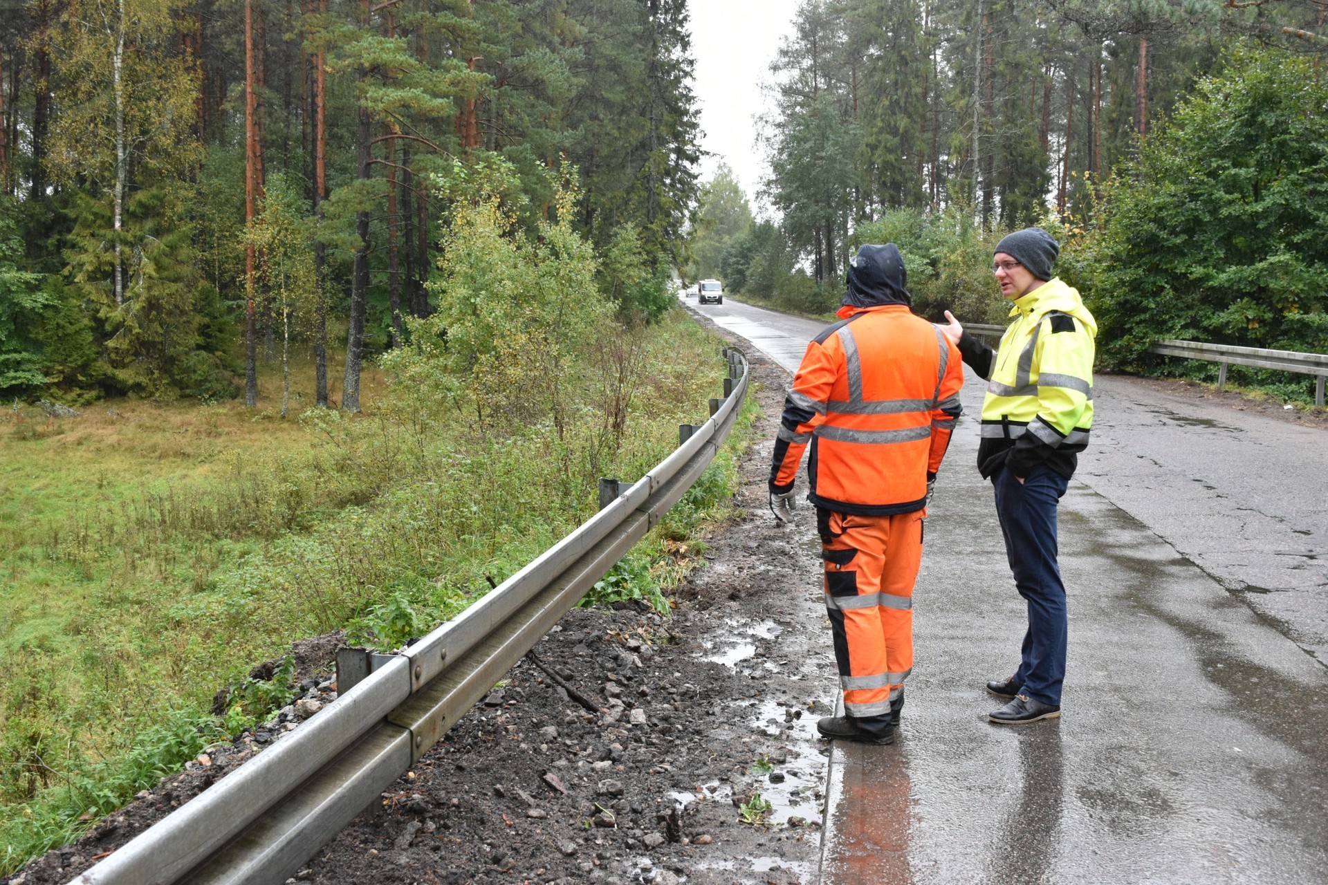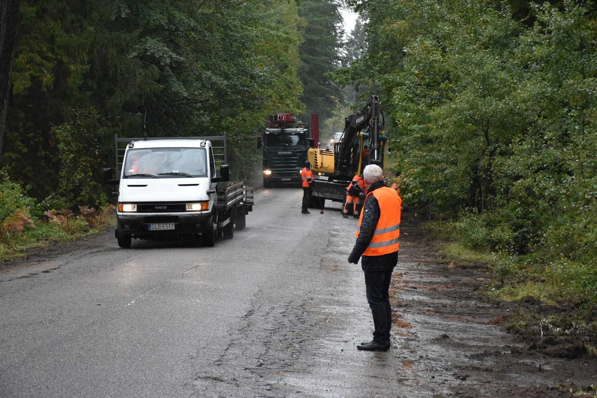 Ułatwi to również poruszanie się po drodze mniejszych aut np. z przyczepkami, ponieważ zaledwie 2-cm wysokość krawężnika wyspy centralnej skutecznie zapobiegnie uszkodzeniu pojazdu. W pozostałej części drogi trwają aktualnie prace nad modernizacją poboczy. Kierowcy muszą się jeszcze uzbroić w cierpliwość, ponieważ obowiązuje ruch wahadłowy, kierowany sygnalizacją świetlną. Jak podkreśla A. Wenta, postęp prac przebiega zgodnie z przyjętym harmonogramem inwestycji. Drogowcy narzekają jednak na warunki atmosferyczne. Padający deszcz uniemożliwia ułożenie wzmacniającej siatki wraz ze spoiwem łączącym ją z konstrukcją drogi. – Czekamy na kilka bezdeszczowych dni – mówi Leszek Pranczke, kierownik budowy, przedstawiciel generalnego wykonawcy robót – Na ten moment musimy po prostu cierpliwie czekać aż warunki pogodowe umożliwią wykonanie wzmocnienia. Takie są po prostu uwarunkowania technologiczne.