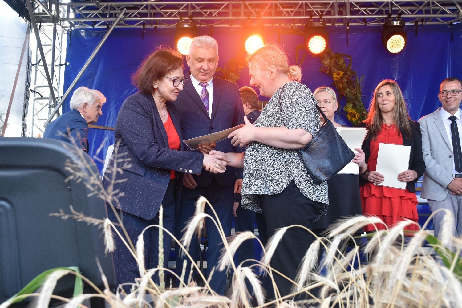 Po mszy dożynkowy korowód, prowadzony przez Orkiestrę Dętą „Ziemia Lęborska” przemaszerował na stadion KS „Leśnik”. Doskonała pogoda sprawiła, że nie tylko mieszkańcy Cewic, ale przyjezdni z różnych innych części powiatu, postanowili spędzić niedzielne popołudnie na dożynkowej zabawie. Wiele odniesień do ciężkiej pracy na roli znalazło się również w wystąpieniu Alicji Zajączkowskiej – Starosty Lęborskiego. - Ziemia rodzi, ziemia karmi, a należycie uprawiana jest żywicielką przez lata. Jest również źródłem utrzymania osób pracujących na roli – mówiła starosta Alicja Zajączkowska - Rolnikom, pracownikom przetwórstwa rolno-spożywczego oraz tym, którzy pracują w instytucjach obsługi rolnictwa, dziękuję za tegoroczne plony i ten symboliczny bochen chleba, przygotowanych przez starostów dożynek – państwa Ewelina i Michał Garscy. Mam nadzieję, że tego chleba nikomu nie zabraknie, a w wymiarze symbolicznym stanie się on spoiwem łączącym nas wszystkich wokół wspólnych i istotnych spraw dla naszej społeczności.