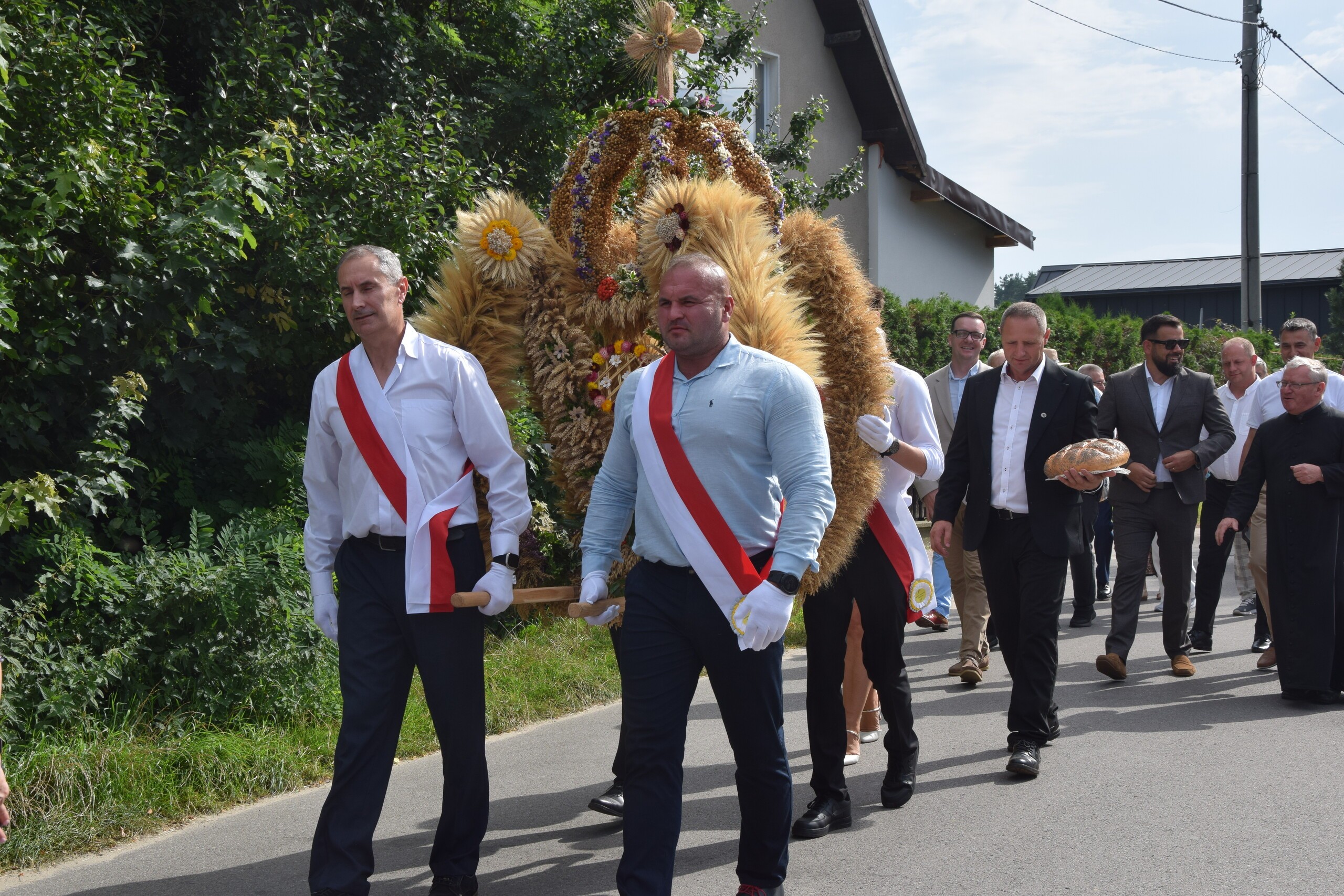 Za rolniczy trud podziękowania złożyli przedstawiciele Powiatu Lęborskiego: Tomasz Litwin – Starosta Lęborski, wicestarosta Adrian Wenta i Mirosław Tandek – przewodniczący Rady Powiatu Lęborskiego.
