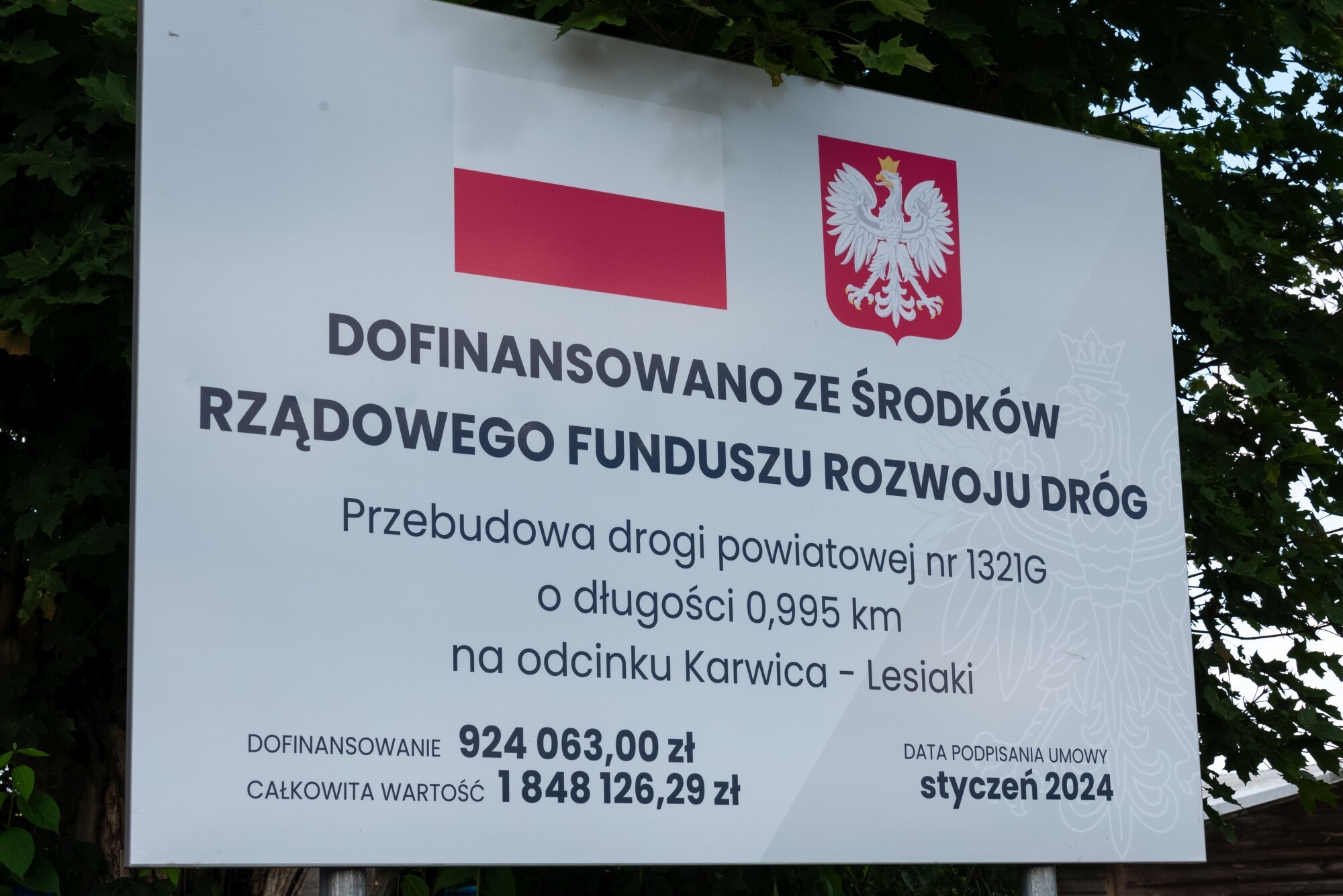 Przebudowa objęła drogę powiatową nr 1321G na odcinku 0,995 km Karwica-Lesiaki.