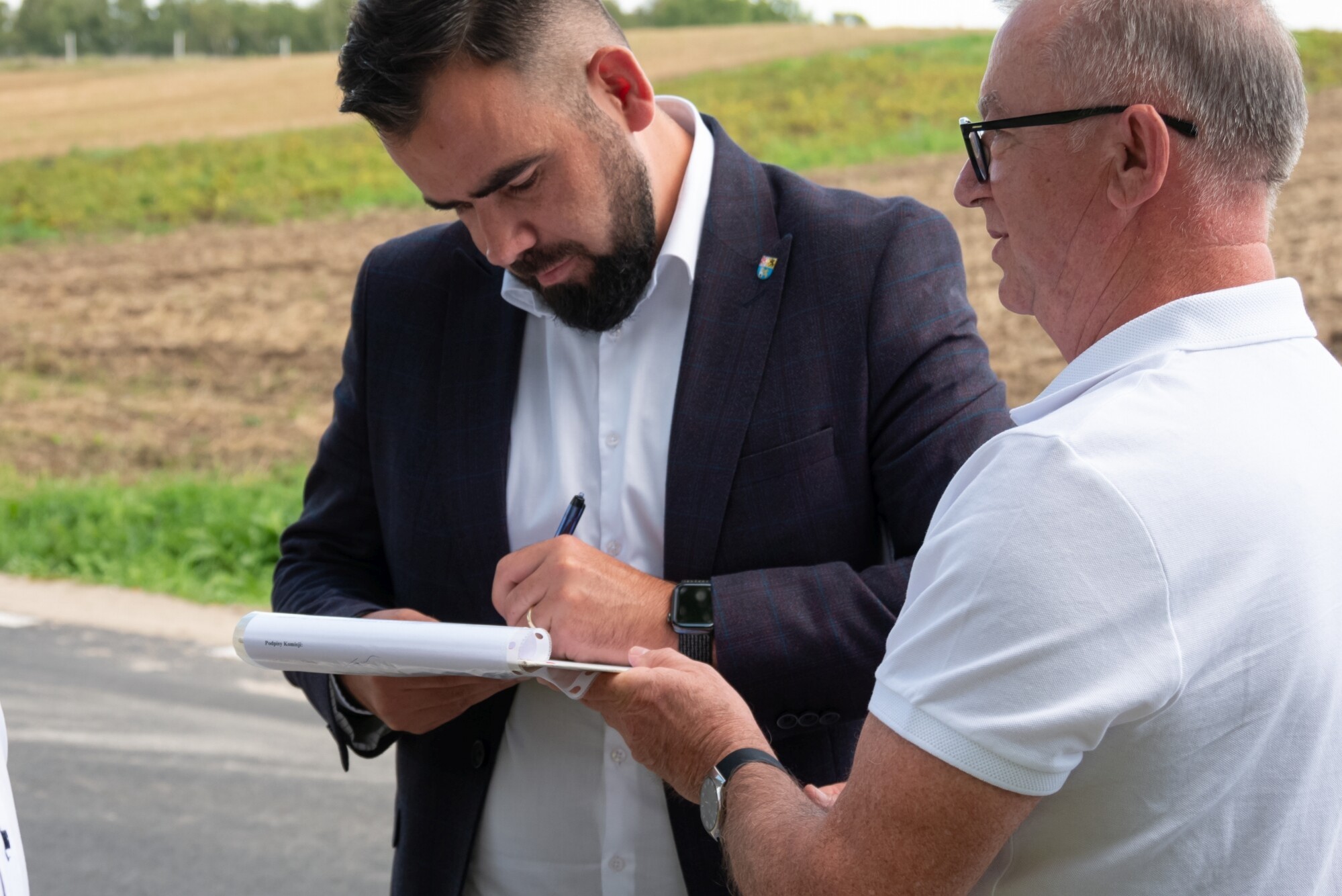 W przekazaniu przebudowanej drogi uczestniczył Starosta Lęborski Tomasz Litwin, Wicestarosta Lęborski Adrian Wenta, wójt Gminy Cewice Jerzy Bańka, reprezentujący Zarząd Dróg Powiatowych Mariusz Barański oraz przedstawiciele wykonawcy – firmy Produkcja i Eksploatacja Kruszywa Formella s.c. z Niepoczołowic.