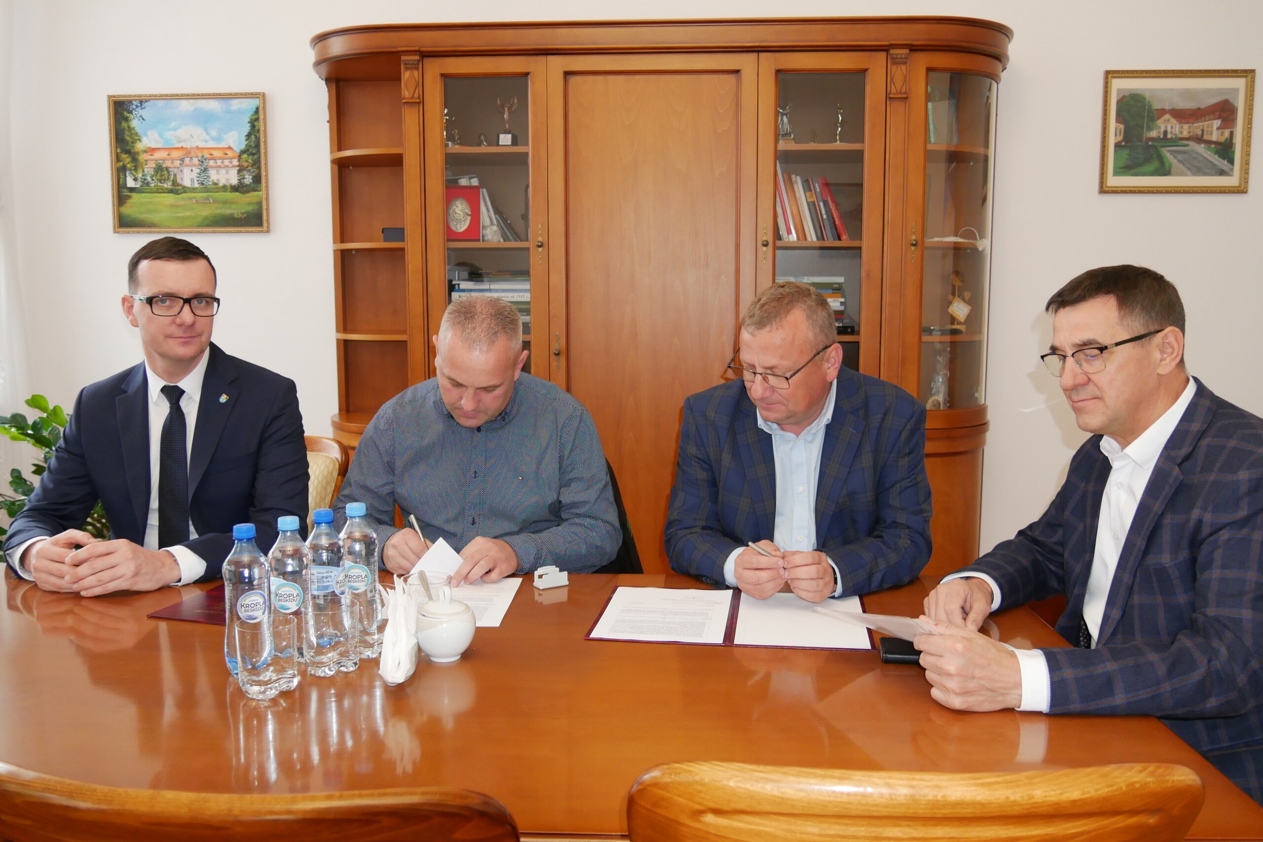 W podpisaniu umowy na realizację inwestycji uczestniczył Mariusz Formella - przedstawiciel wykonawcy - firmy Produkcja i Eksploatacja Kruszywa Formella s.c. z Niepoczołowic, wicestarosta Adrian Wenta, przewodniczący Rady Powiatu Mirosław Tandek i dyrektor Zarządu Dróg Powiatowych Dariusz Raczkowski.
