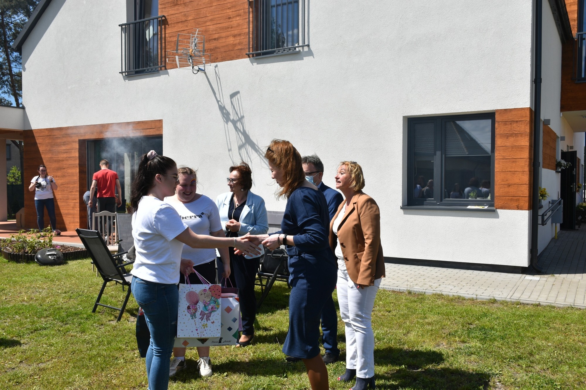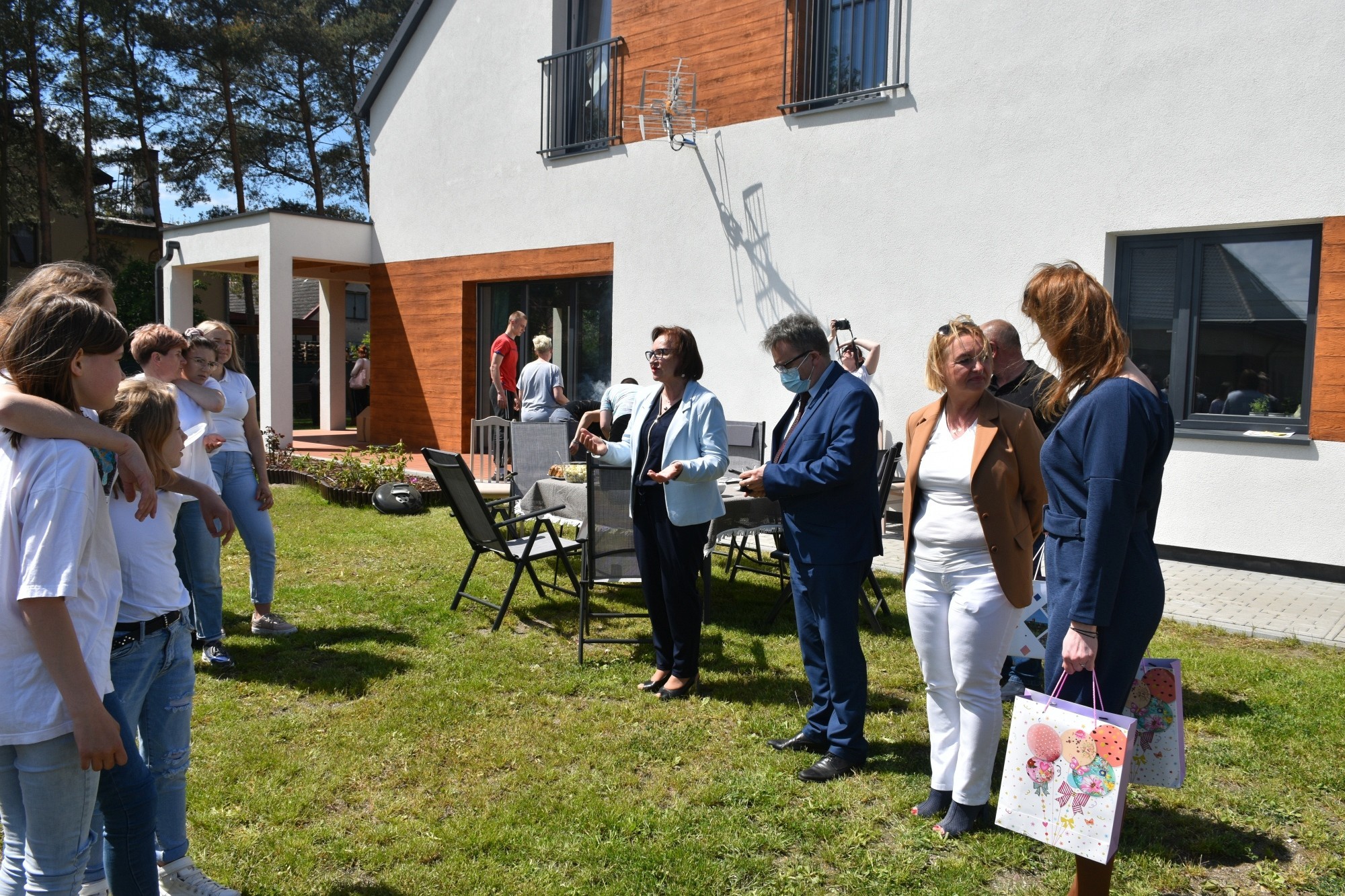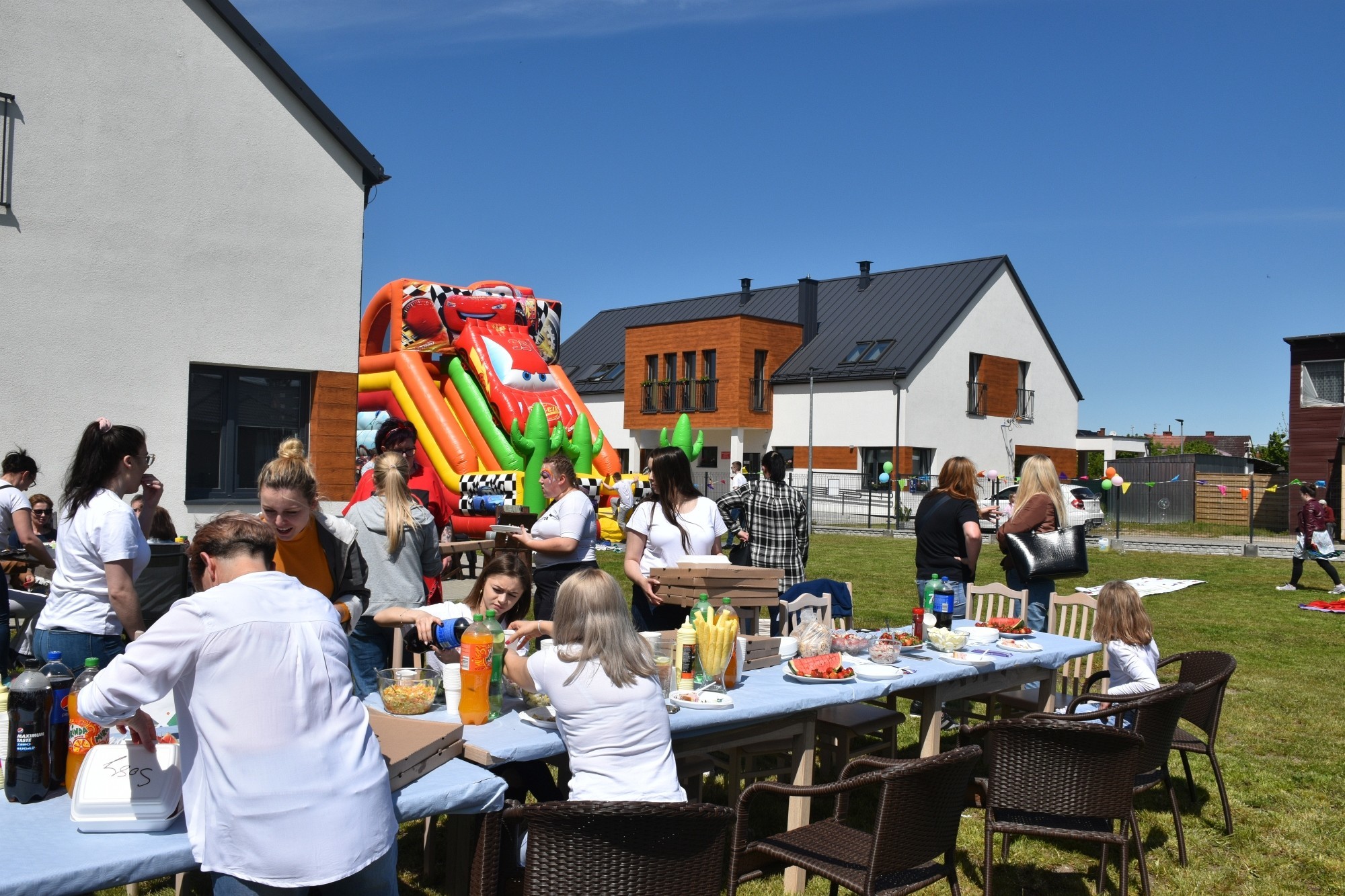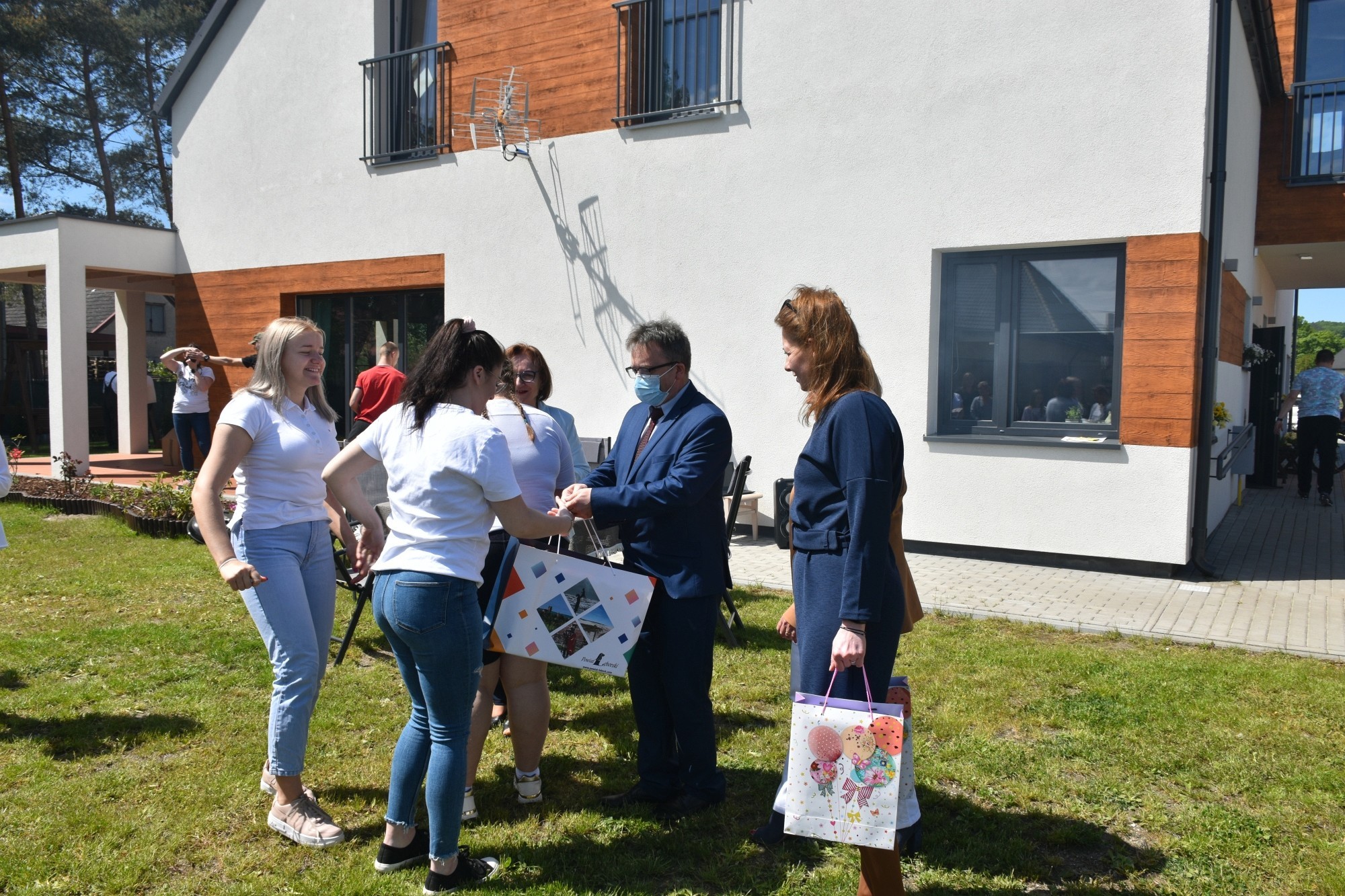 Po wizycie w szpitalu starostowie odwiedzili podopiecznych Domów dla Dzieci „Siedlisko” i „Zakątek” w Nowej Wsi Lęborskiej. Towarzyszyła im Bogusława Lis-Zielińska, kierownik Powiatowego Centrum Pomocy Rodzinie. Tam świętowanie odbywało się w atmosferze prawdziwego dziecięcego festynu. Dmuchańce do zabawy, wszechobecne baloniki i bańki mydlane, gry i zabawy. Tych, którzy nieco z sił opadli po zabawie wspomagały dania z grilla, pizza i mnóstwo słodyczy. Nad całością zabawy czuwała Brygida Polaszek, dyrektor Placówki Opiekuńczo-Wychowawczej.