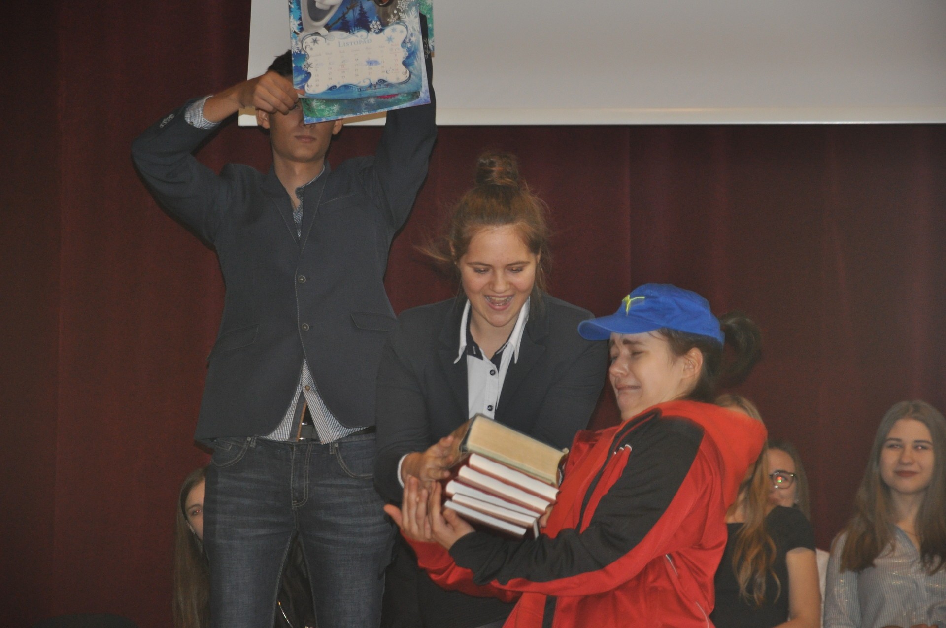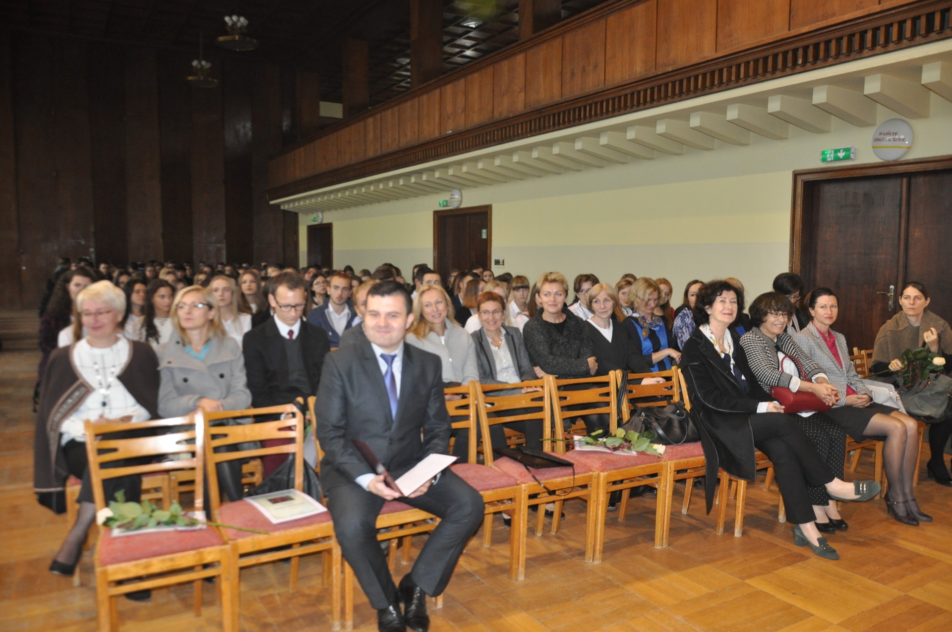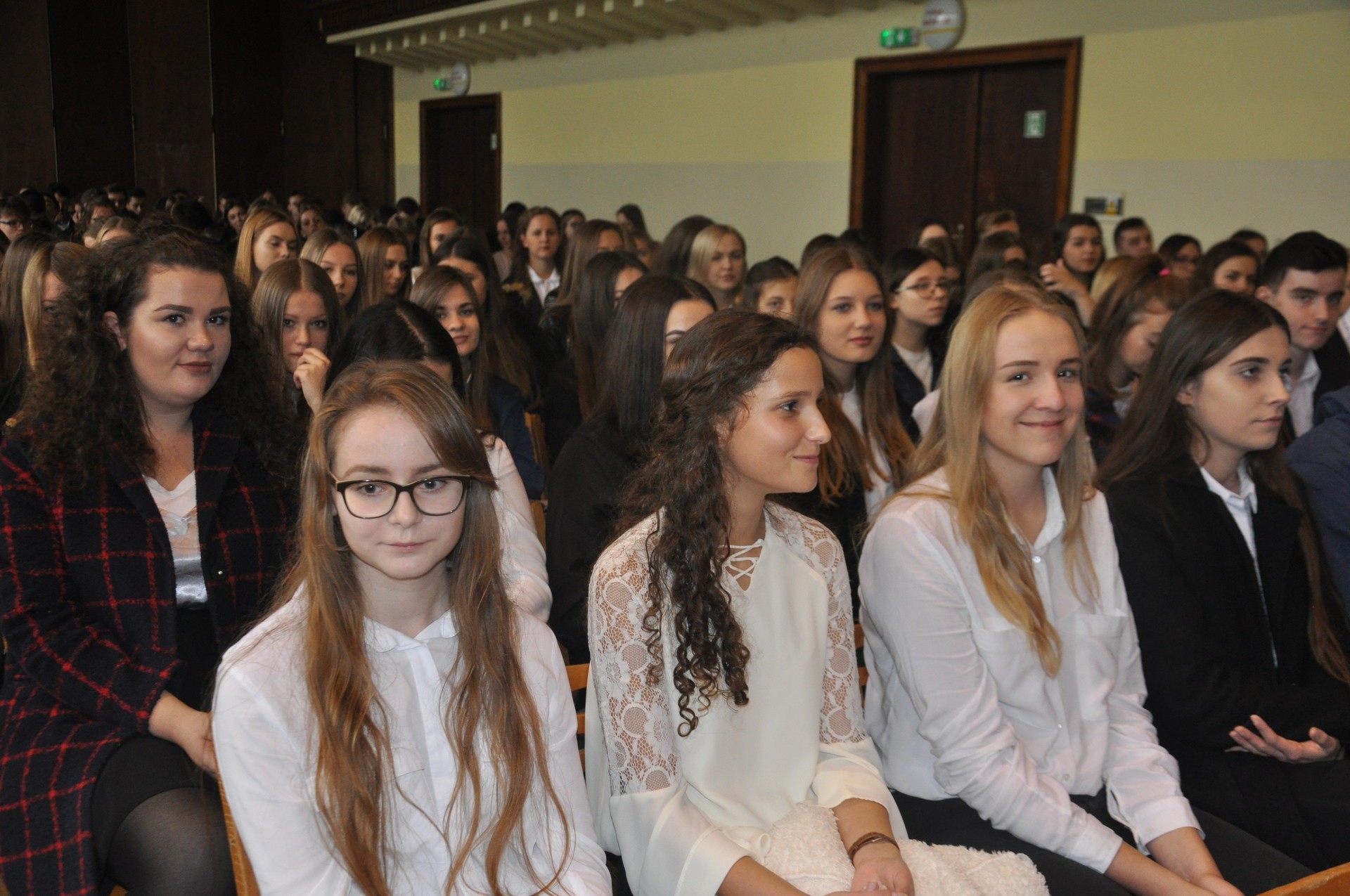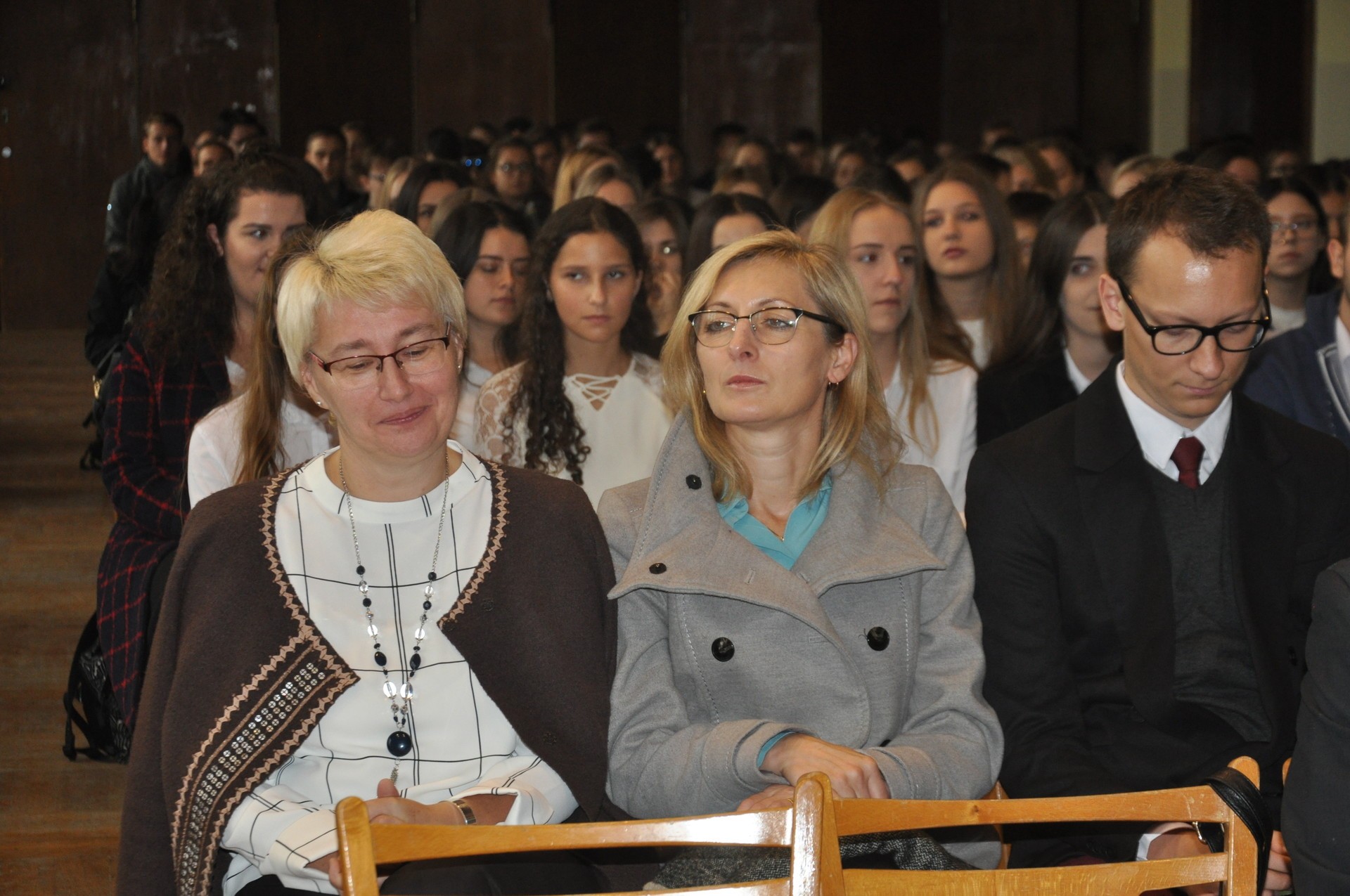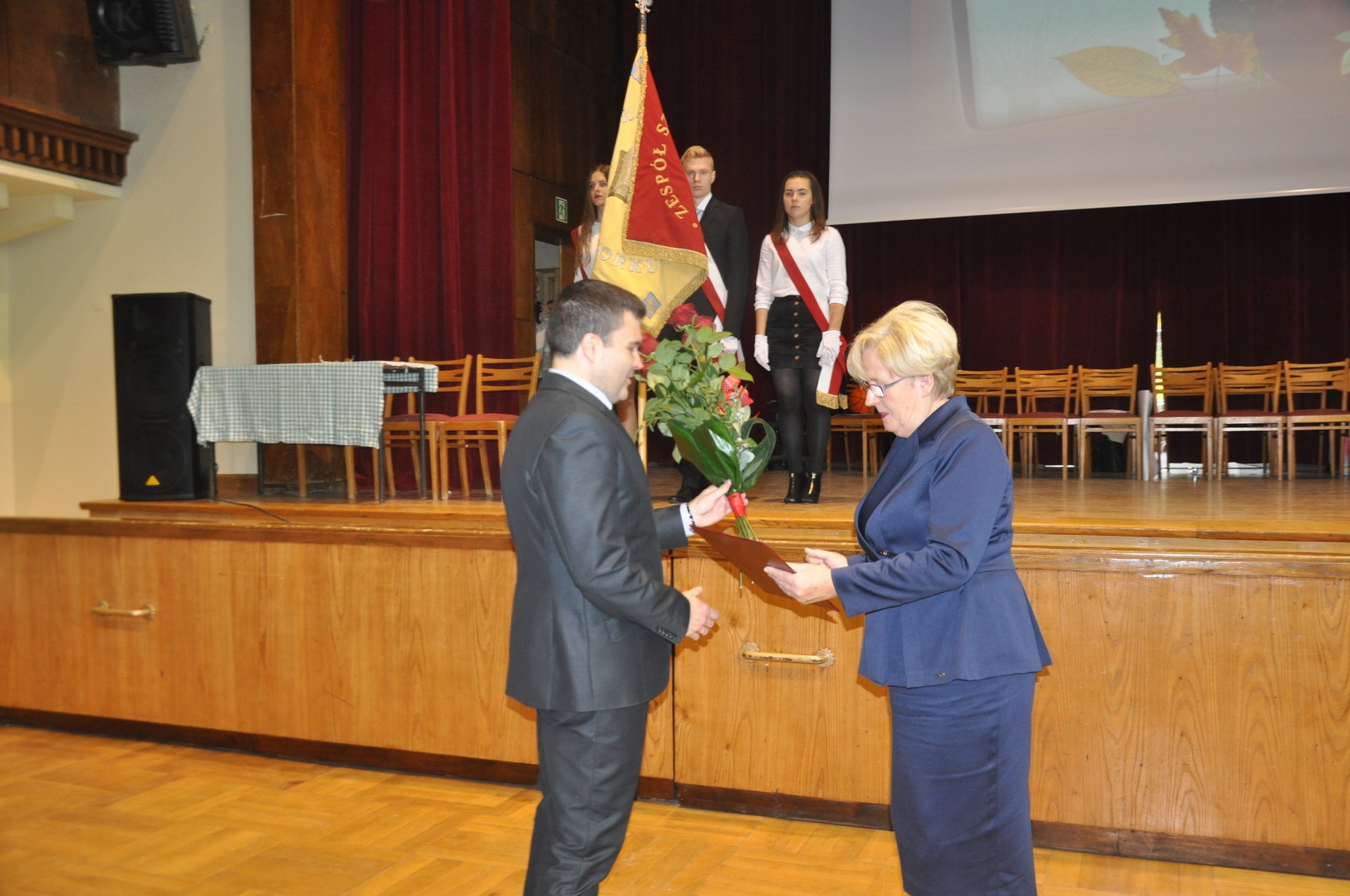 Po przemówieniu i życzeniach skierowanych do nauczycieli i pracowników oświaty, starosta wraz z wicedyrektorem wręczyli nauczycielom nagrody dyrektora. W kolejnej części uroczystości klasa IId, pod opieką pani Marii Majko, pana Karola Płotki oraz pani Agnieszki Kalicińskiej, zaprezentowała program satyryczno-wokalny. Na scenie odbył się teleturniej między uczniami i nauczycielami uwieńczony piosenką dedykowaną wszystkim pracownikom oświaty. Pod koniec uroczystości odbyło się rozdanie medali sportowych oraz nagród za konkurs recytatorski.