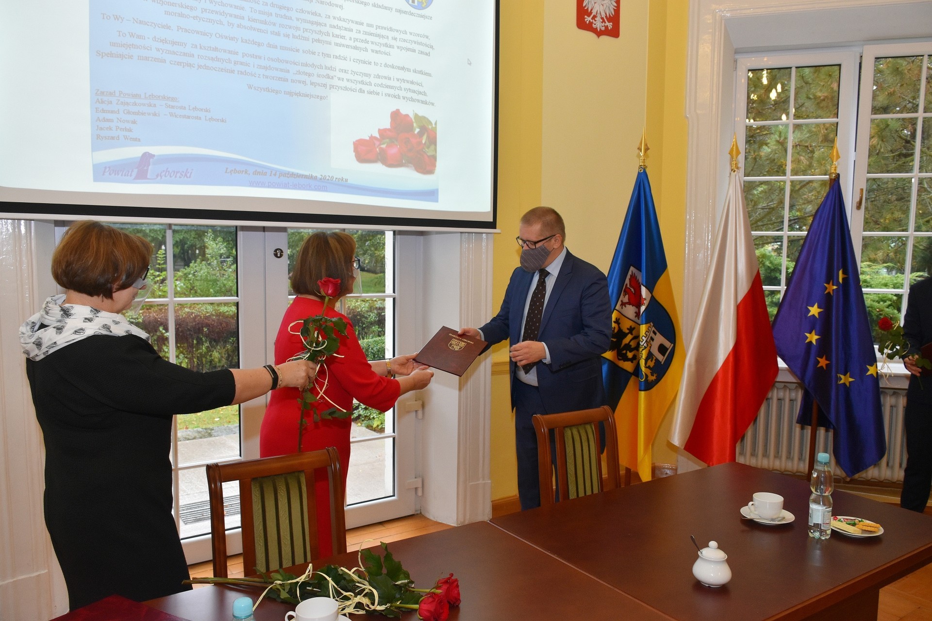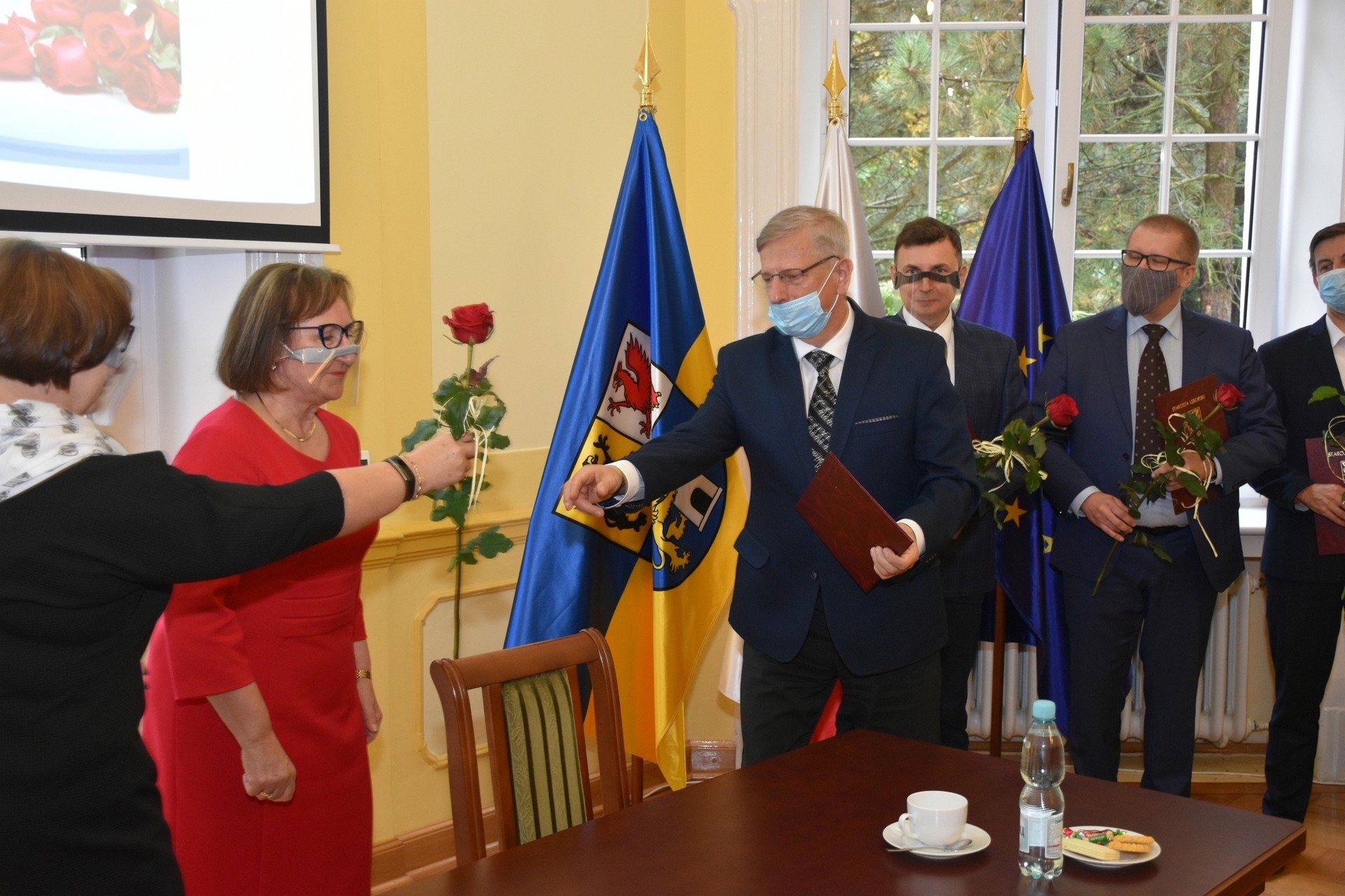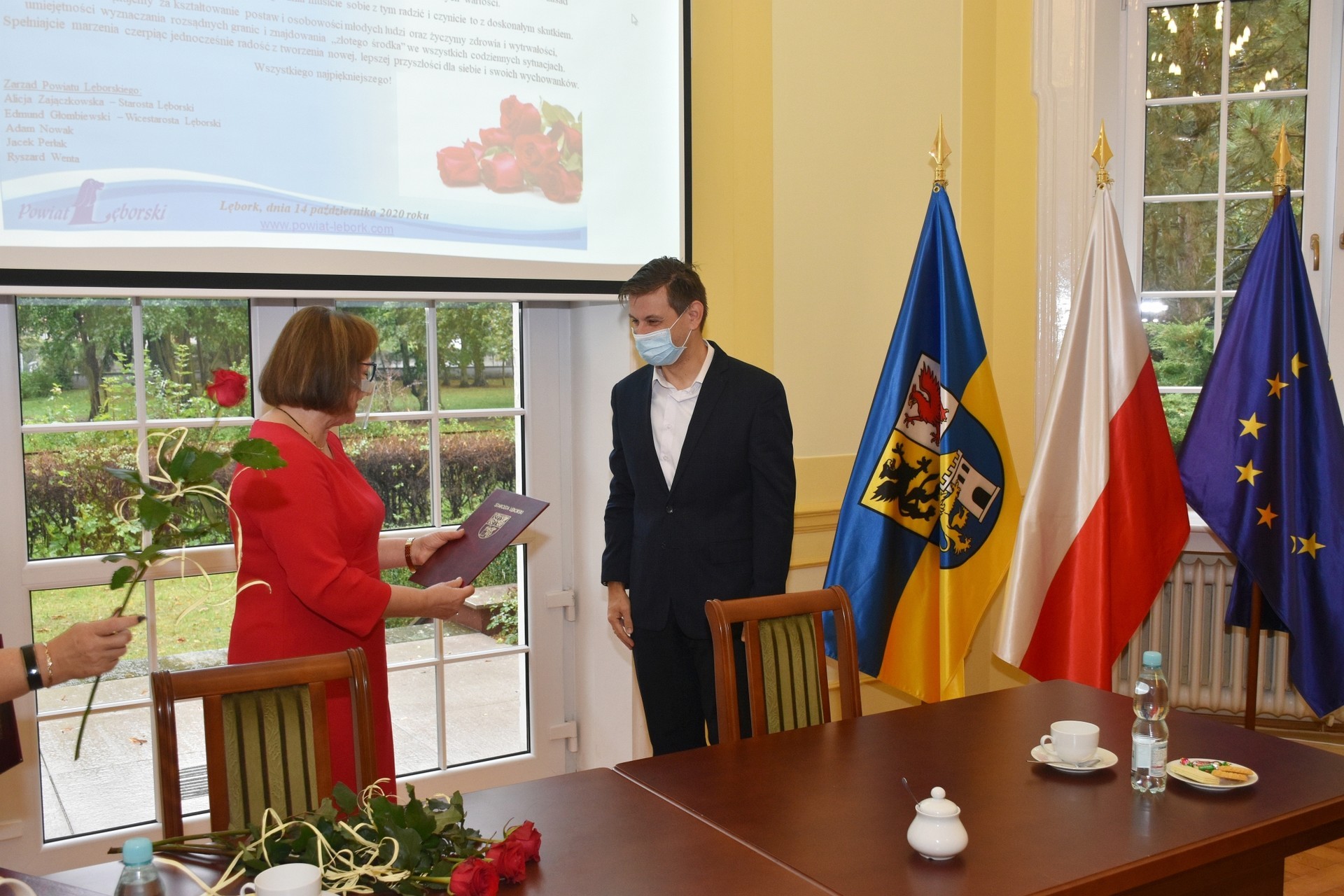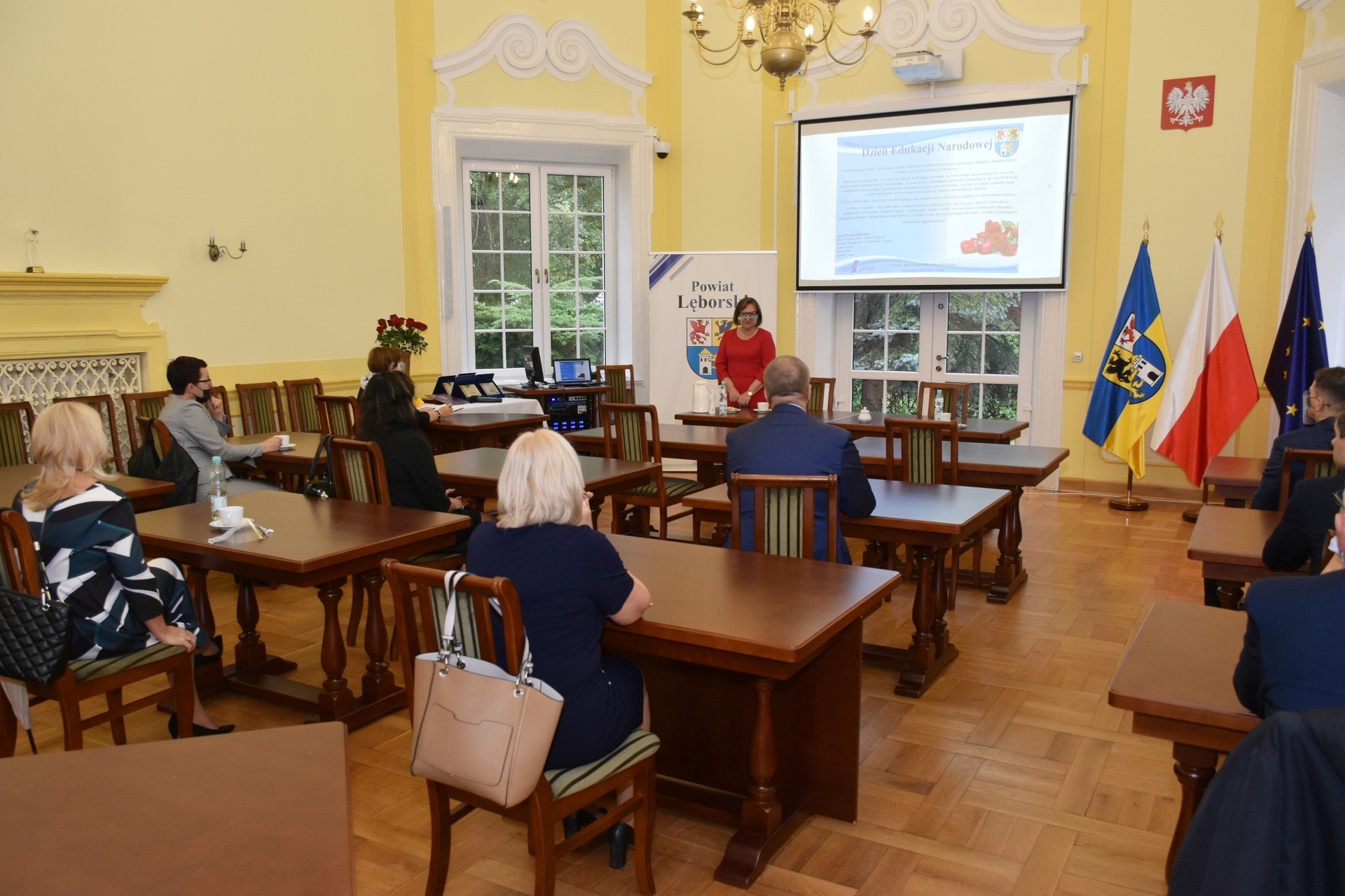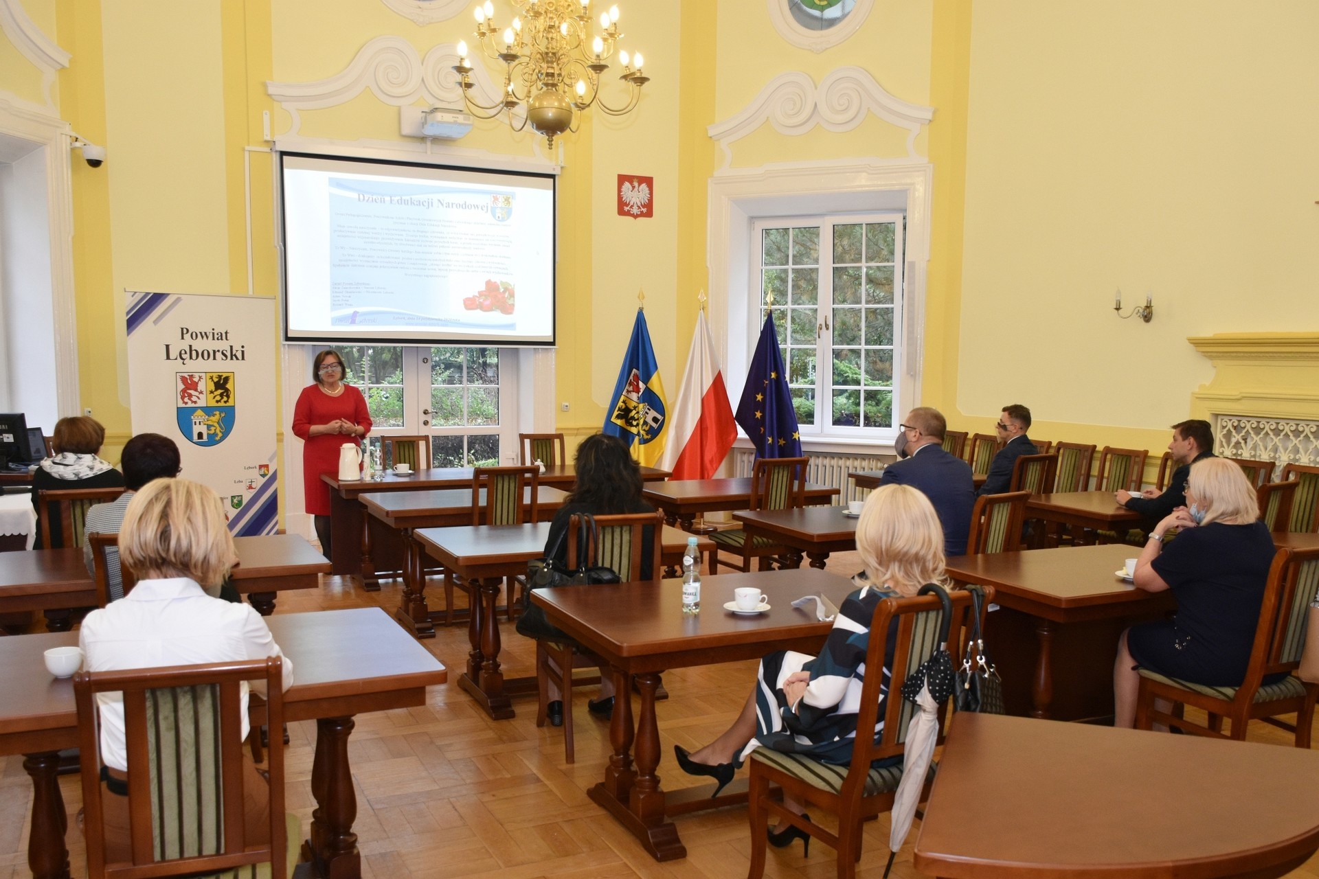 Z zachowaniem reżimów sanitarnych, wymaganych w związku z panującą pandemią, w bardzo ograniczonym liczebnie gronie starosta przyjęła dyrektorów w sali obrad Rady Powiatu Lęborskiego. Dyrektorom towarzyszyli rzemieślnicy, którzy również pełnią ważną rolę w kształceniu zawodowym młodzieży z terenu powiatu, stanowiąc wsparcie dla szkolnictwa zawodowego oraz posiadających, jako członkowie Powiatowego Cechu Rzemiosła i Przedsiębiorczości, ogromny wkład w rozwój rzemiosła na terenie powiatu.