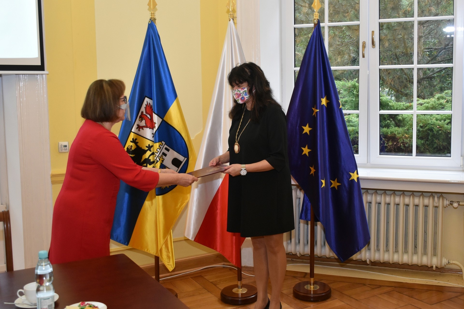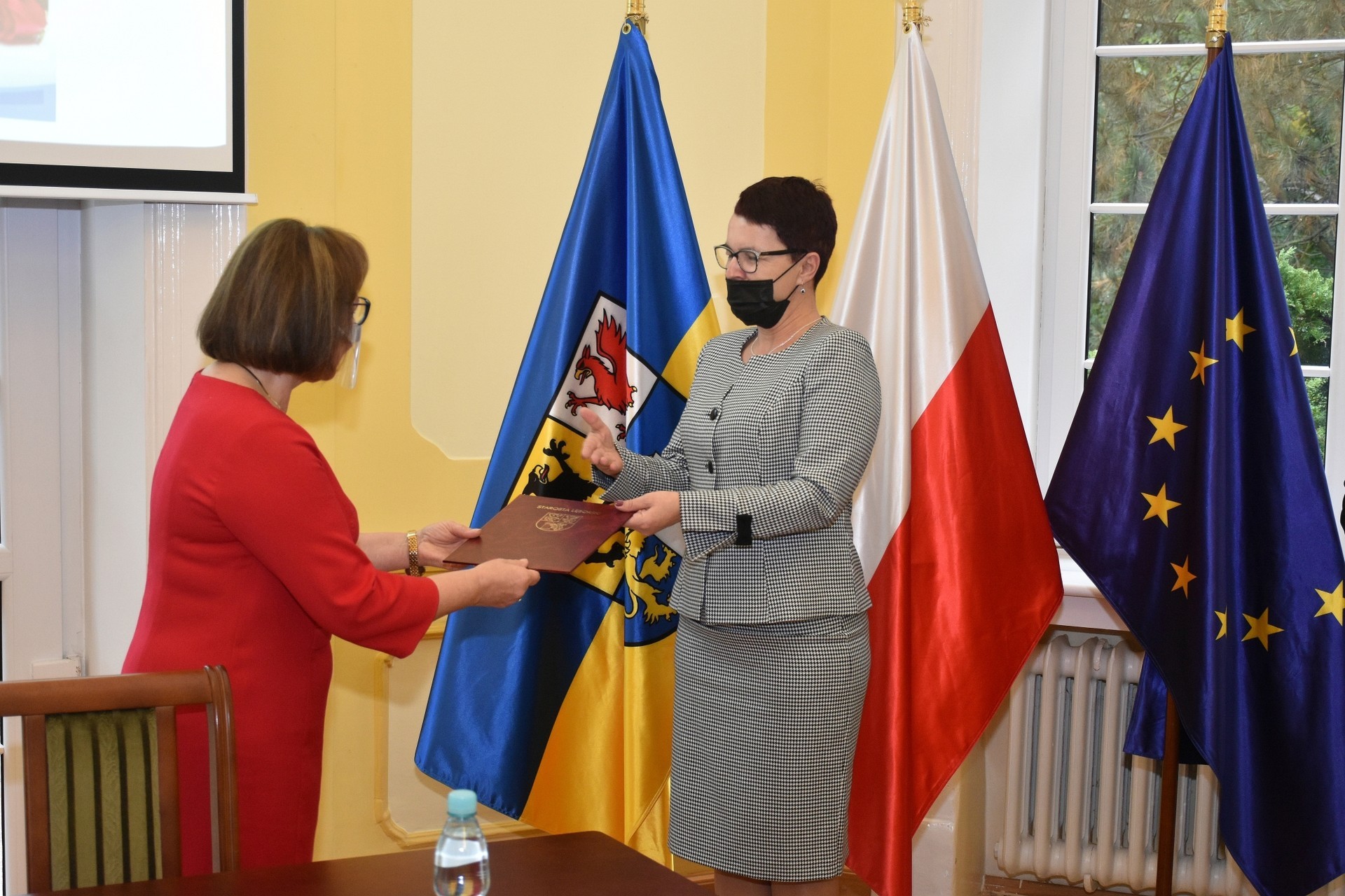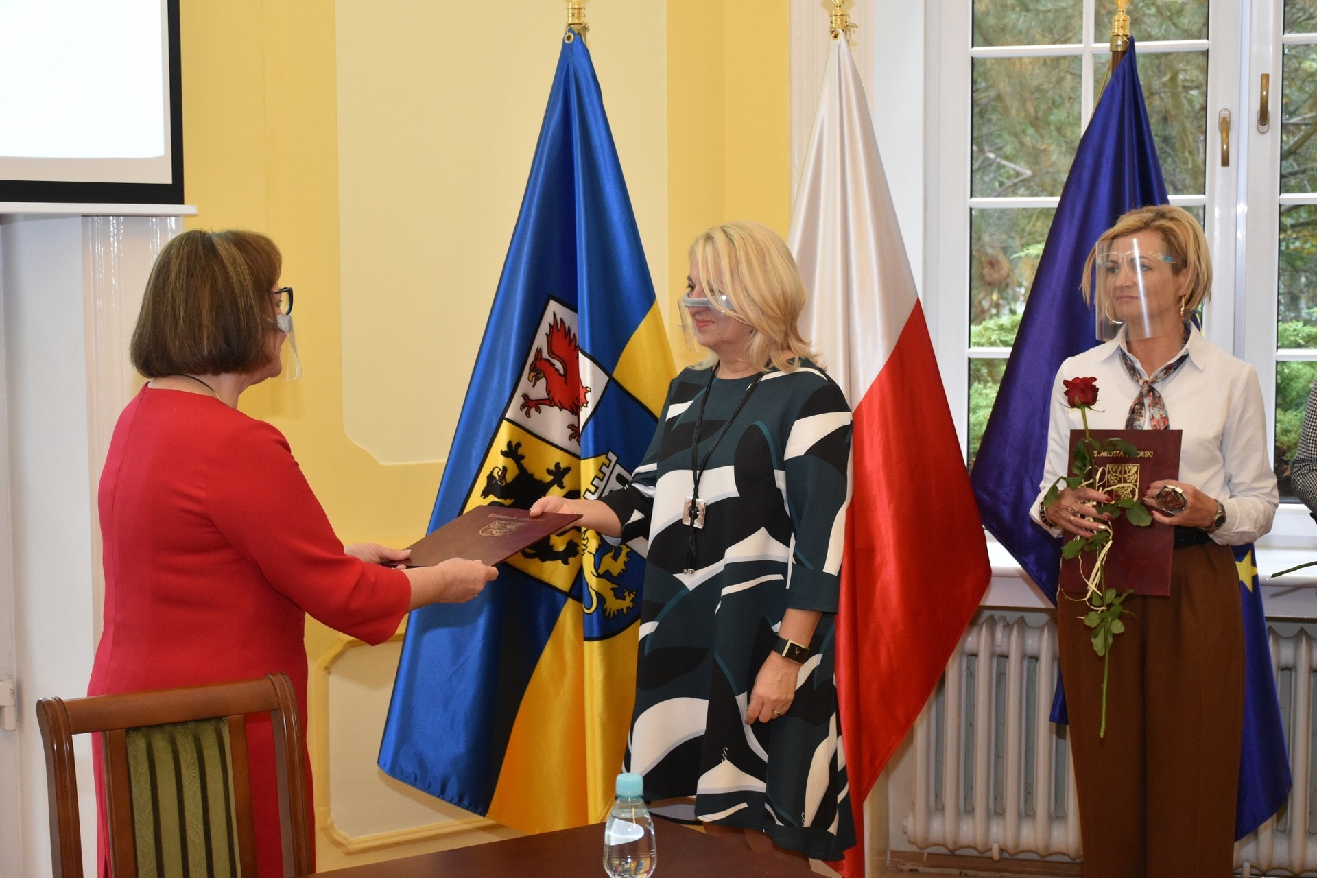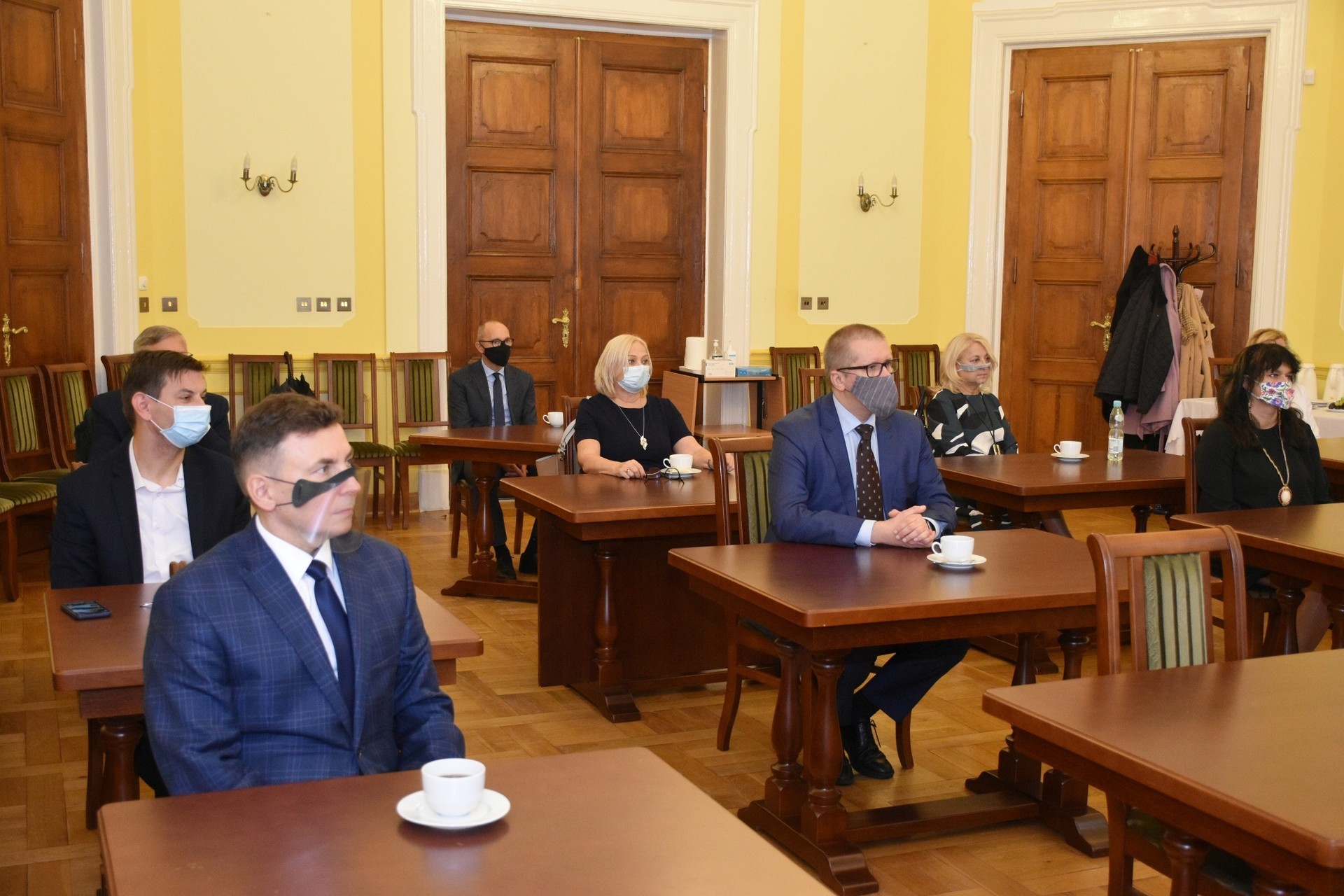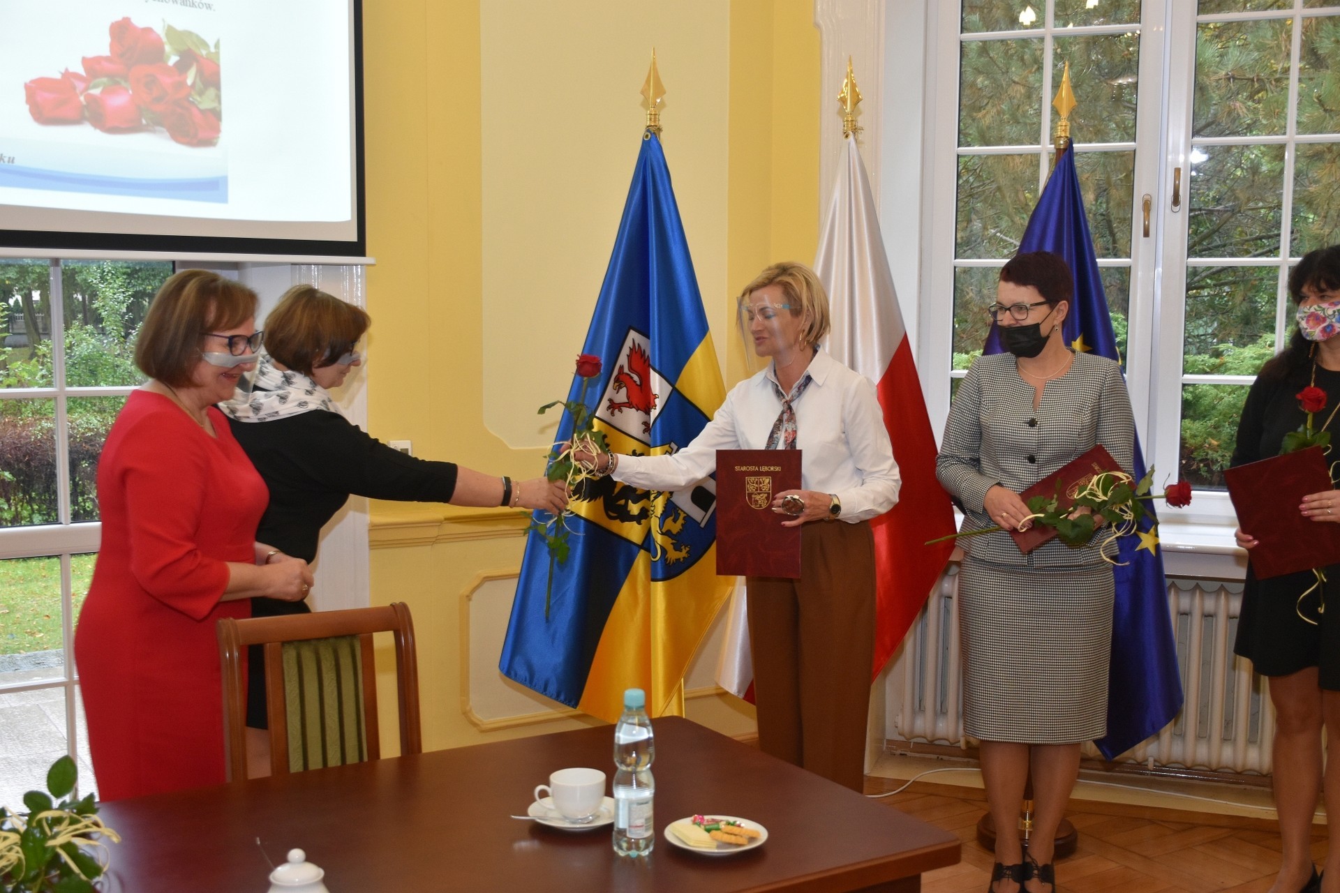 Z zachowaniem reżimów sanitarnych, wymaganych w związku z panującą pandemią, w bardzo ograniczonym liczebnie gronie starosta przyjęła dyrektorów w sali obrad Rady Powiatu Lęborskiego. Dyrektorom towarzyszyli rzemieślnicy, którzy również pełnią ważną rolę w kształceniu zawodowym młodzieży z terenu powiatu, stanowiąc wsparcie dla szkolnictwa zawodowego oraz posiadających, jako członkowie Powiatowego Cechu Rzemiosła i Przedsiębiorczości, ogromny wkład w rozwój rzemiosła na terenie powiatu.
