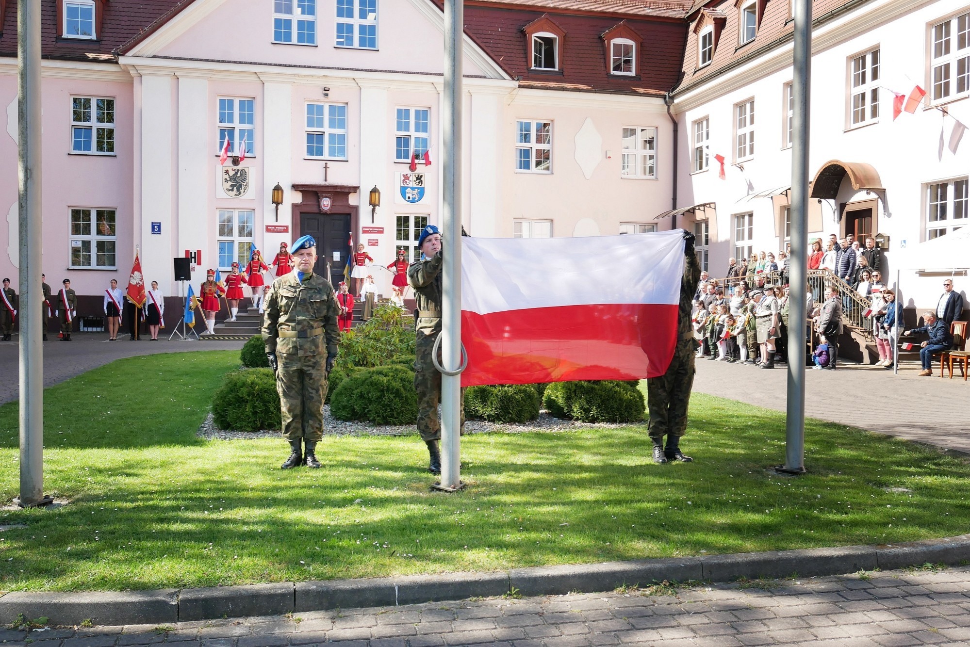 - Narodowe barwy to symbol jedności Polaków – świadomości korzeni polskości, historii i wartości wyznawanych przez naród od jego zarania – mówił Edmund Głombiewski, Wicestarosta Lęborski – podczas uroczystości Dnia Flagi przed lęborskim starostwem - Bez względu na czas, miejsce i okoliczności historyczne, polska flaga, polskie barwy narodowe, budziły zawsze otuchę, wiarę w rozwój i umacnianie się Polski jako niepodległego państwa.