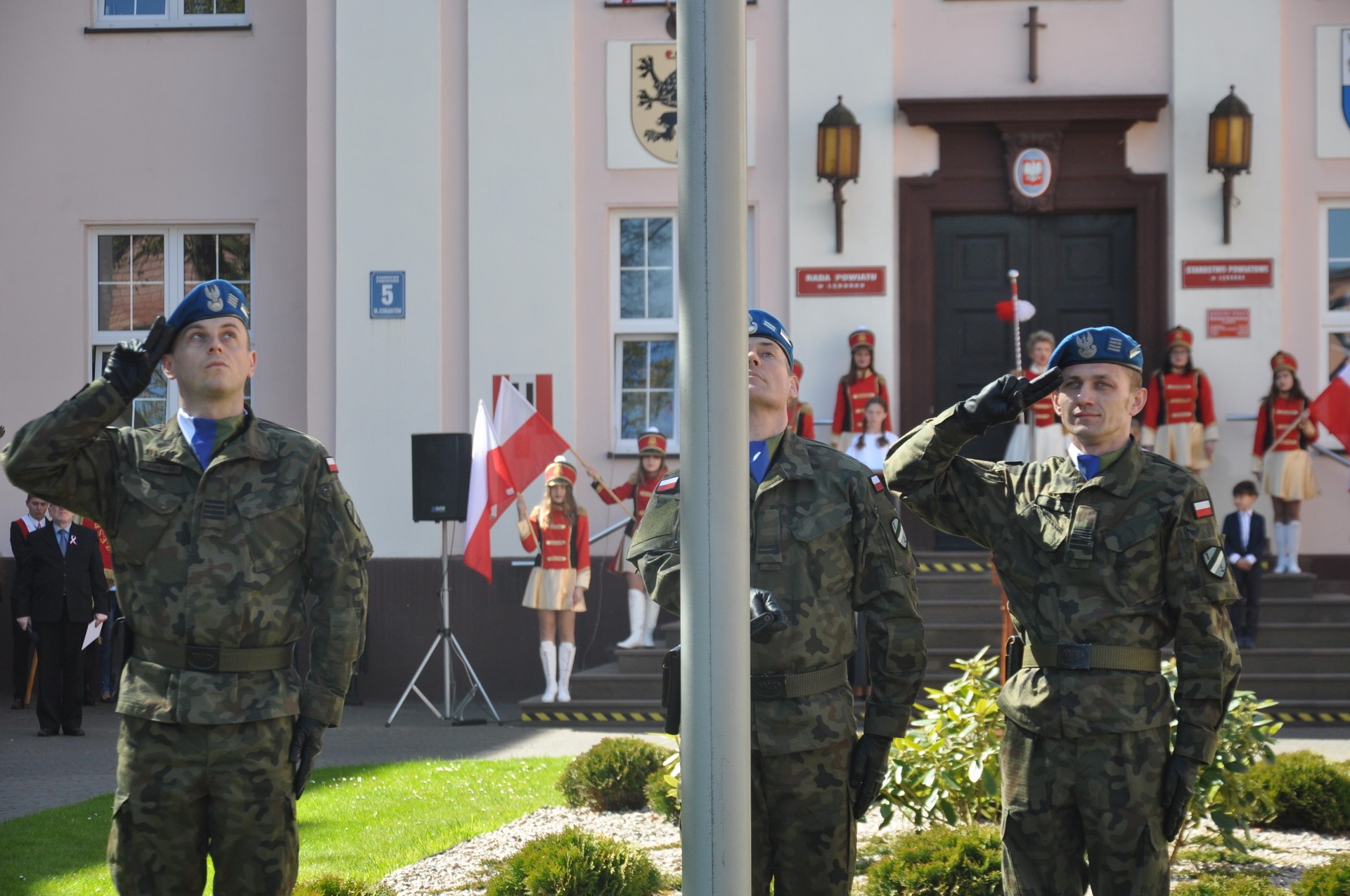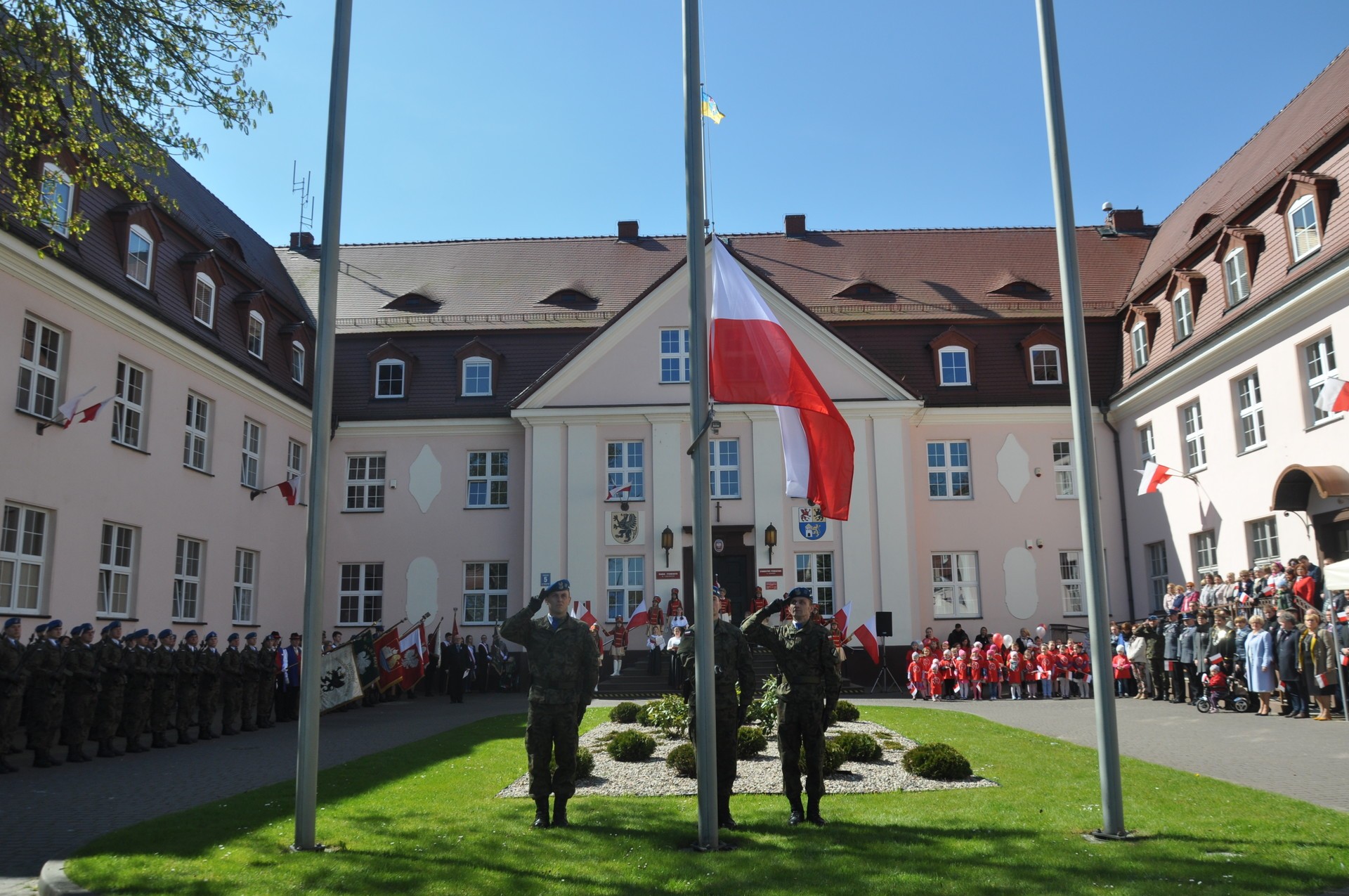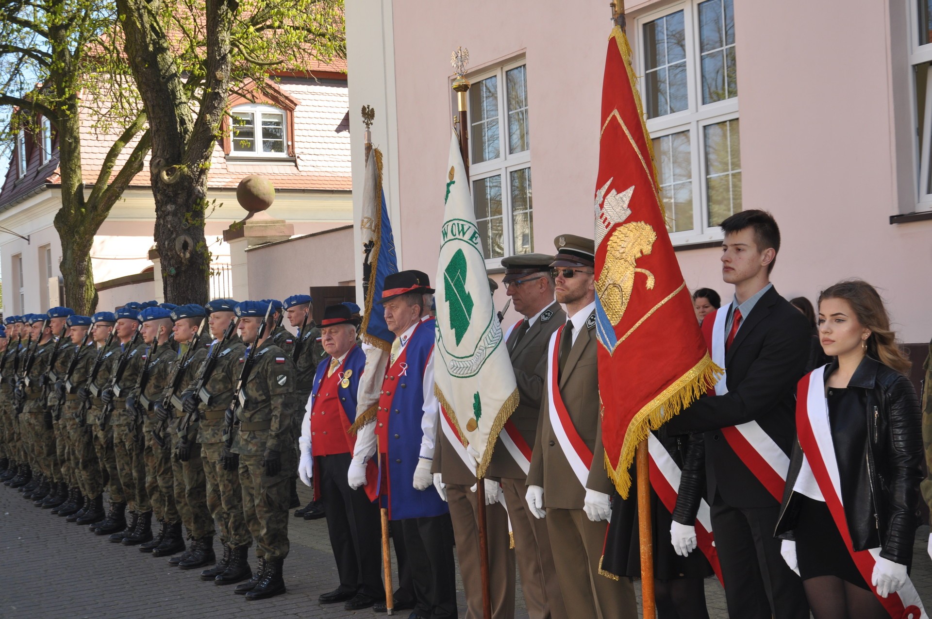 W dniu dzisiejszym uroczystość rozpoczął podniesieniem Flagi Państwowej poczet flagowy 1 Batalionu |Zmechanizowanego w Lęborku. Następnie, Pani Teresa Ossowska – Szara, Starosta Lęborski, w krótkim wystąpieniu przybliżyła wszystkim obecnym znaczenie kolorystyki i symbolu flagi, jako znaku suwerenności narodowej.