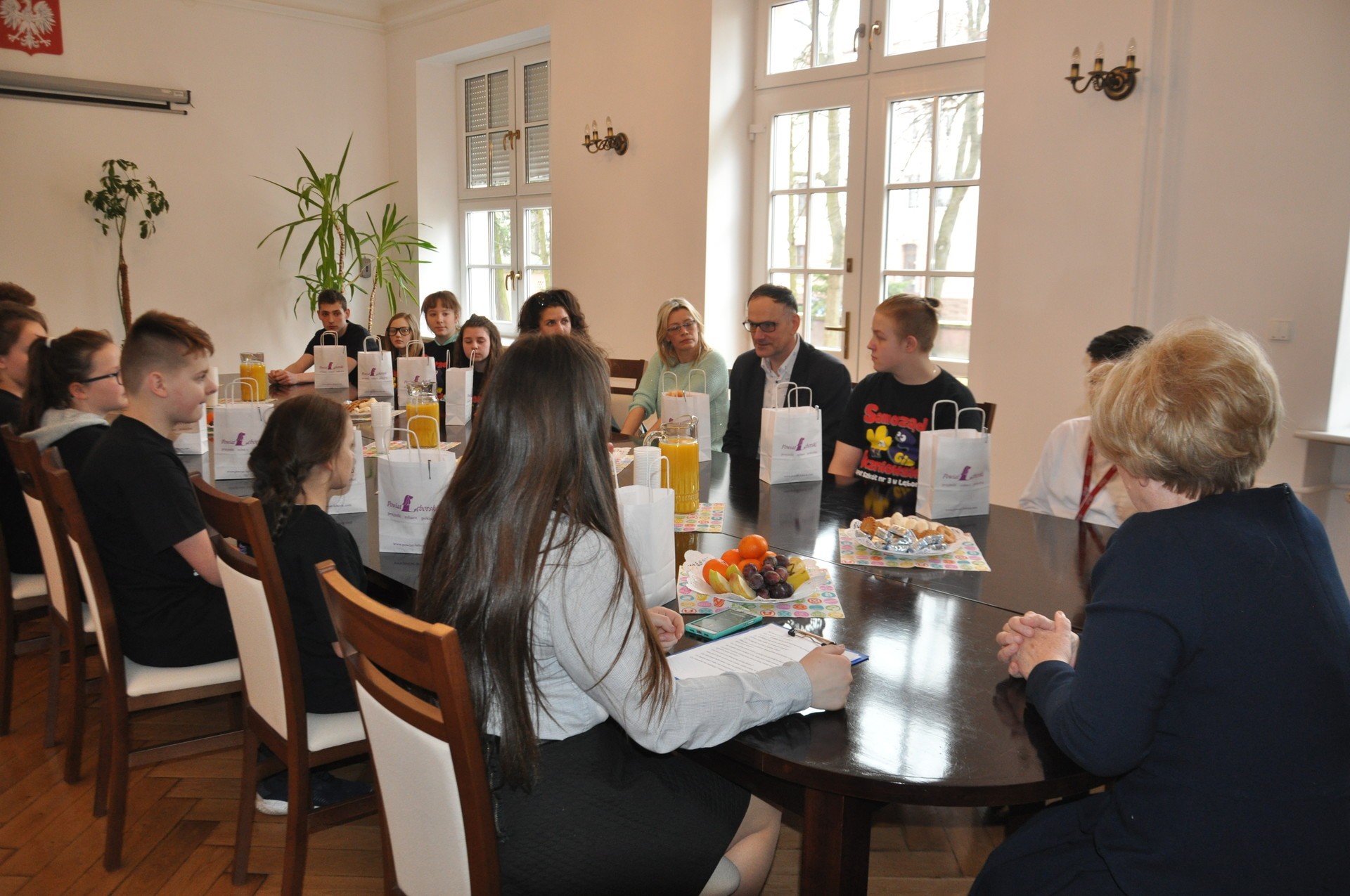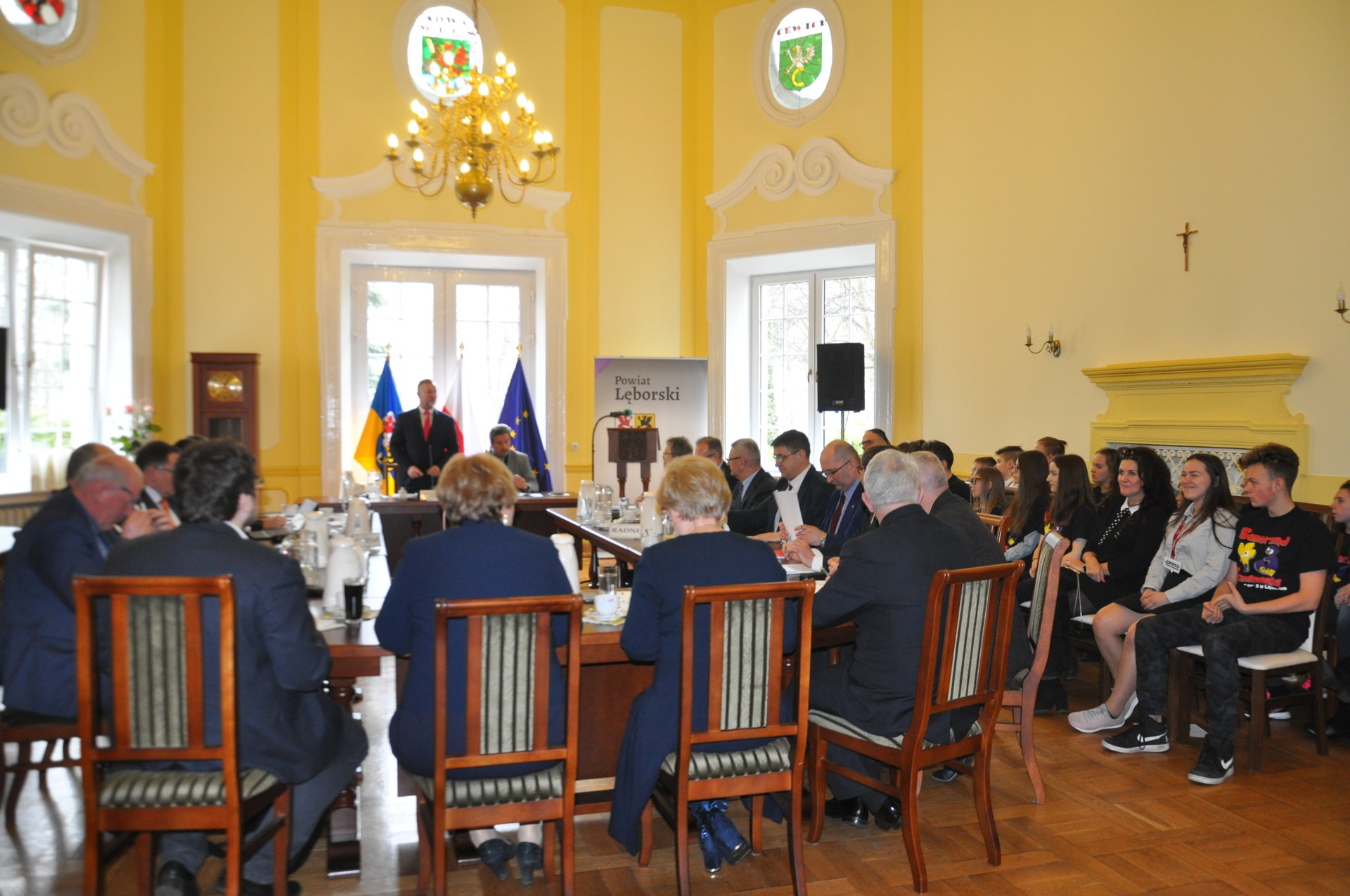 Gości osobiście oprowadzał Waldemar Walkusz, Przewodniczący Rady Powiatu Lęborskiego. Młodzież mogła obejrzeć miejsca, do których zwykle przypadkowo odwiedzające starostwo osoby, nie mają dostępu, a więc m.in. biuro Rady Powiatu Lęborskiego, pomieszczenia w których pracują przewodniczący i wiceprzewodniczący, gdzie odbywają się robocze spotkania komisji Rady, a także gabinet starosty. Na zakończenie „zwiedzania”, młodzi ludzie mieli możliwość uczestniczenia w pierwszej części sesji Rady Powiatu Lęborskiego. Wizyty w starostwie, a także w innych budynkach urzędów i organów lokalnego samorządu stanowią swoistą lekcję wychowania obywatelskiego na żywo. Wiedza przyswajana poza tradycyjną szkolną ławą trafia do głów w szczególnie trwały sposób, a właśnie wiedza dotycząca zakresu kompetencji, sposobów funkcjonowania i trybu działalności poszczególnych jednostek samorządu terytorialnego na pewno będzie przydatna w procesie budowania społeczeństwa obywatelskiego.