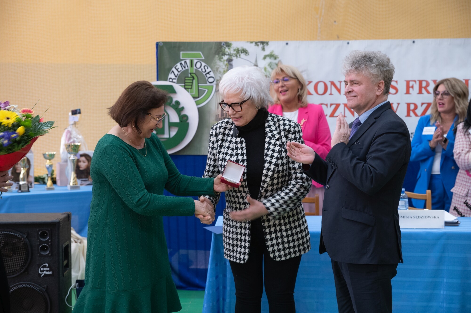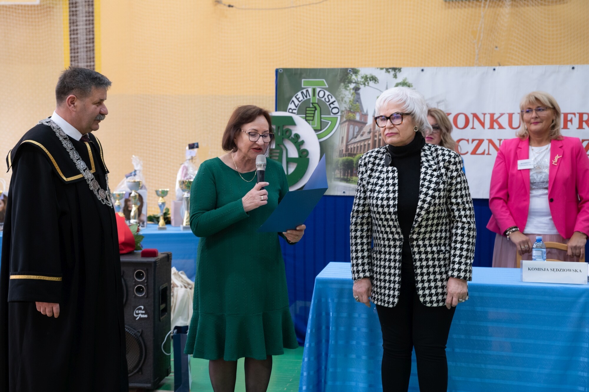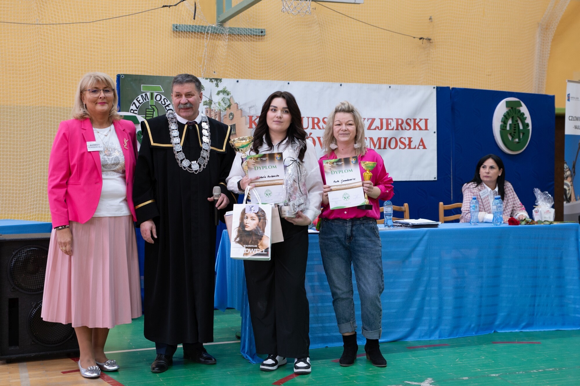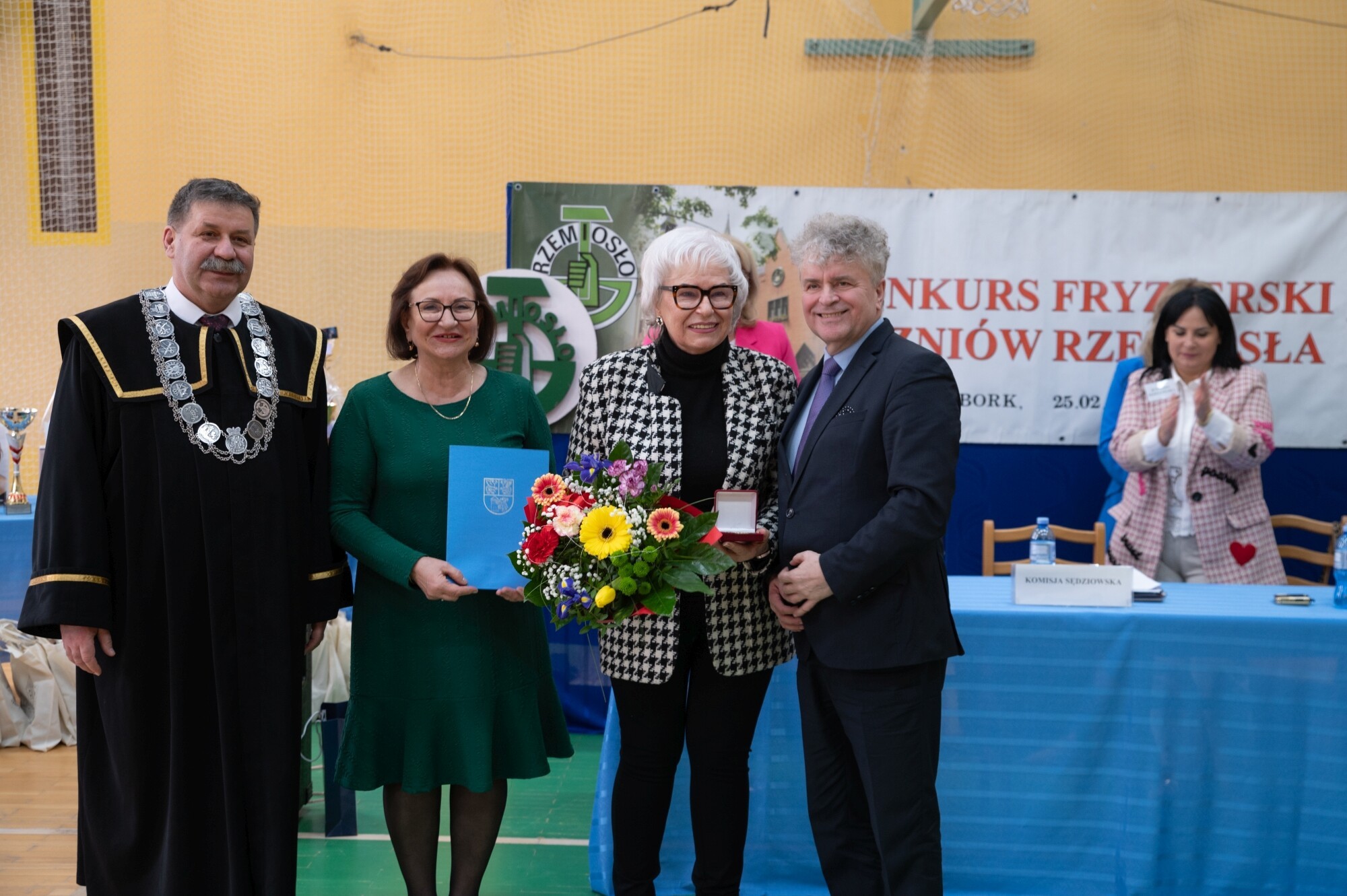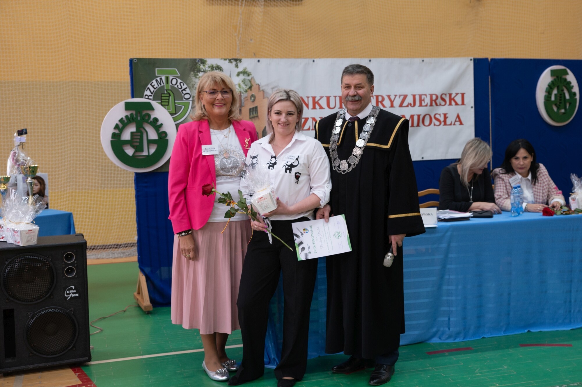 Słowa starosty wsparli uczestnicy konkursu wykonując gremialnie „Sto lat” na cześć wyróżnionej mistrzyni fryzjerskiej profesji.