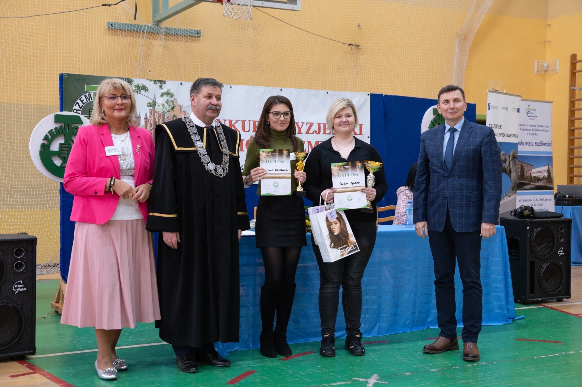 Z kilkugodzinnych zmagań z oporem materii i towarzyszącym rywalizacji stresem zakończył sukcesem Kacper Gruba, uczeń mistrza szkolącego Wioletty Drywy-Grzesik i jemu właśnie Puchar Starosty Lęborskiego wręczyła starosta Alicja Zajączkowska. Drugie miejsce i puchar ufundowany przez burmistrza Lęborka Witolda Namyślaka otrzymała Klaudia Błonk, uczennica mistrza szkolącego Marty Grzenkowicz. Na trzecim miejscu uplasowała się Wiktoria Markowska, uczennica mistrza szkolącego Marty Grzenkowicz, otrzymując puchar Prezesa Izby Rzemiosła i Przedsiębiorczości Pomorza Środkowego w Słupsku Jana Gańskiego. Pucharami premiowane były również kolejne trzy miejsca. Czwarte miejsce w rywalizacji i puchar Starszego Cechu Powiatowego Cechu Rzemiosła i Przedsiębiorczości w Lęborku Romana Chmieleckiego wywalczyła Wiktoria Reiter, szkolona przez mistrza Iwonę Grześko. Piąte miejsce i puchar Dyrektora Powiatowego Centrum Edukacyjnego zdobyła Paulina Syldatk, szkolona przez mistrza Dorotę Klawikowską. Puchar Dyrektora Branżowej Szkoły I Stopnia w Sierakowicach i szóste miejsce zdobyła Zuzanna Gołoś, szkolona przez mistrza Anitę Zagórowicz.