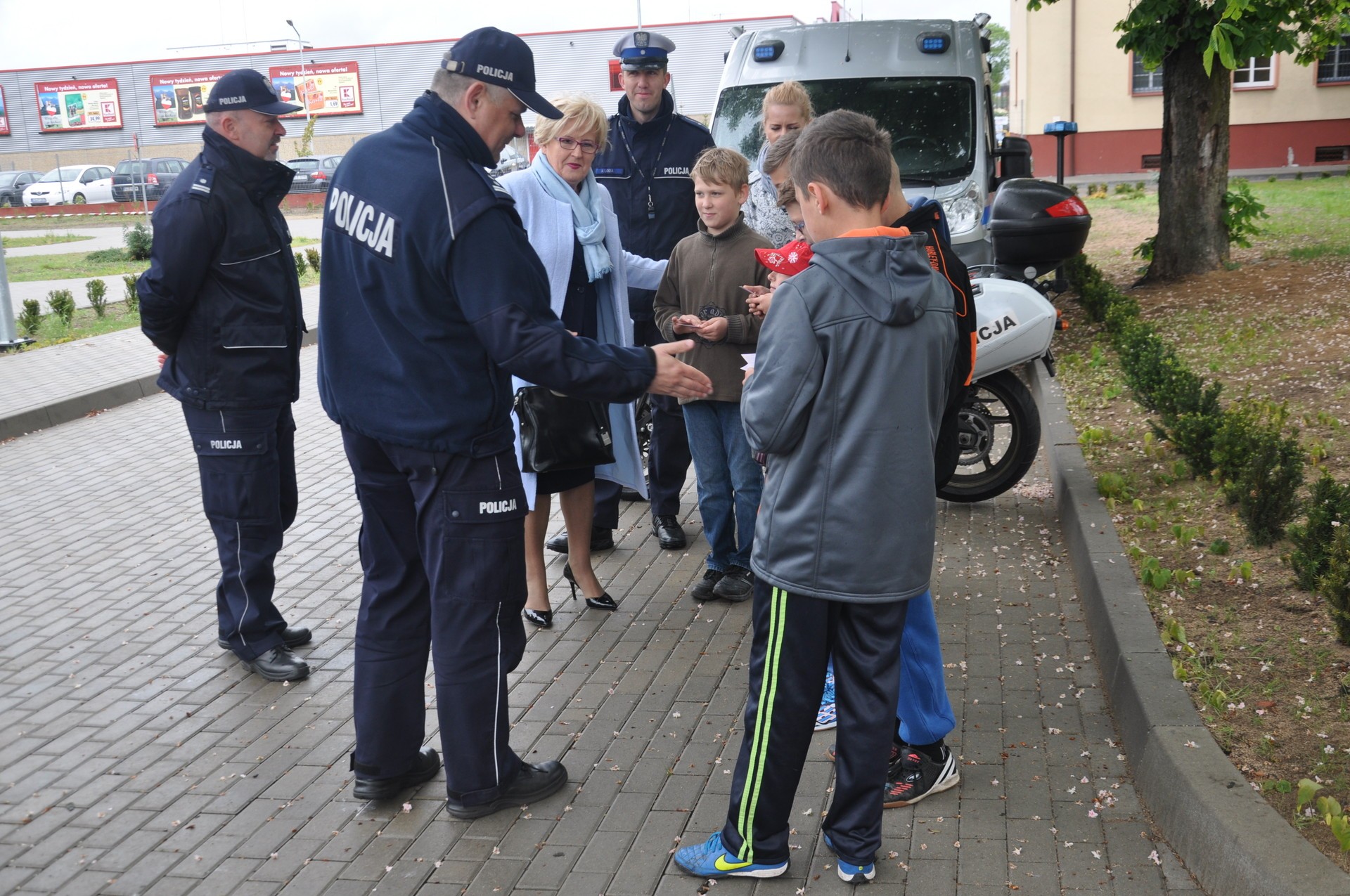 Do udziału w tym wydarzeniu mundurowi zaprosili przedstawicieli Starostwa Powiatowego w Lęborku, Starostę Teresę Ossowską – Szarą oraz członków komisji bezpieczeństwa. To właśnie dzięki wsparciu finansowemu Starostwa możliwe było wybudowanie profesjonalnie wyposażonego miasteczka rowerowego. Ponadto z myślą o bezpieczeństwie młodych rowerzystów, policjanci zaprosili tego dnia dp swojego miejsca pracy przedstawiciela Stowarzyszenia Rowerowego Lew Lębork i członków miejscowej ochotniczej służby ratowniczej, od których dzieci dowiedziały się jak udzielać pierwszej pomocy przedmedycznej i jakie trasy rowerowe wybrać do bezpiecznej jazdy. Mundurowi przypomnieli o zasadach bezpiecznego poruszania się po drodze i zadbali o to, by osoby przystępujące do egzaminu nie odczuwały stresu. Dlatego na terenie komendy zorganizowali stanowisko z grillem i watą cukrową.
