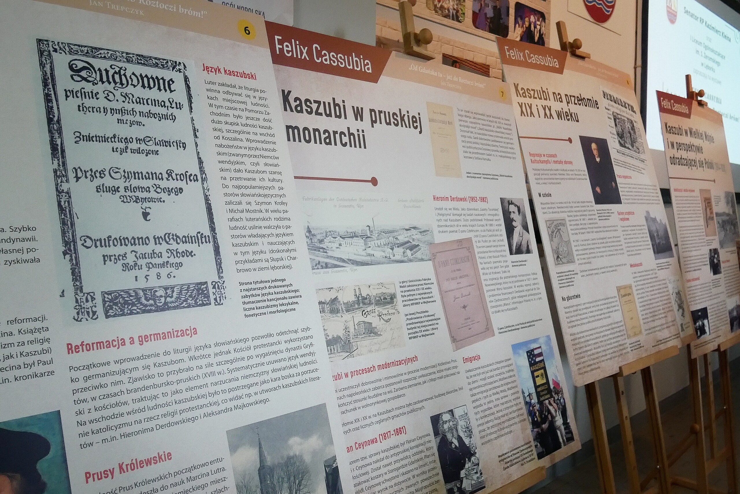 Ekspozycja ukazuje historię Kaszubów od czasów plemiennych w X w.n.e. do współczesności. Wyjaśnia kim są Kaszubi, co to są Kaszuby, ukazuje badania nad Kaszubami. Przedstawia m.in. historię Kaszubów w Prusach Królewskich, w pruskiej monarchii, a także walkę Kaszubów w Wielkiej Wojnie 1914–1920 i działalność w dwudziestoleciu międzywojennym. Wystawa opowiada także o współczesnym ruchu kaszubskim i aktywności kulturalnej Kaszubów oraz o historii Ukraińców na Kaszubach. W związku z wydarzeniami za wschodnia granicą i trwającą od lutego wojną w Ukrainie, związki Ukraińców z Kaszubami i polskością nabierają zupełnie nowego znaczenia. – Historię trzeba znać, bo to co było jest ważne. Z przeszłości trzeba wyciągać wnioski, czerpać z niej wzorce tego, co było dobre, a przeciwdziałać tym zachowaniom i splotom wydarzeń, które prowadziły do zła i powodowały tragiczne skutki. Dlatego tego typu wystawy są potrzebne, bo rozszerzają horyzonty poznawcze, budują świadomość i tożsamość – mówiła podczas otwarcia starosta Alicja Zajączkowska.