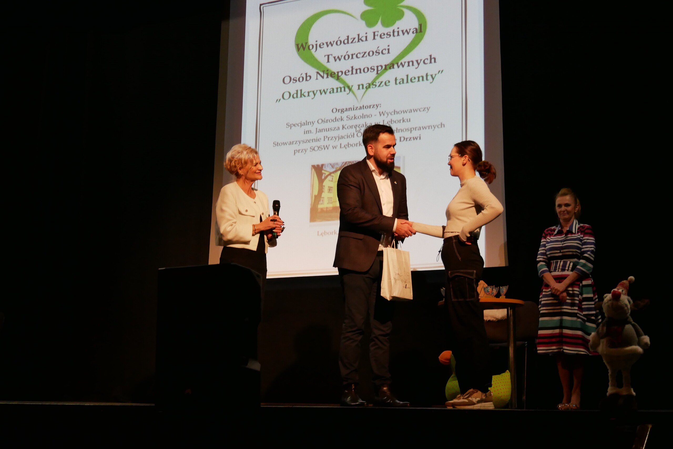 Zanim rozpoczęły się artystyczne prezentacje, starosta wręczył oficjalnie nagrodę Nikoli Kołodziej ze Specjalnego Ośrodka Szkolno-Wychowawczego w Lęborku – wyróżnionej w konkursie profilaktycznym „Nie daj szansy AIDS”, którego finał odbył się dzień wcześniej w Zespole Szkół Mechaniczno-Informatycznych.